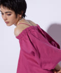 ■袖や裾に入ったギャザーがボリューム感のあるシルエットを生みだし、一枚でも着映えする華やかなデザイン。
