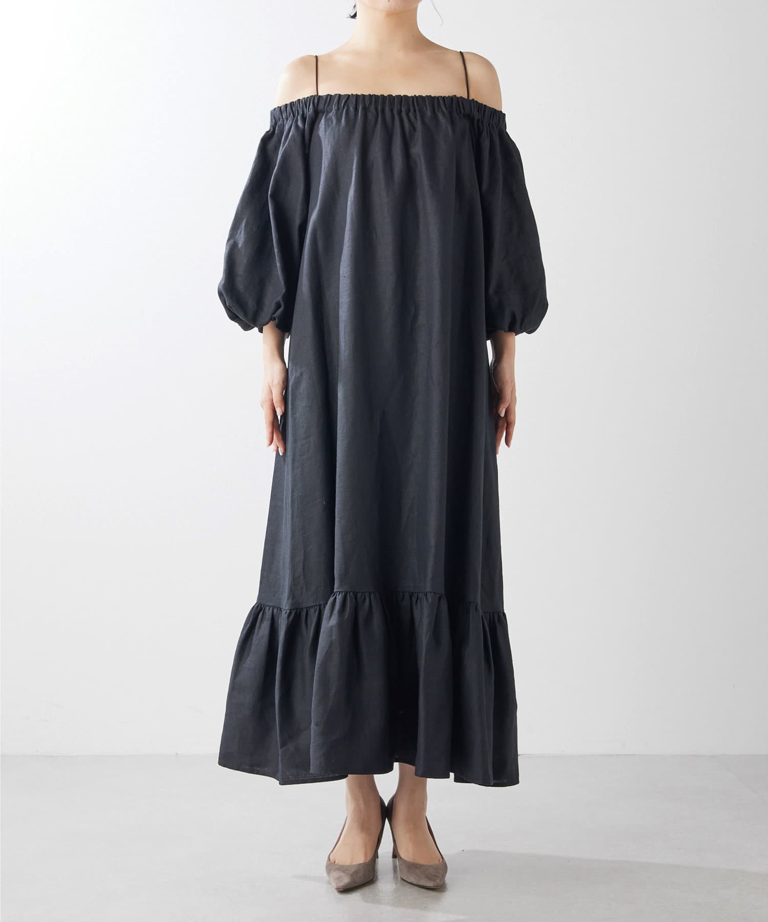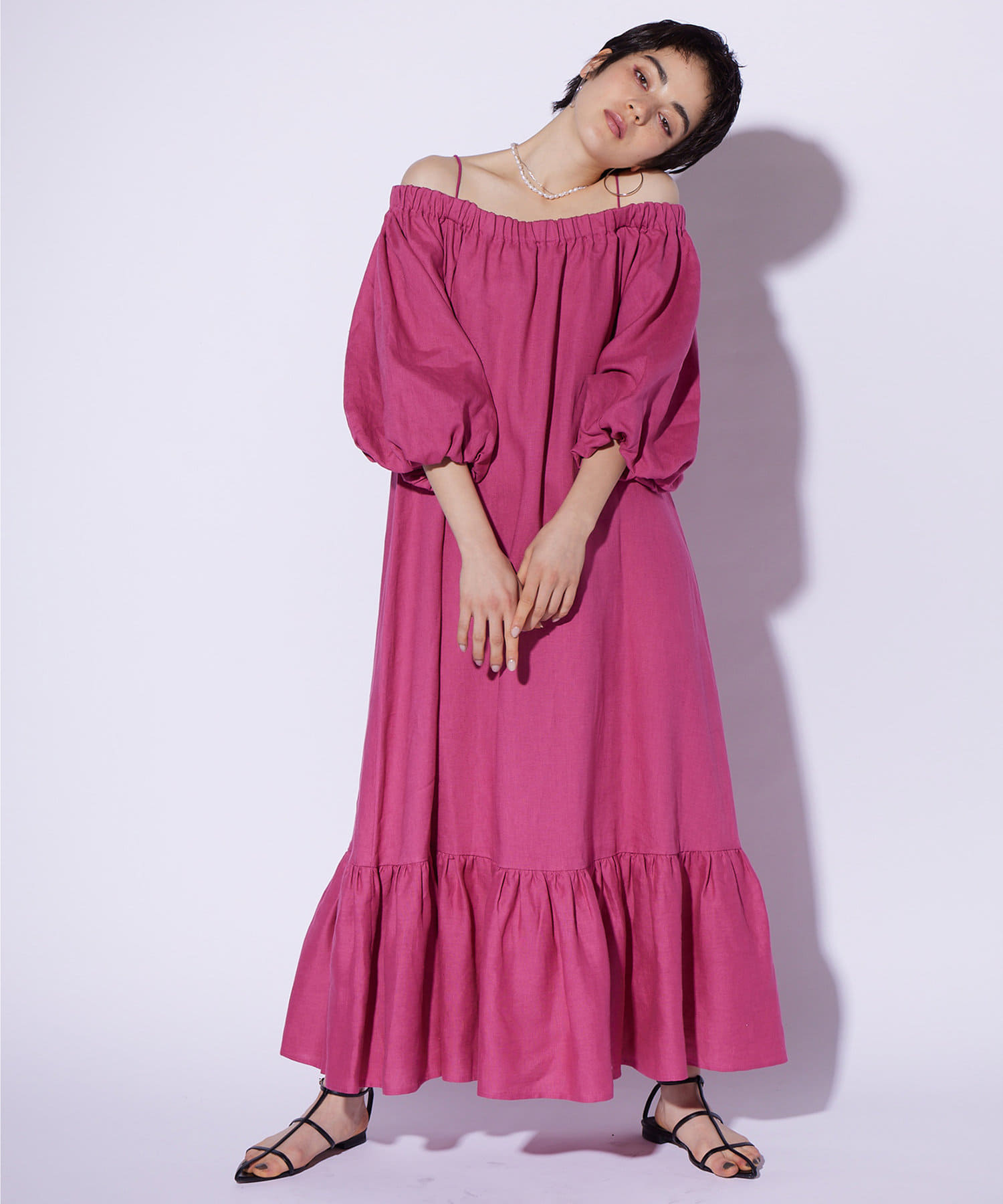 【THE PAUSE】リネン2WAYギャザーワンピース