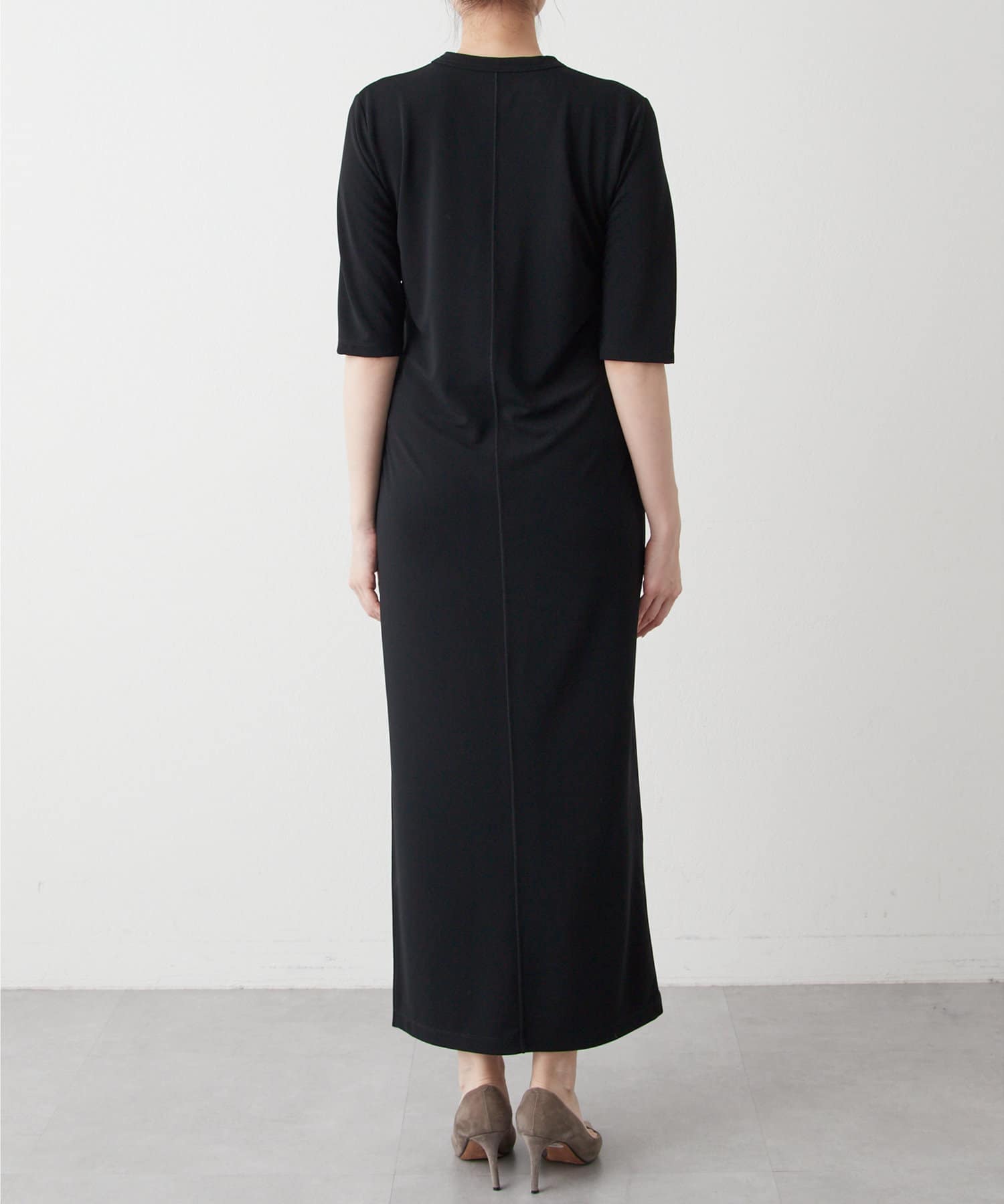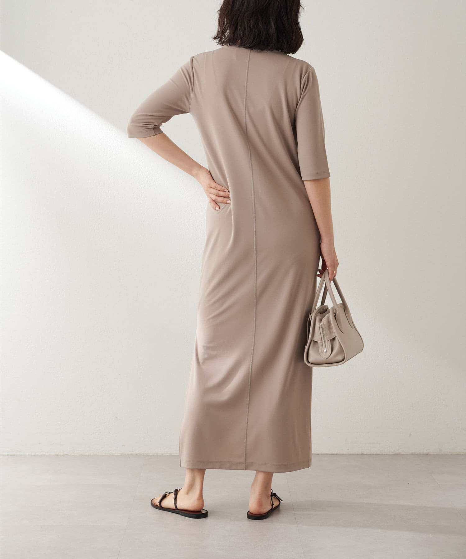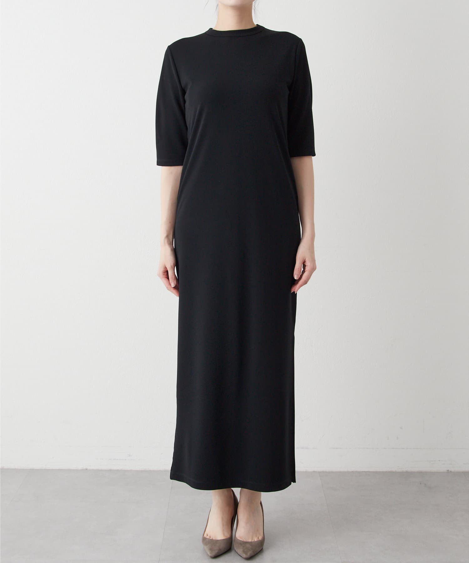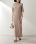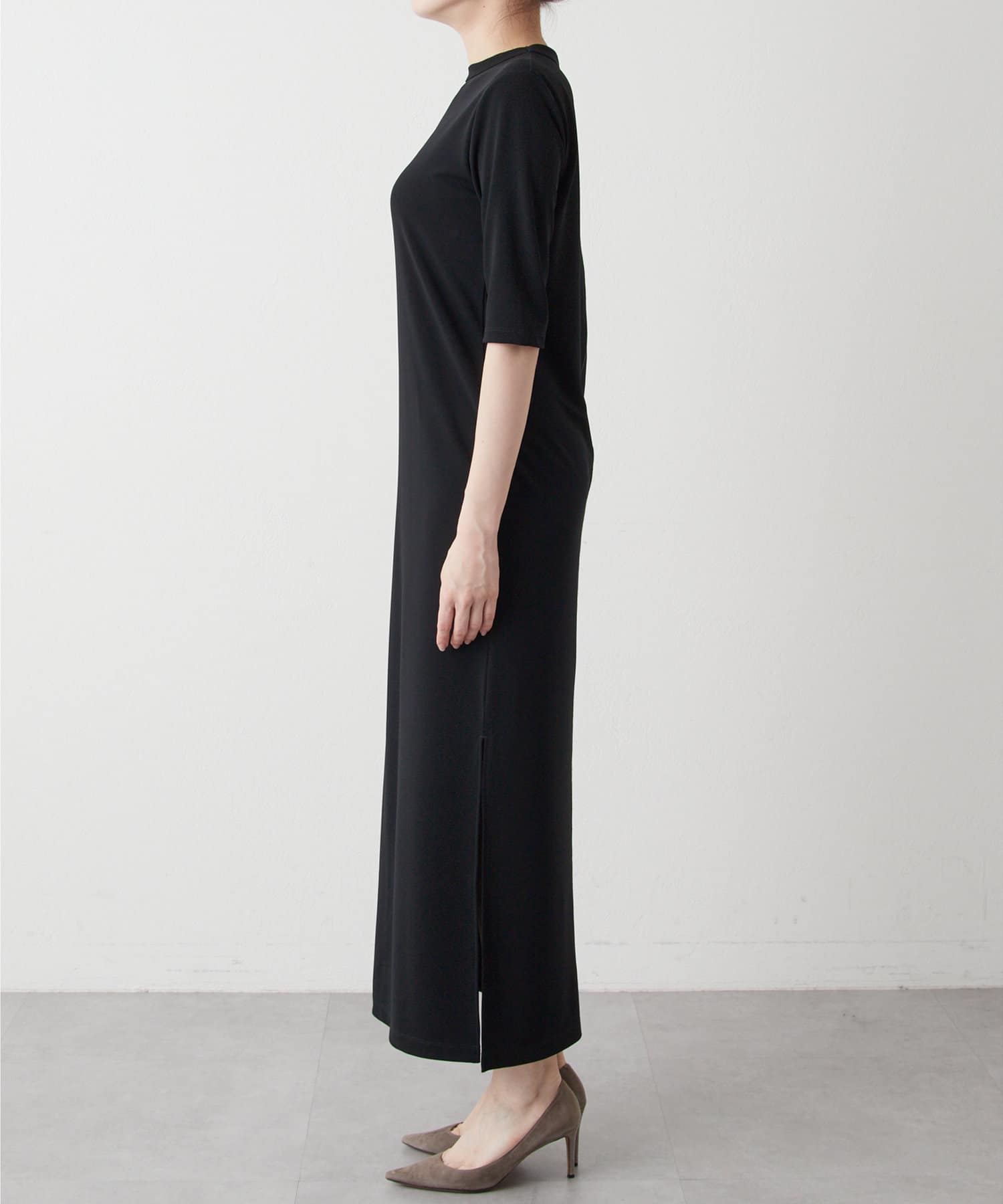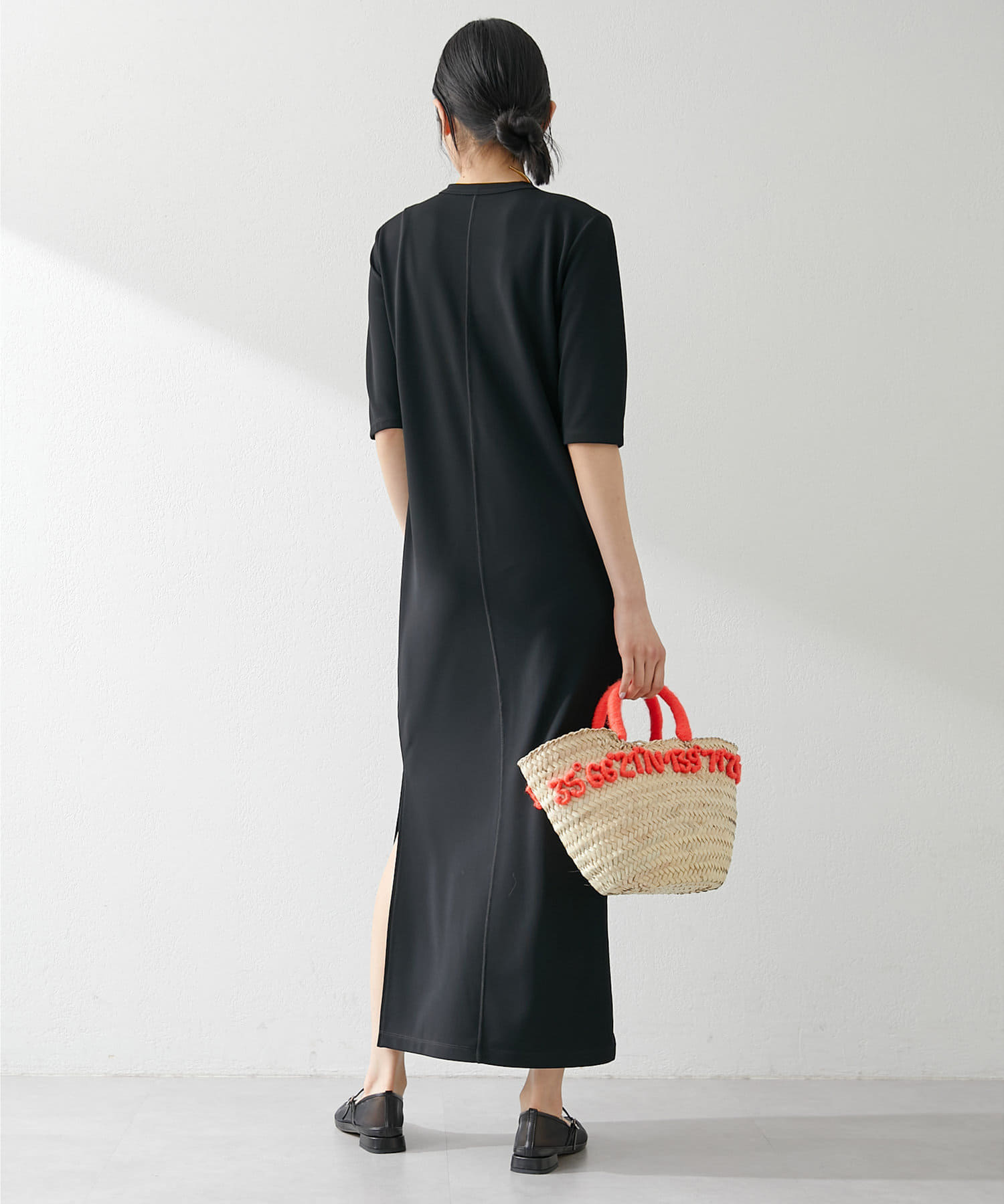 ■シンプルながらも素材やシルエットにこだわったハーフスリーブワンピース。