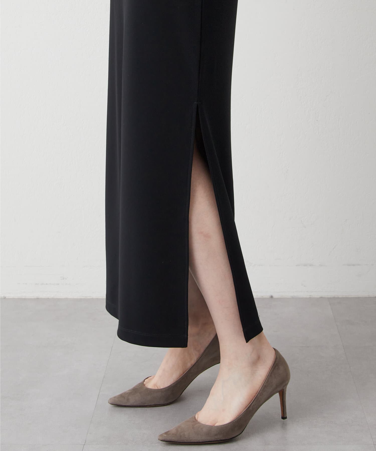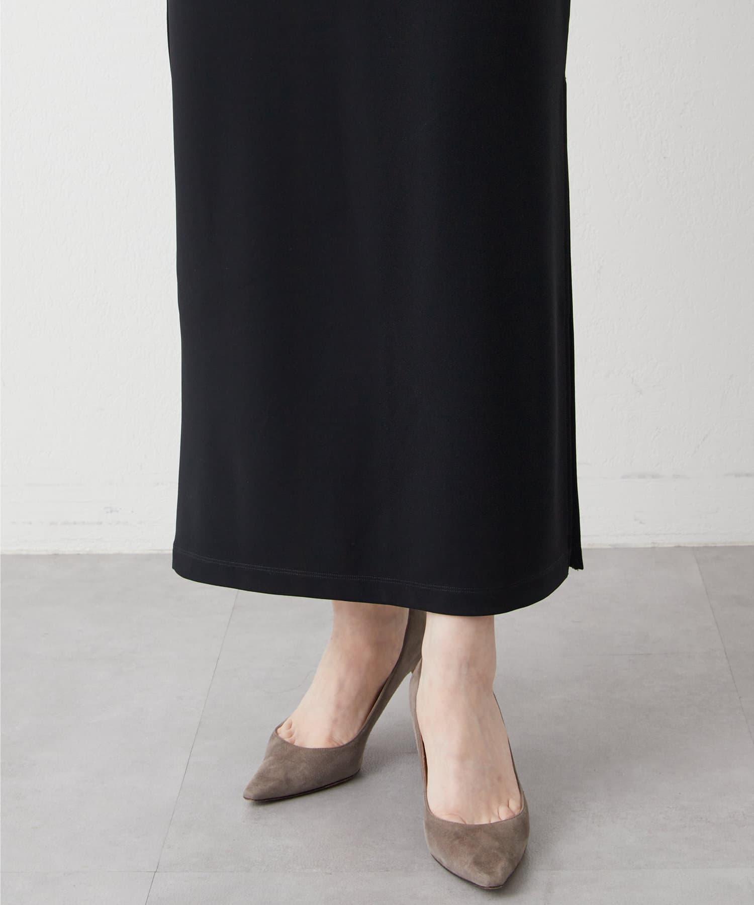スリットの入りが絶妙で、脚の見え方も綺麗です。シンプルなのですが、オシャレ見えするアイテム。スニーカーにも◎。小物も選ばす投入できます。シワになりにくく、ご旅行にもおすすめです。