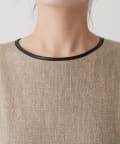 ■首元やアームホールを配色のパイピングにすることでシャープな印象に。