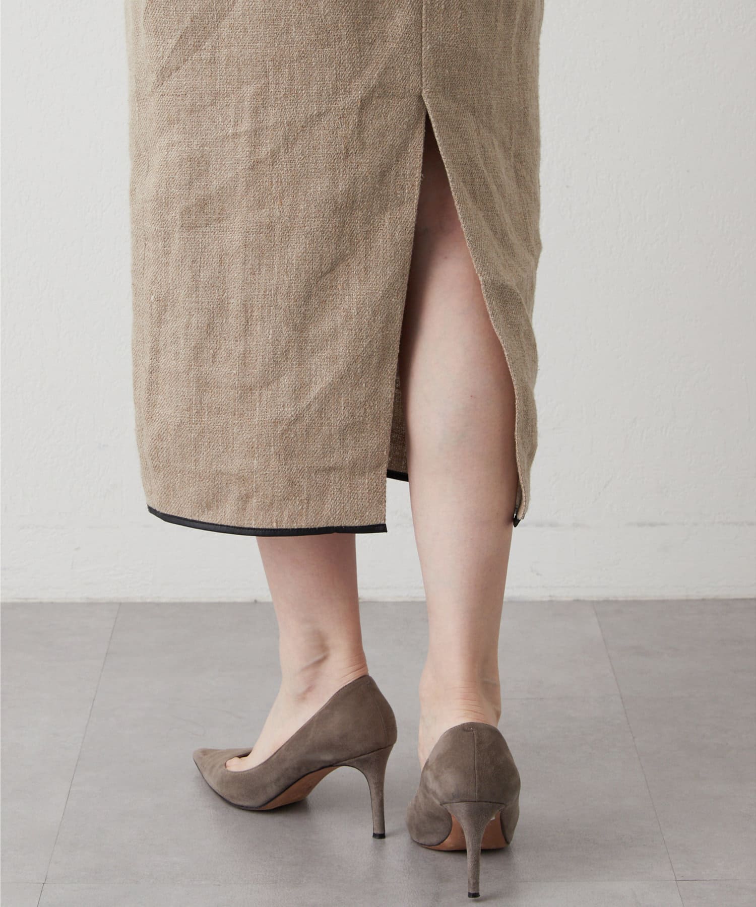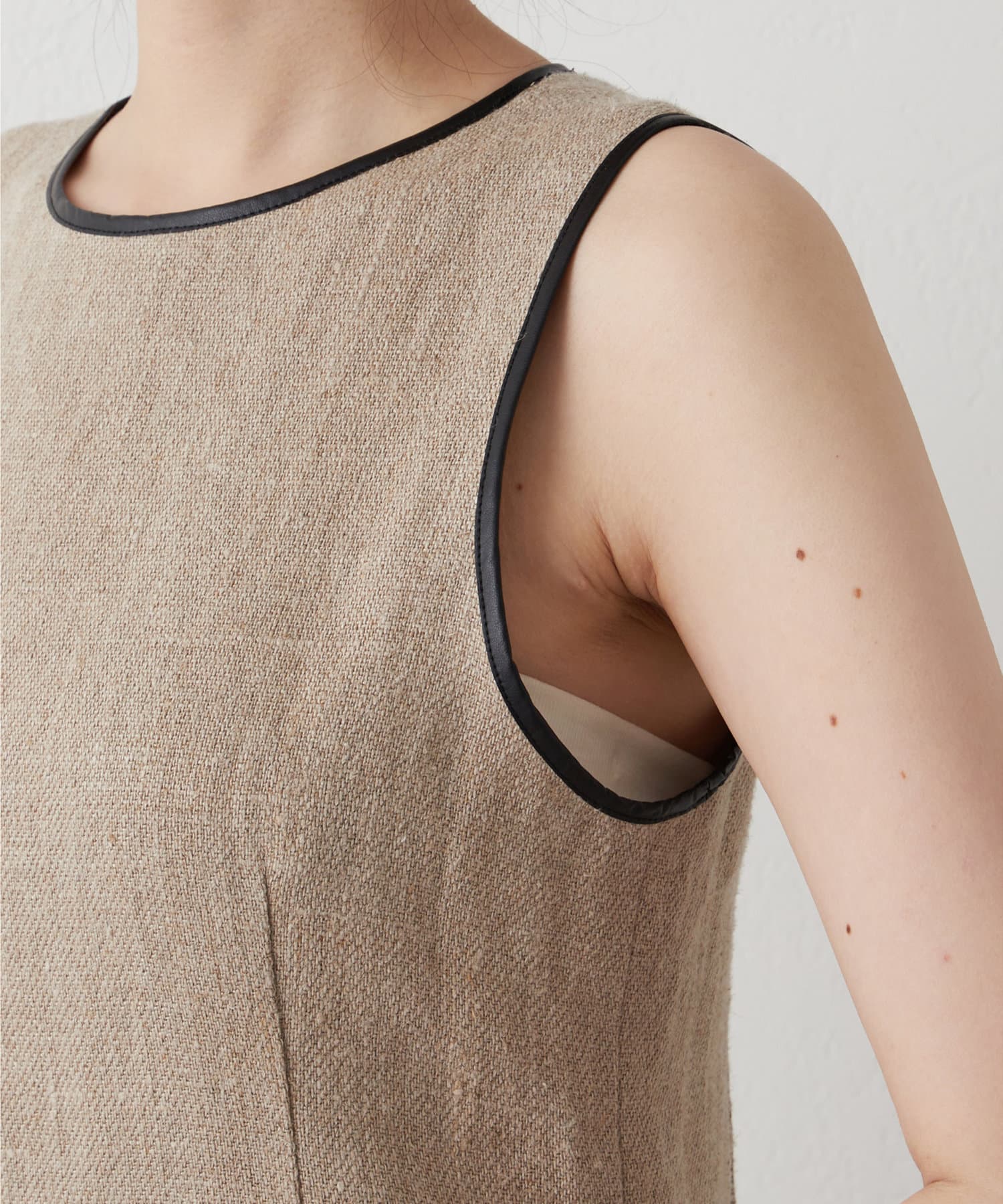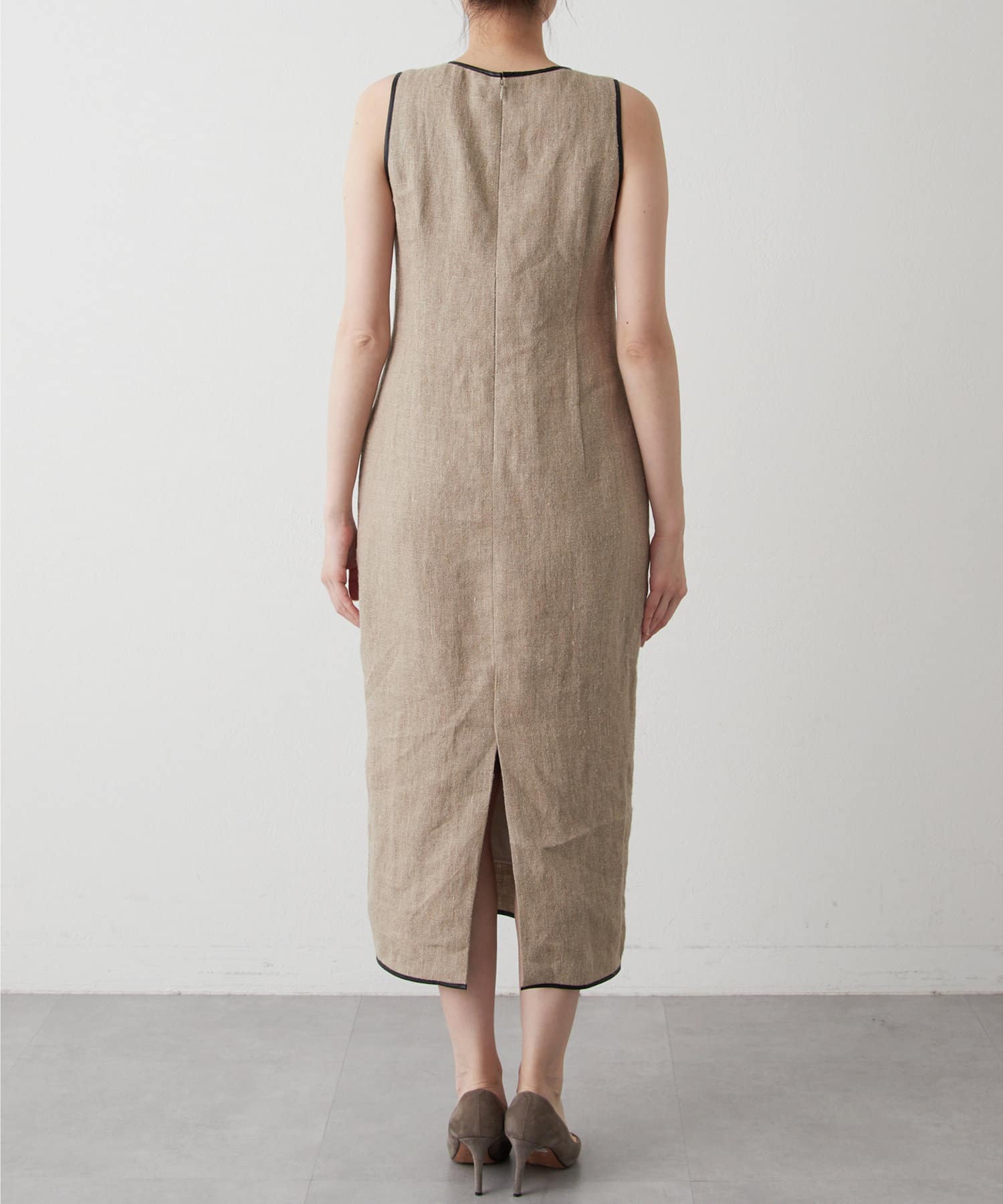 大人の女性におすすめしたいリネンワンピース。スッキリとしたシルエットで女性らしさとこなれ感も感じられるアイテムです。リネン素材が綺麗めになり過ぎず、華やかな印象にしてくれます。パイピングがアクセントに。