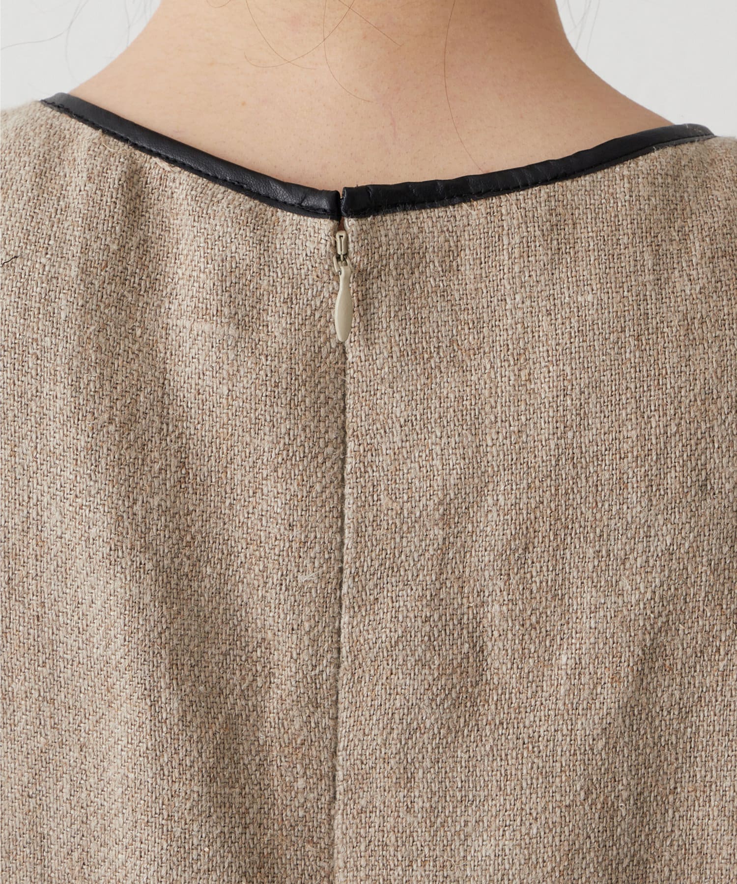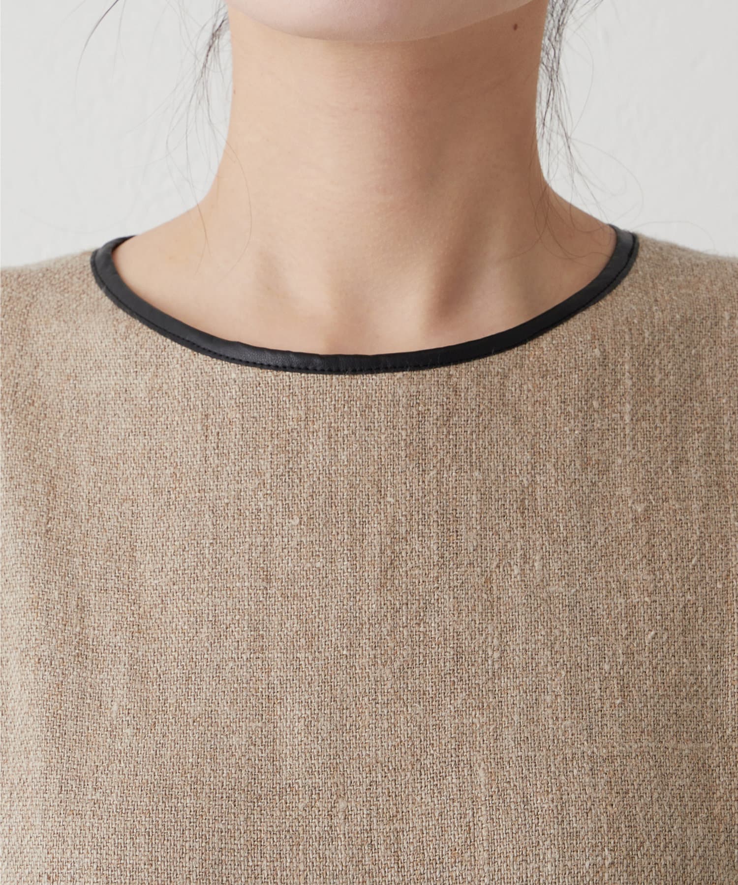 胸元腰回りにゆとりがあるサイズ感で楽でした。リネン素材ですがチクチク感はほとんど感じなく着用しやすかったです。ヒールで合わせてもコンサバにならないUネックデザインとレザー部分のポイントが魅力的です。