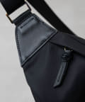 ■ナイロン、レザー、ショルダーテープをワントーンにまとめることでスポーティーすぎずない印象に。