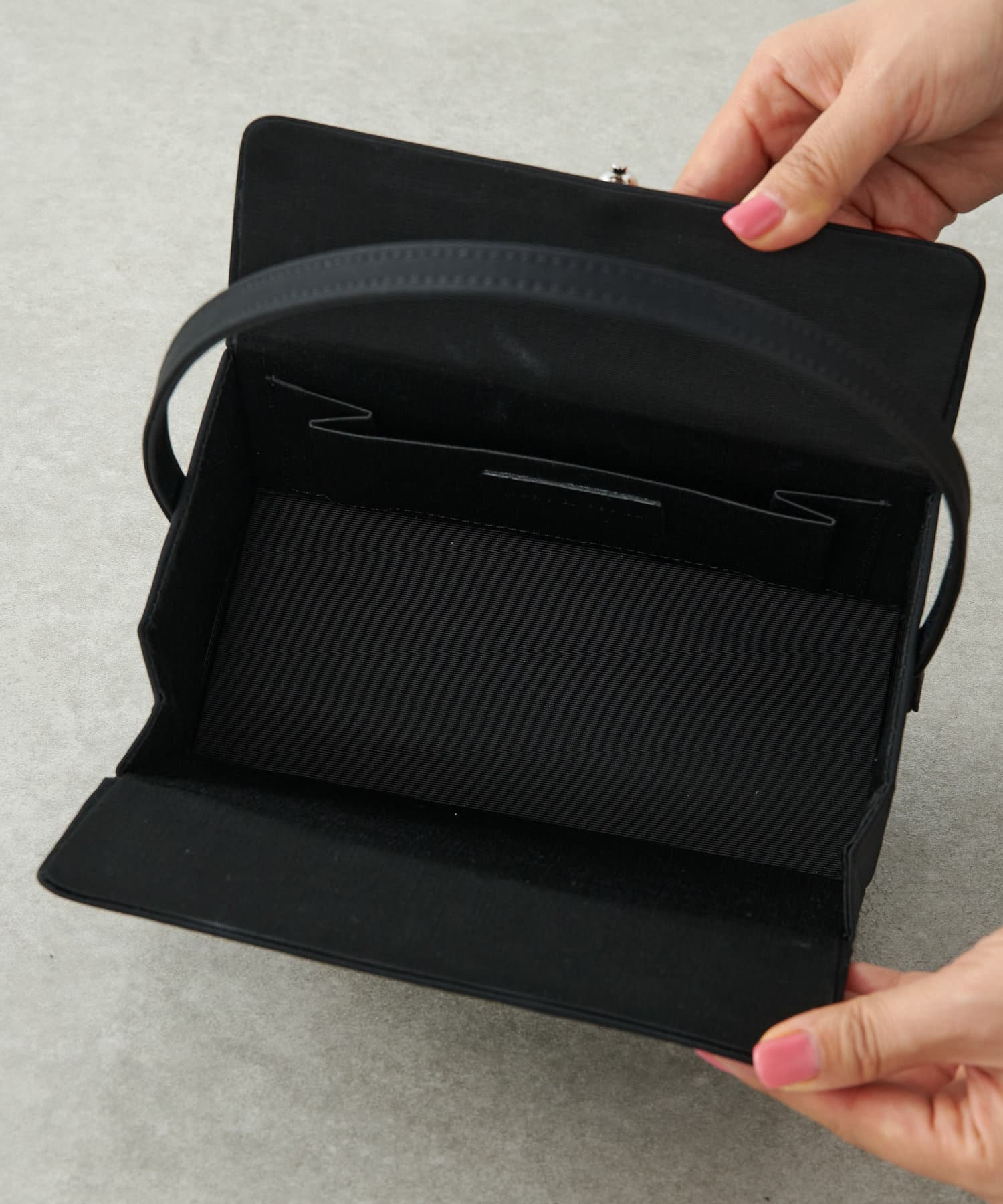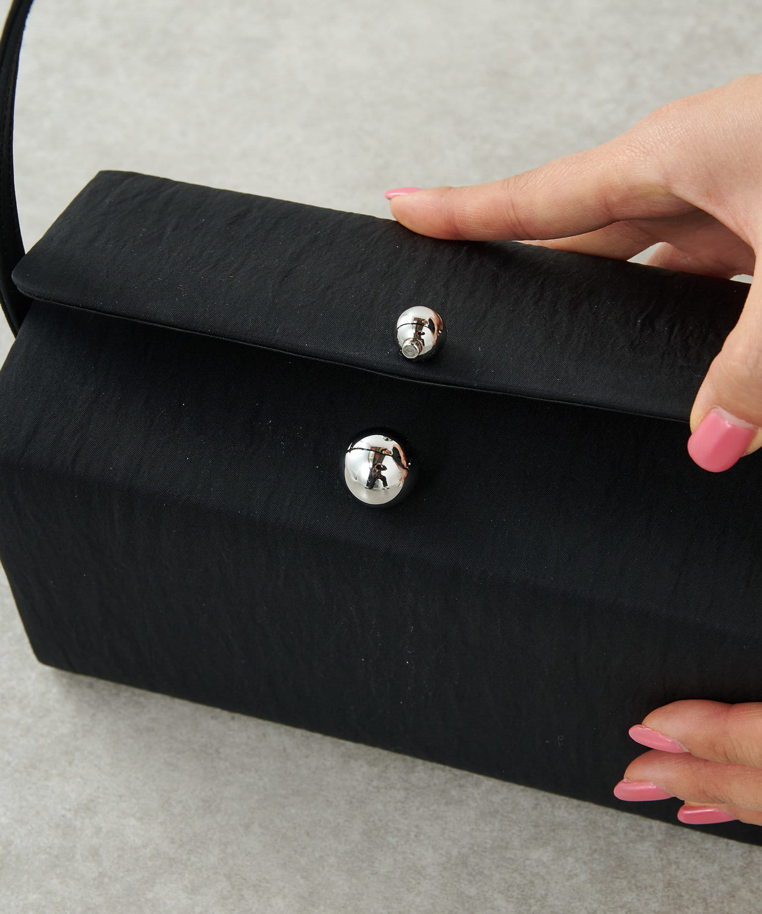 ■ミニマルなボックスシルエットが特徴的なミニハンドバッグ。