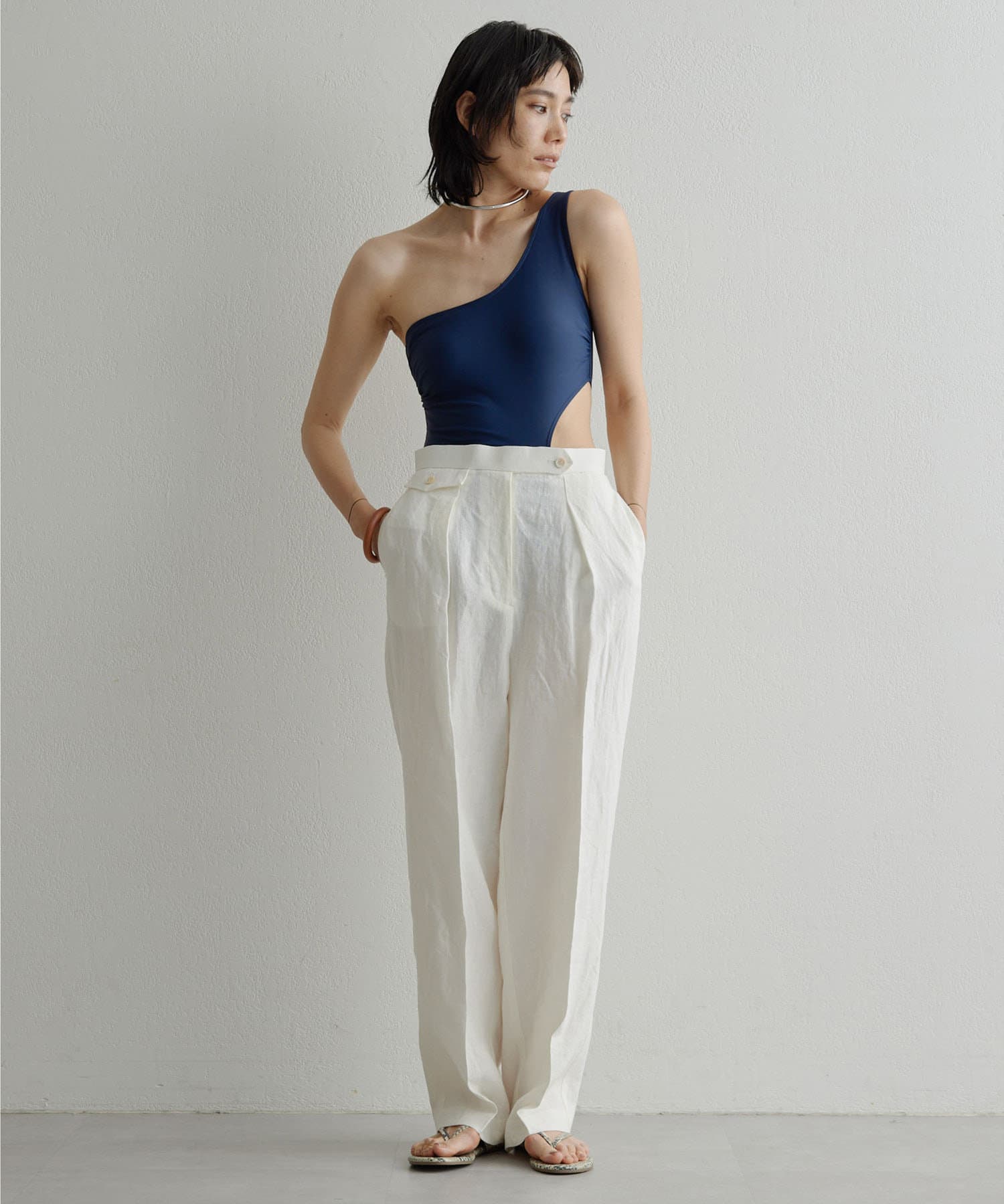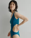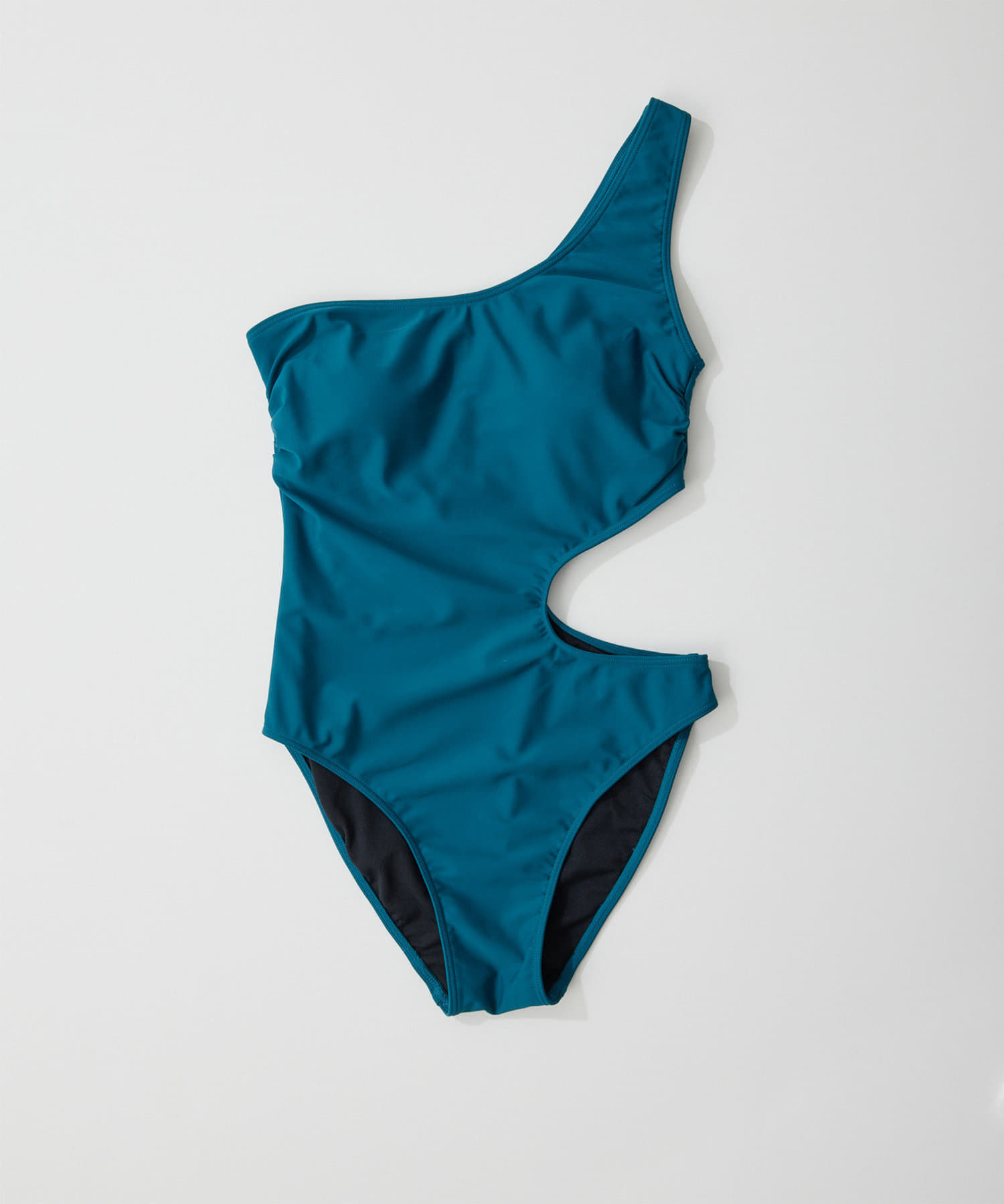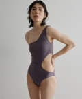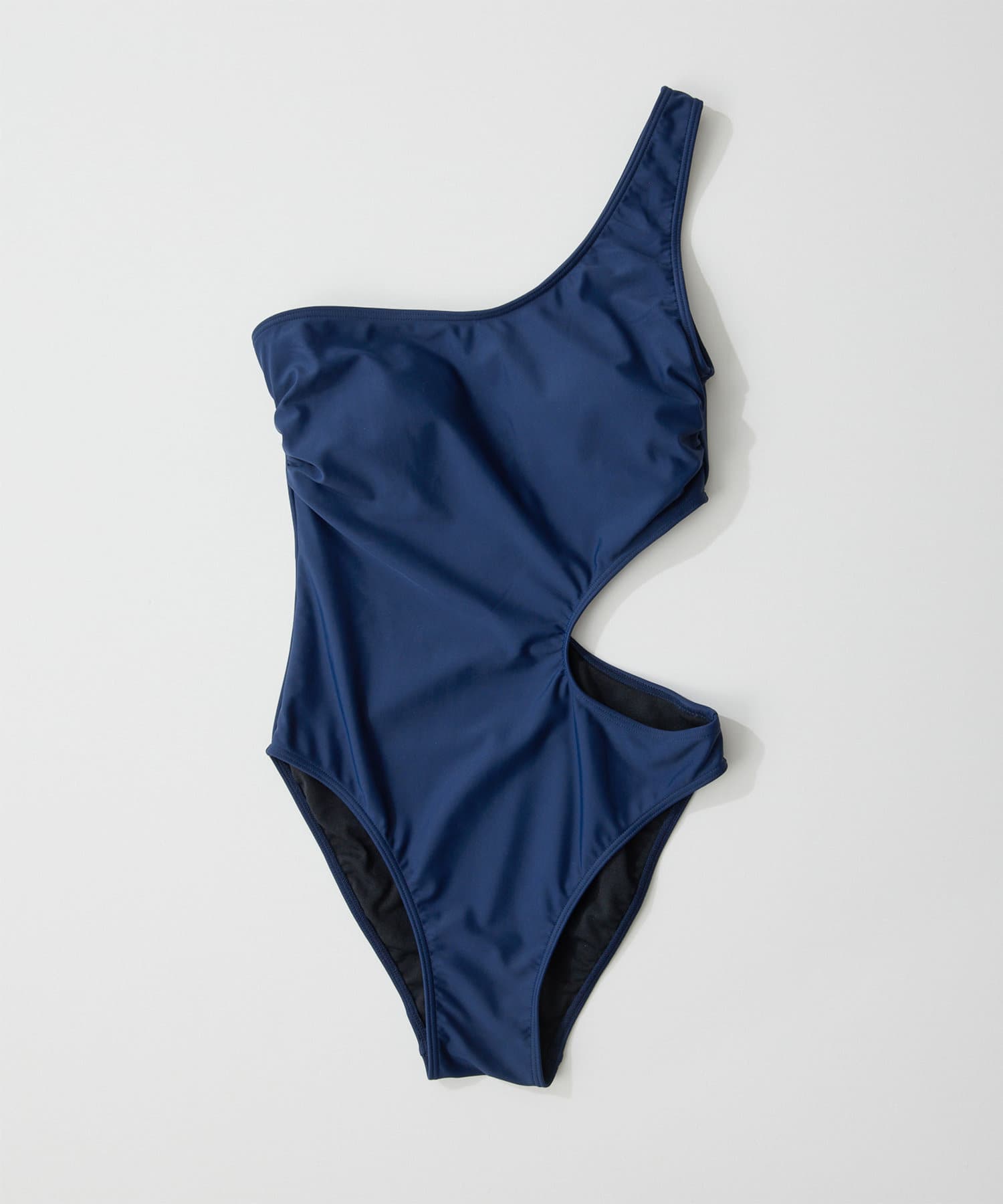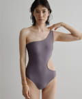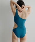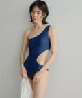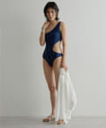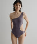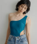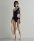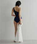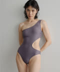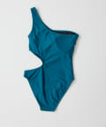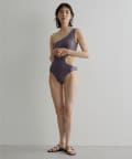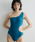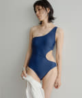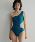 ウエストのくびれが綺麗に見えるスイムウェア。ワンショルダーの水着は初めての挑戦でしたが、自然と身体に馴染みました。両サイド脇肉も見えないカッティング◎拘り抜かれたスイムウェアです。