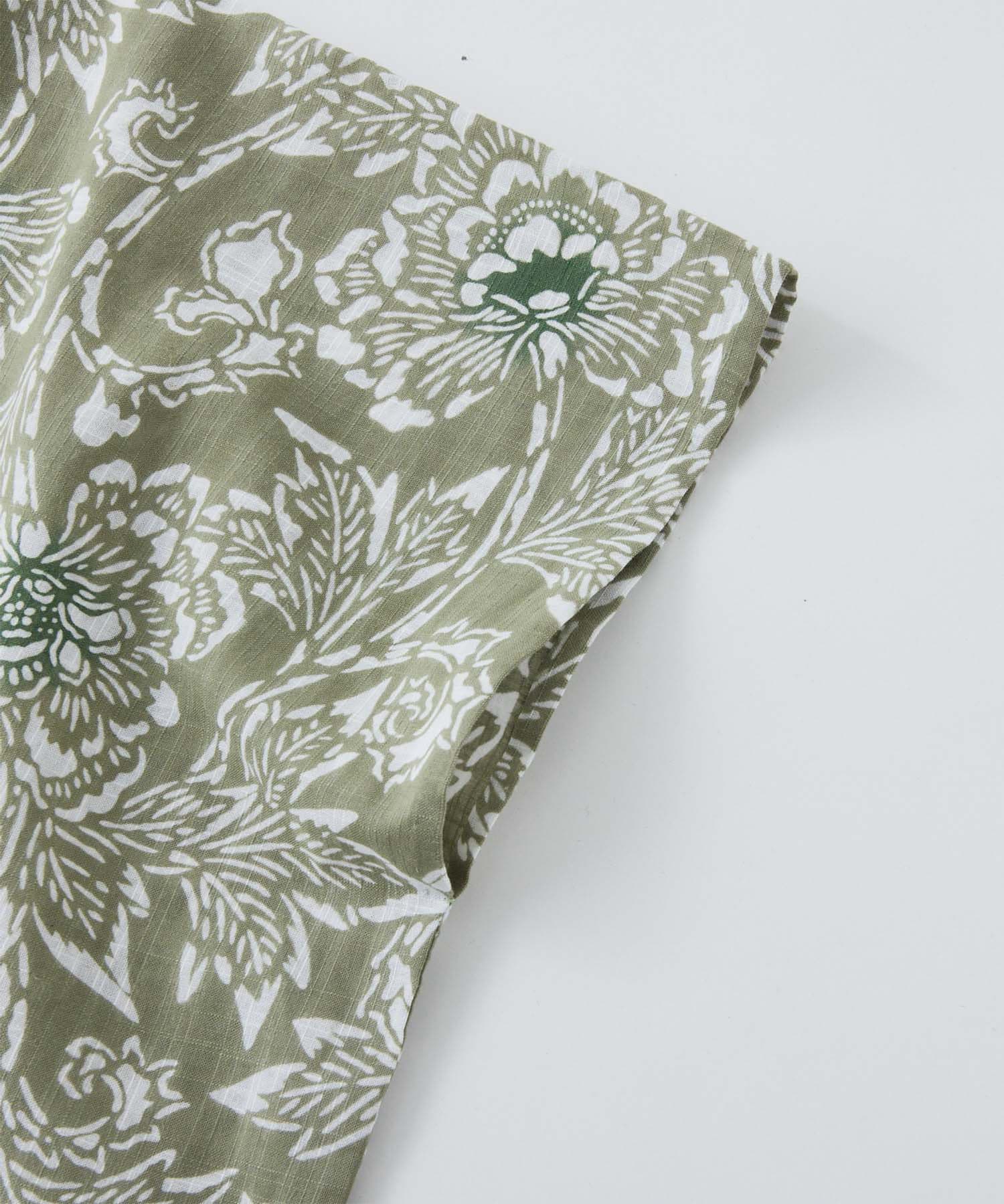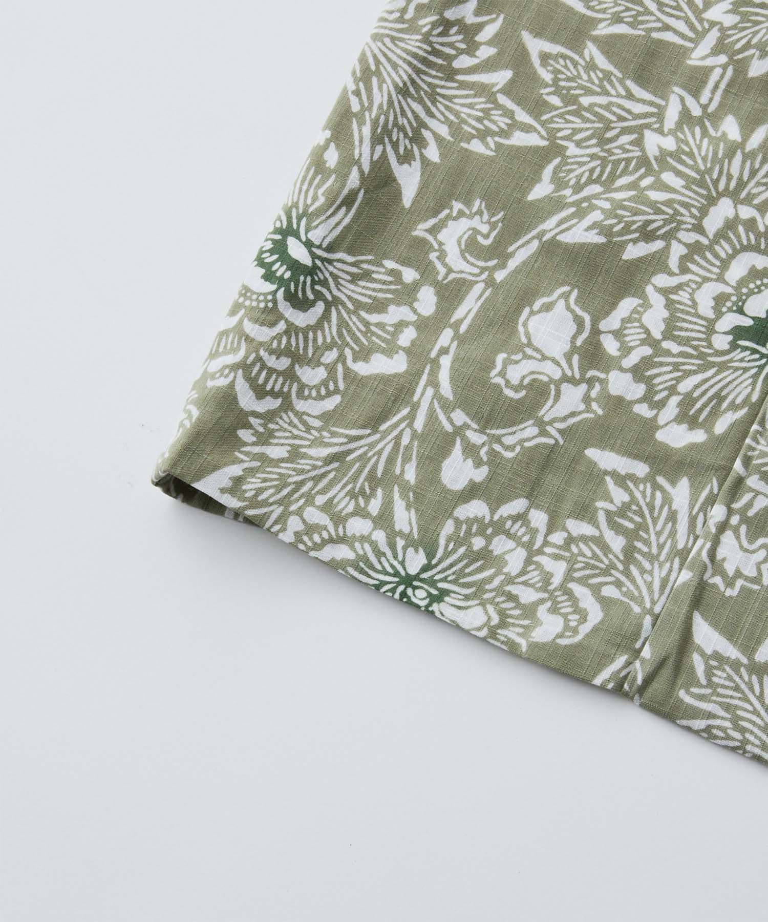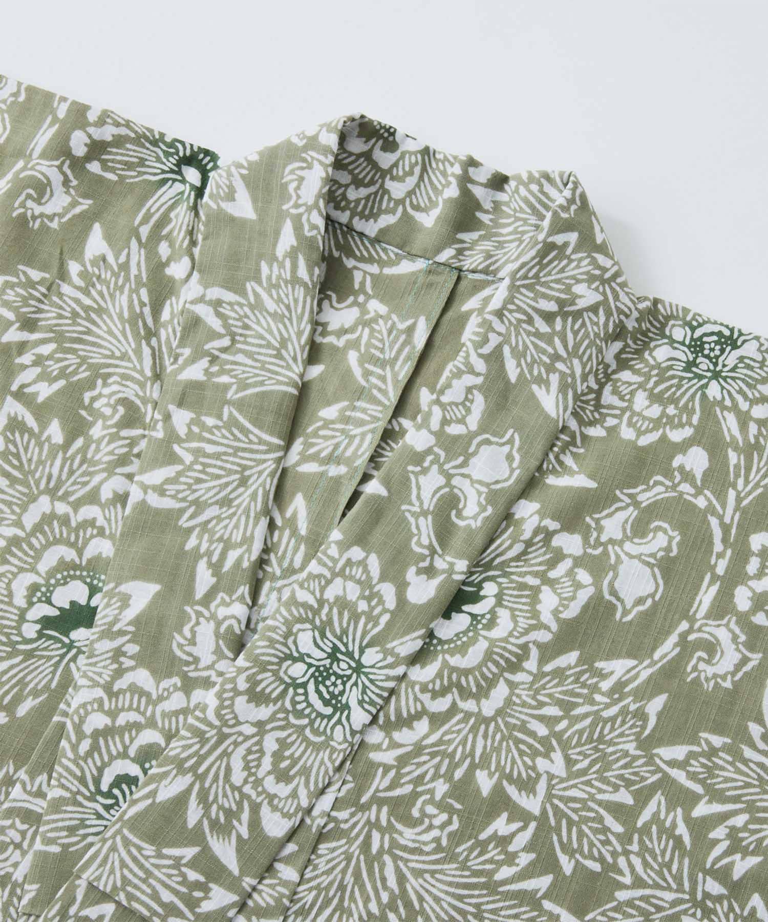 ■牡丹唐草柄(グリーン)は、長寿・繁栄の意味を持つ吉祥文様を採用し、ウィムガゼットらしいカーキ色で染めることでナチュラルな雰囲気に。