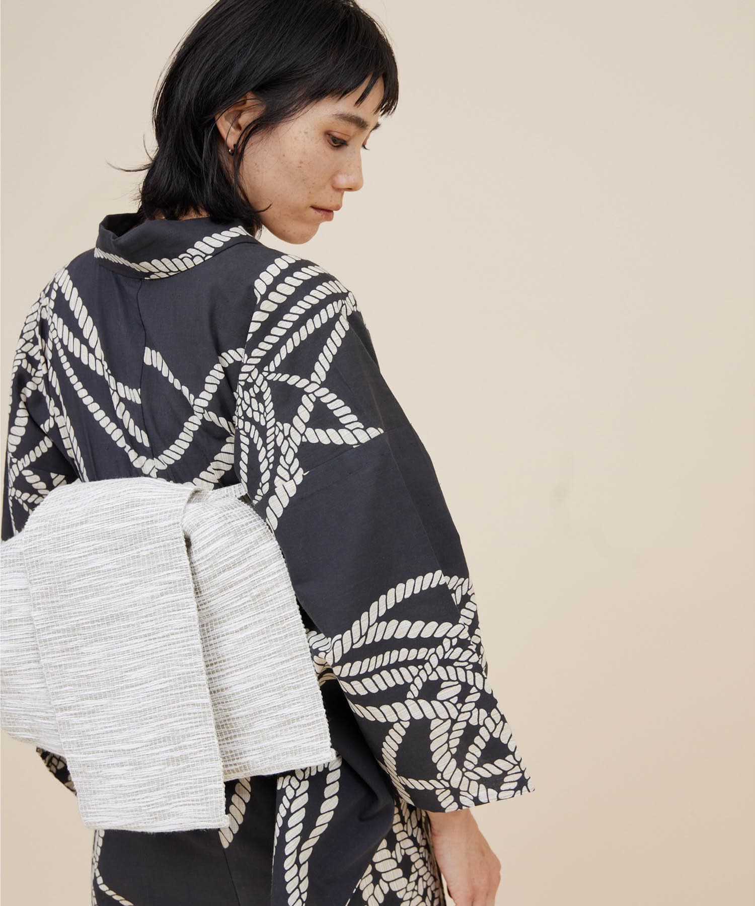 ■大綱柄(ブラック)は、普段は男性のデザインの時に使用する柄のデザインをあえてウィムガゼットで使用し、他にはない格好良い浴衣に。
