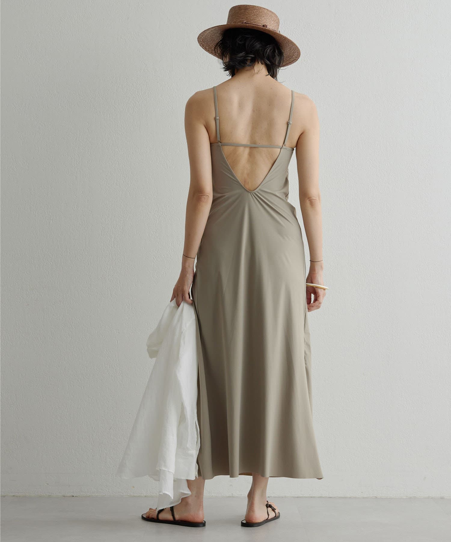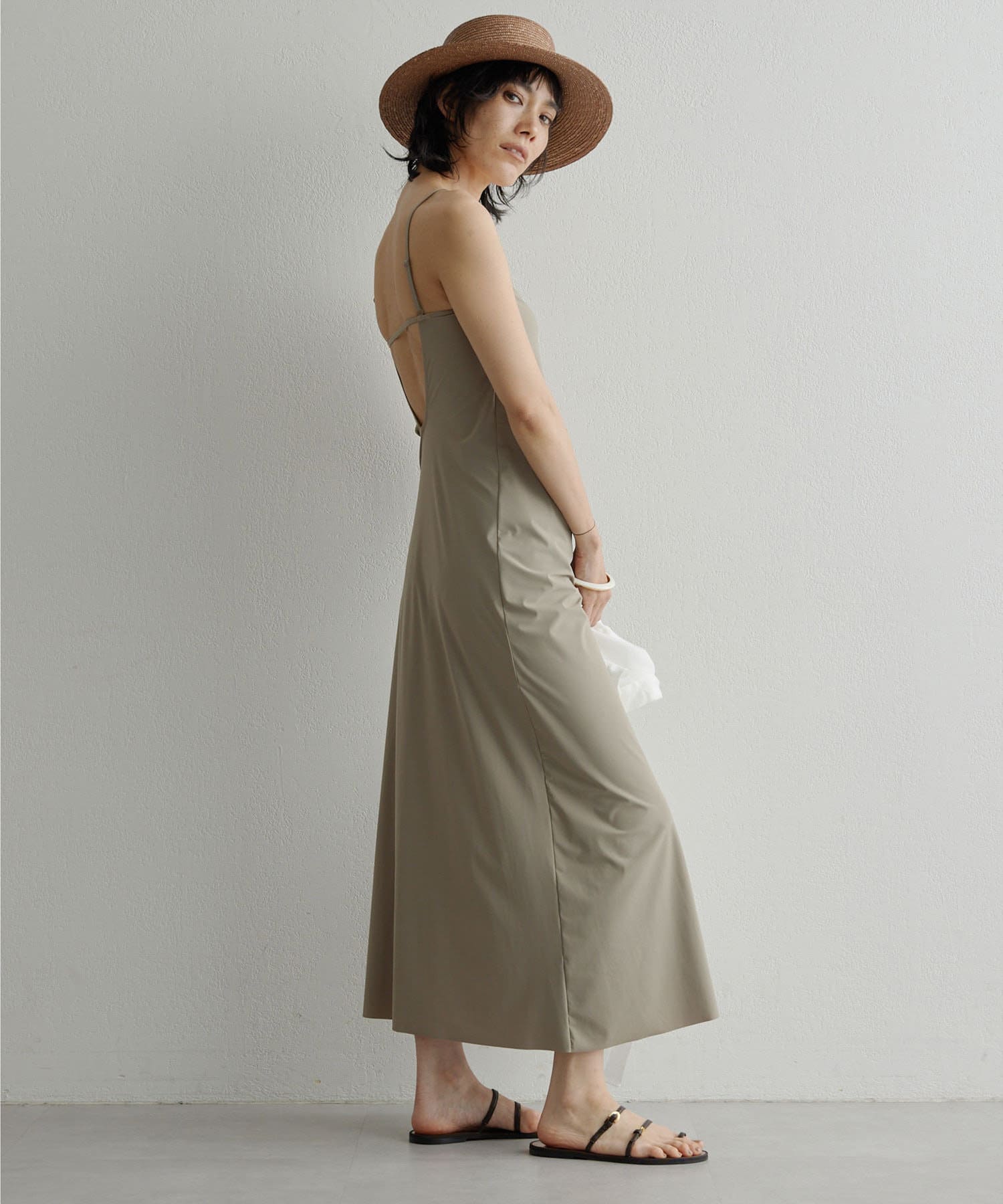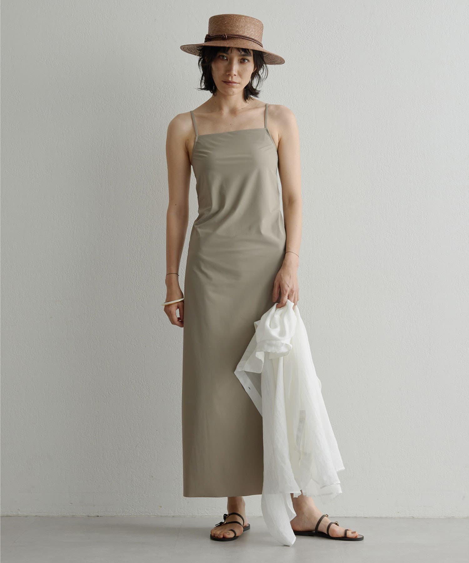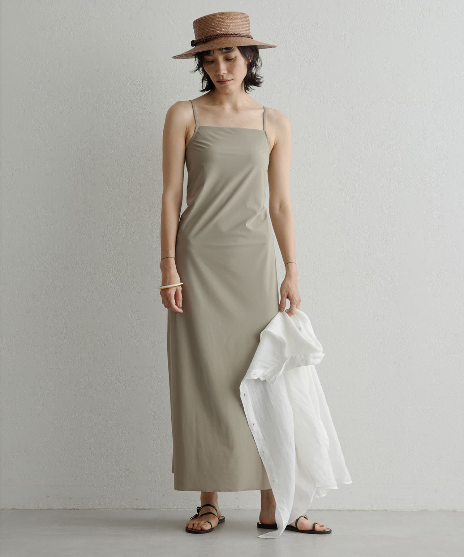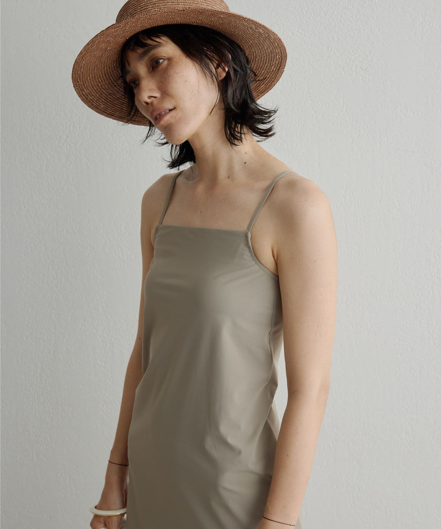 ■リゾートやレジャーシーンに活躍する、水陸両用素材のキャミソールワンピ。