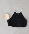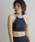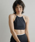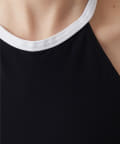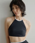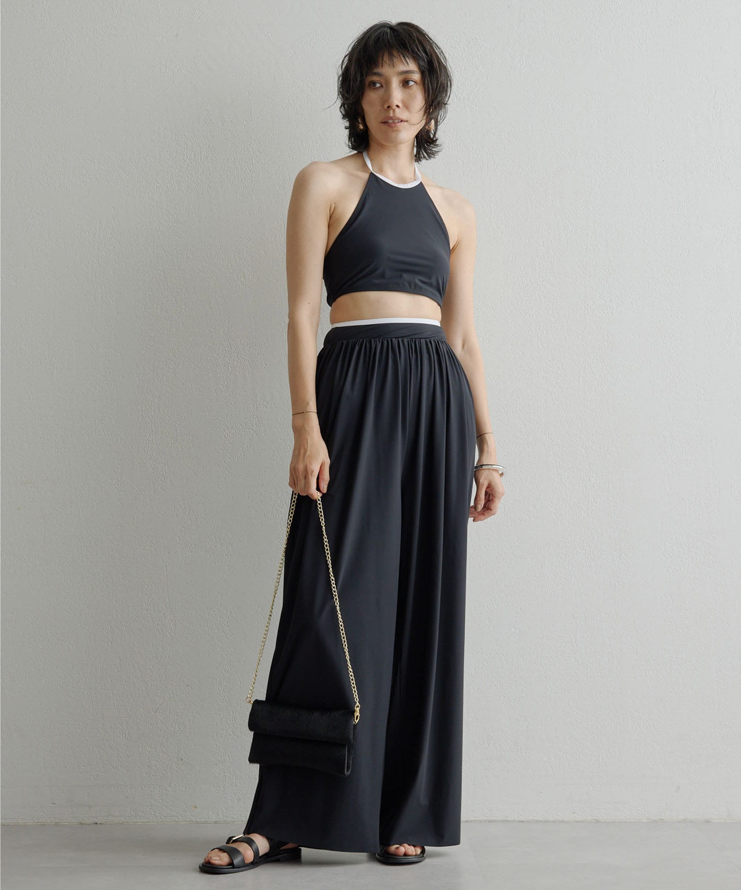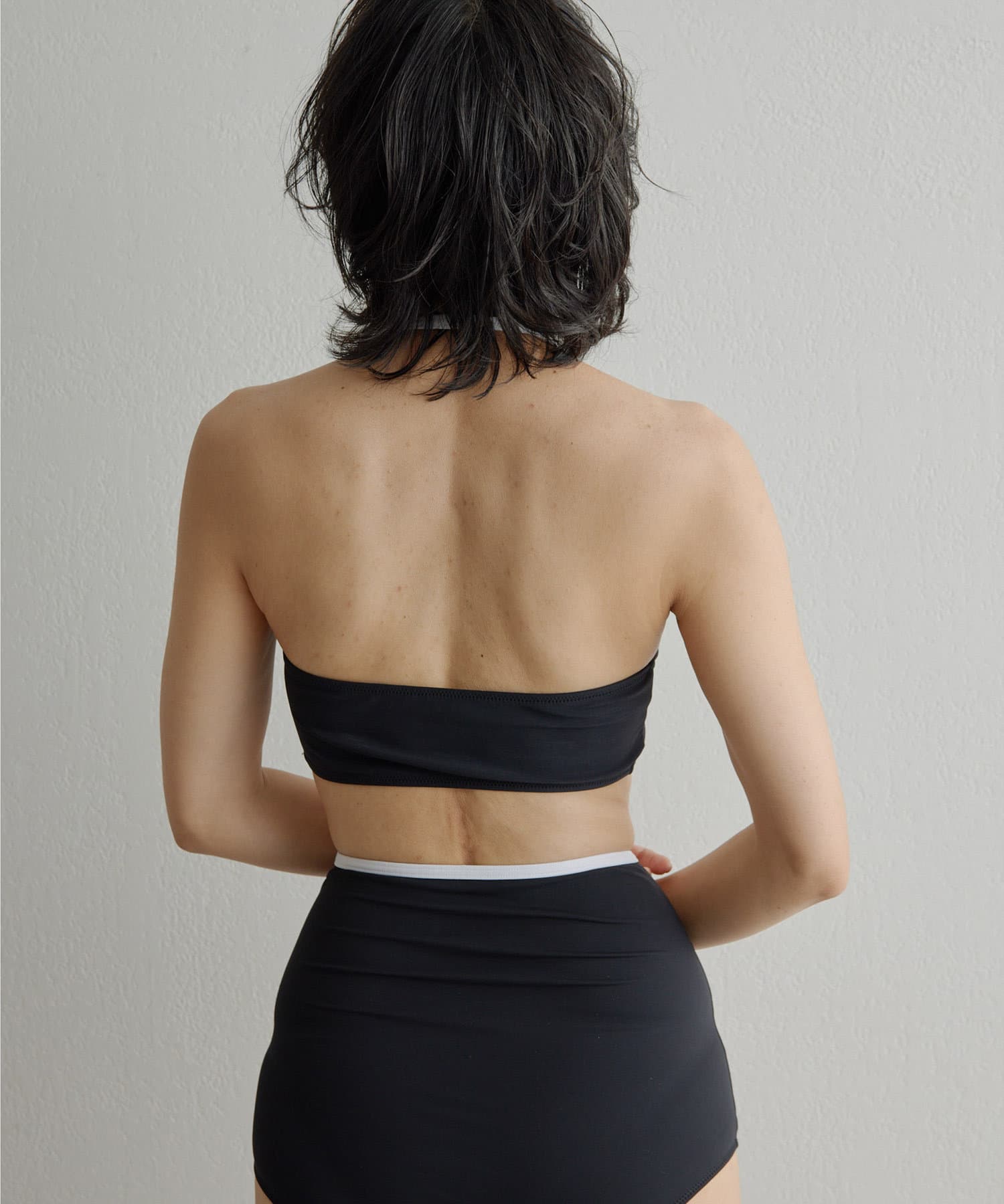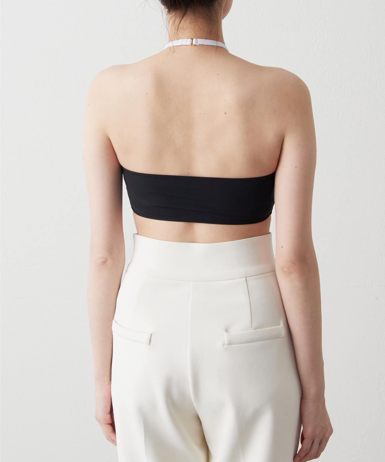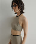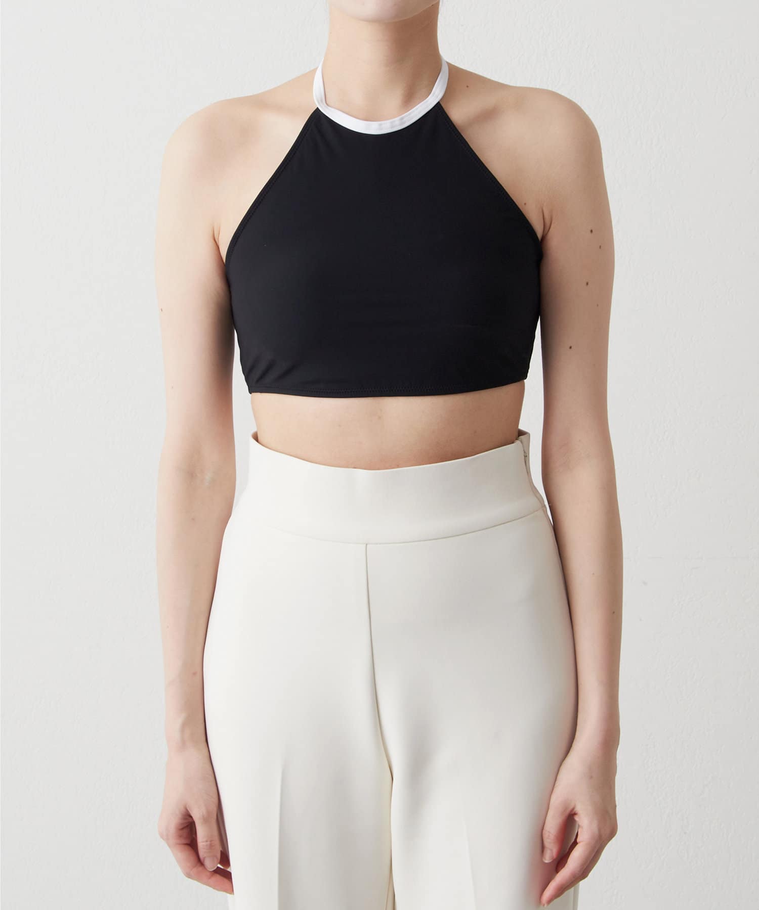 ■ホルター部分はホックディティールで仕上げ、すっきりとミニマルな印象に。