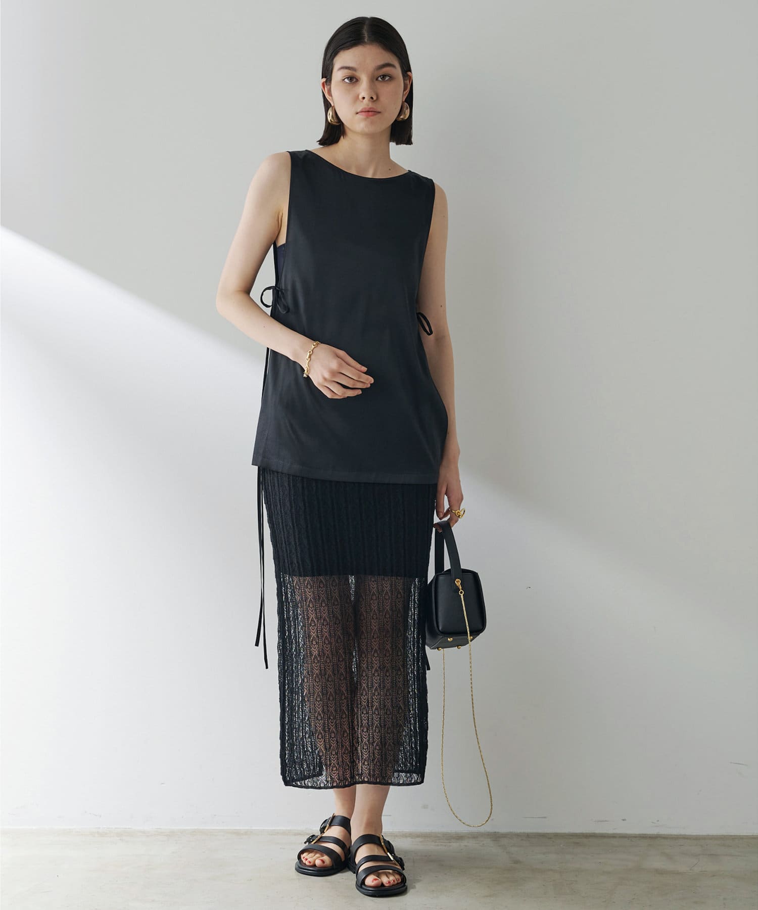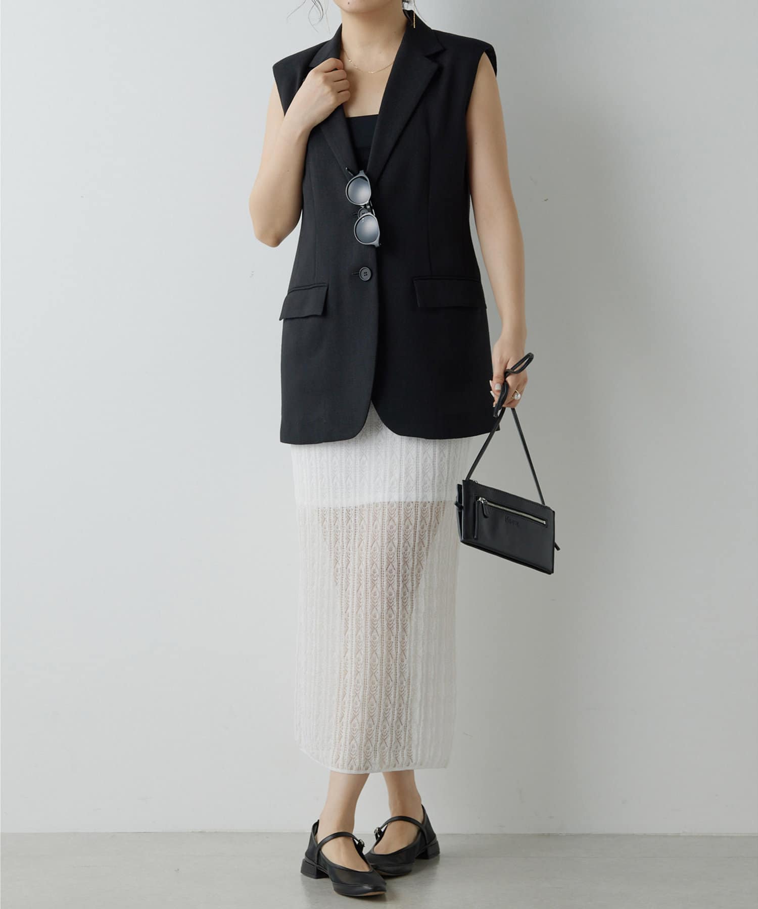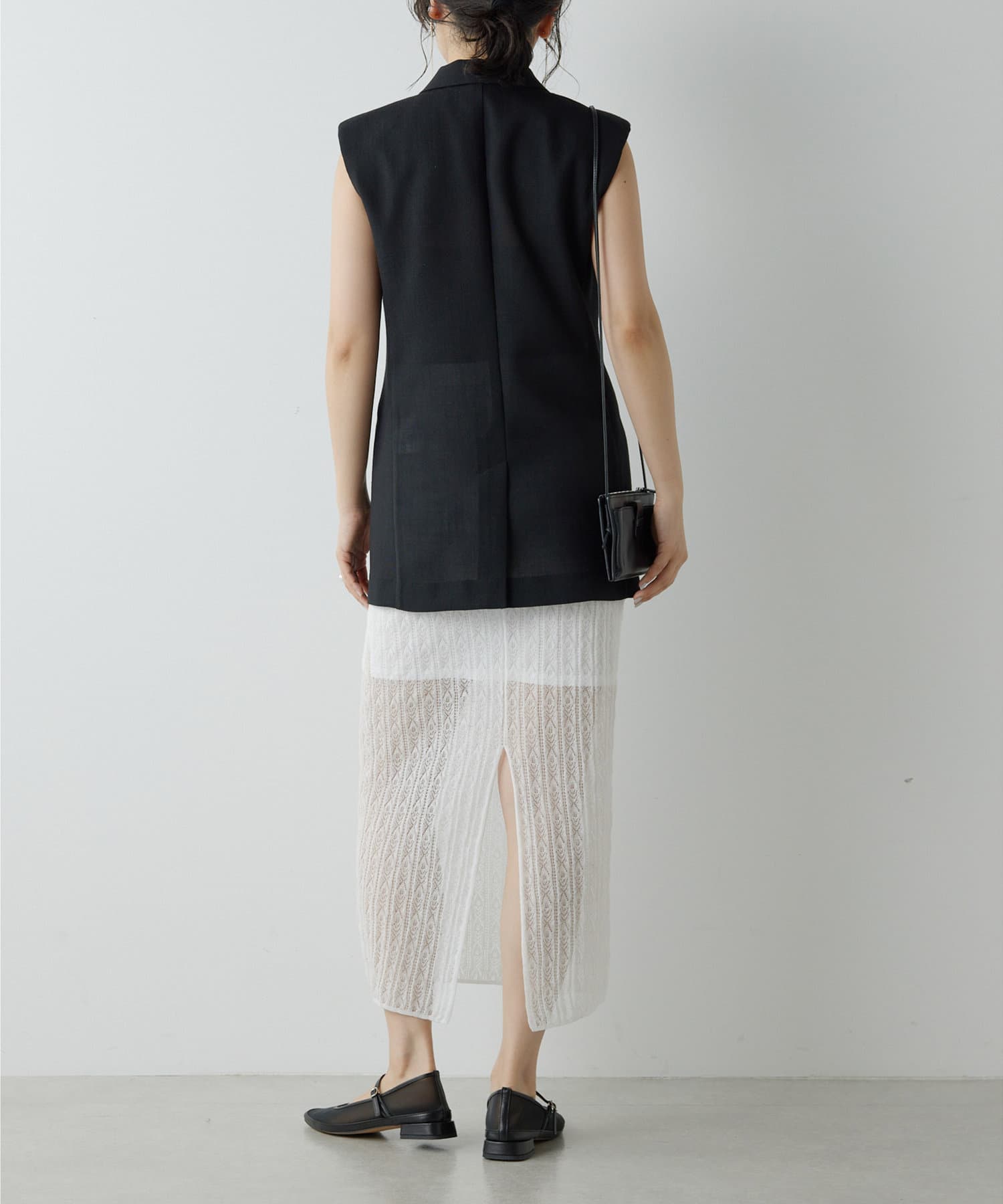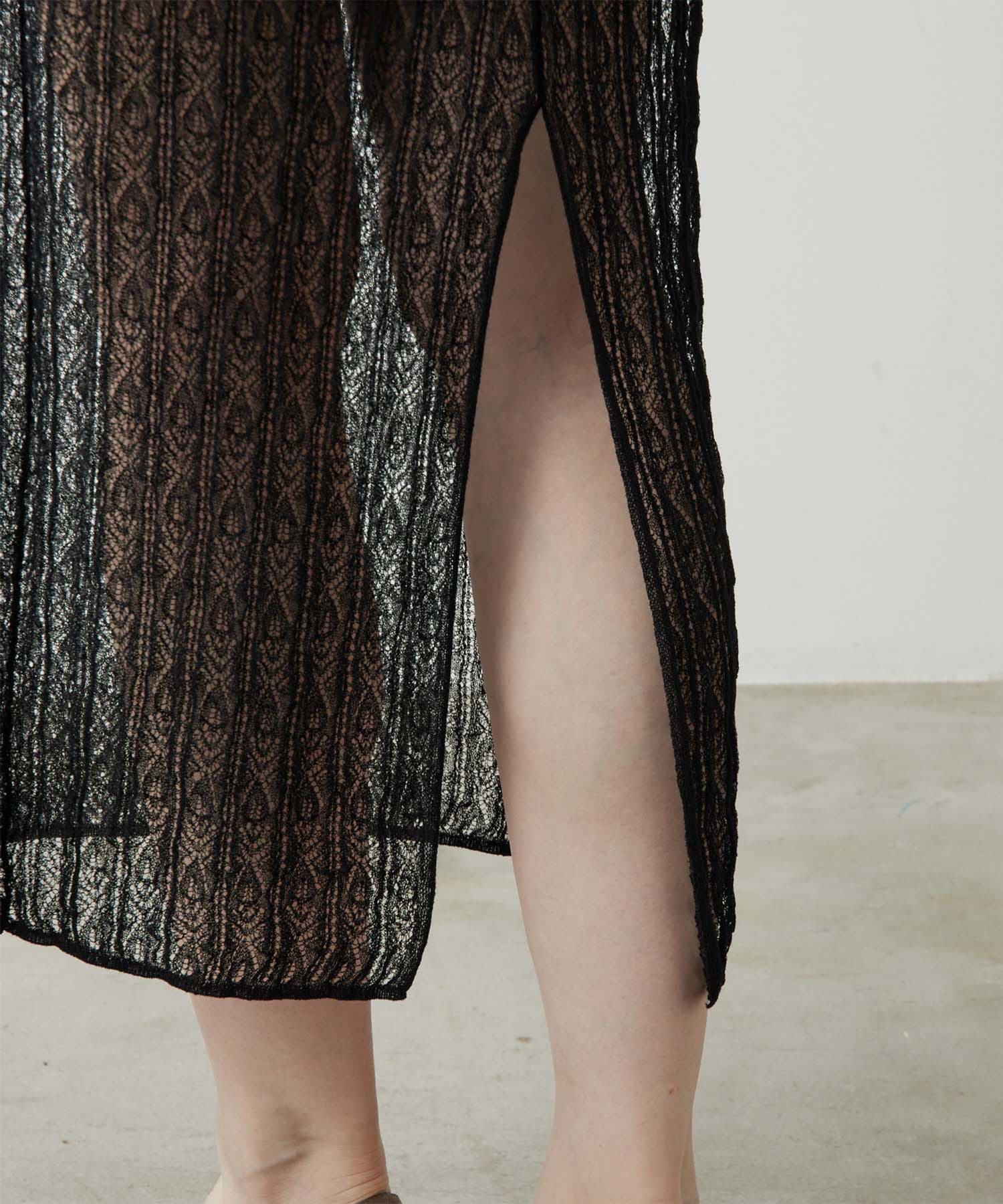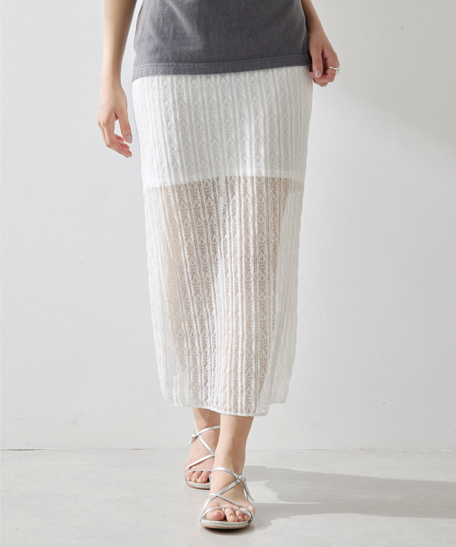 繊細な表情で品良く楽しめる、透かし編みタイトスカート