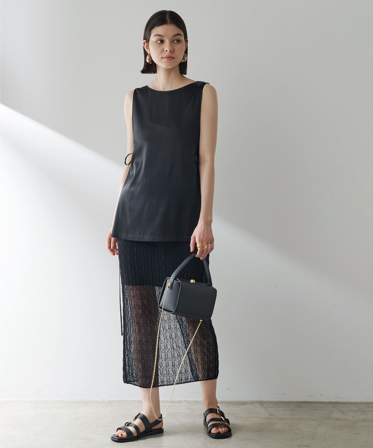 ■フィット感のあるタイトシルエットと透け感のある風合いが女性らしい一枚。