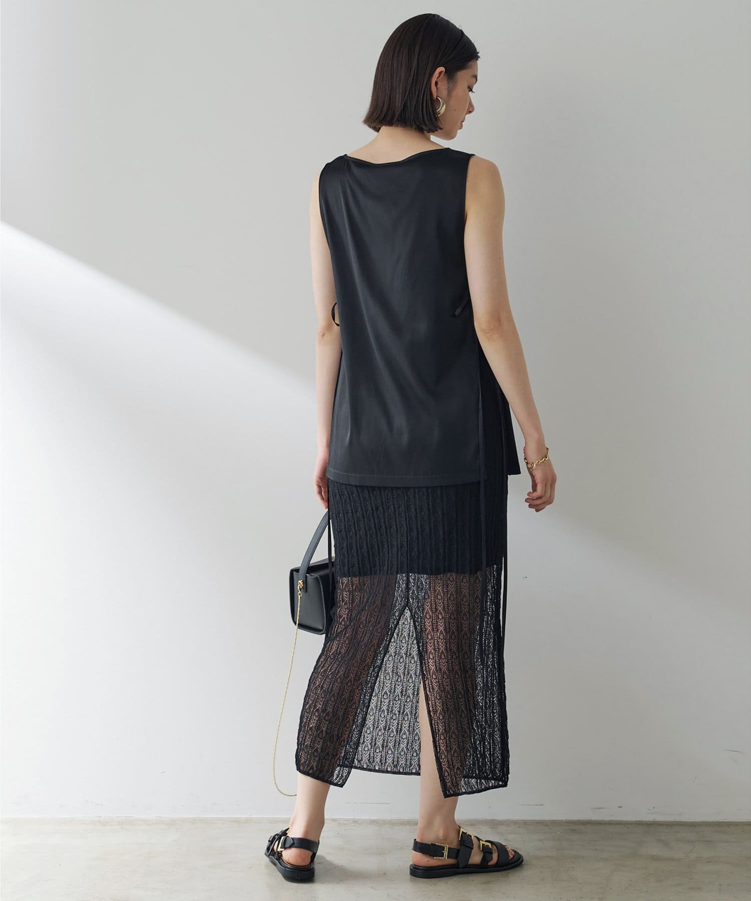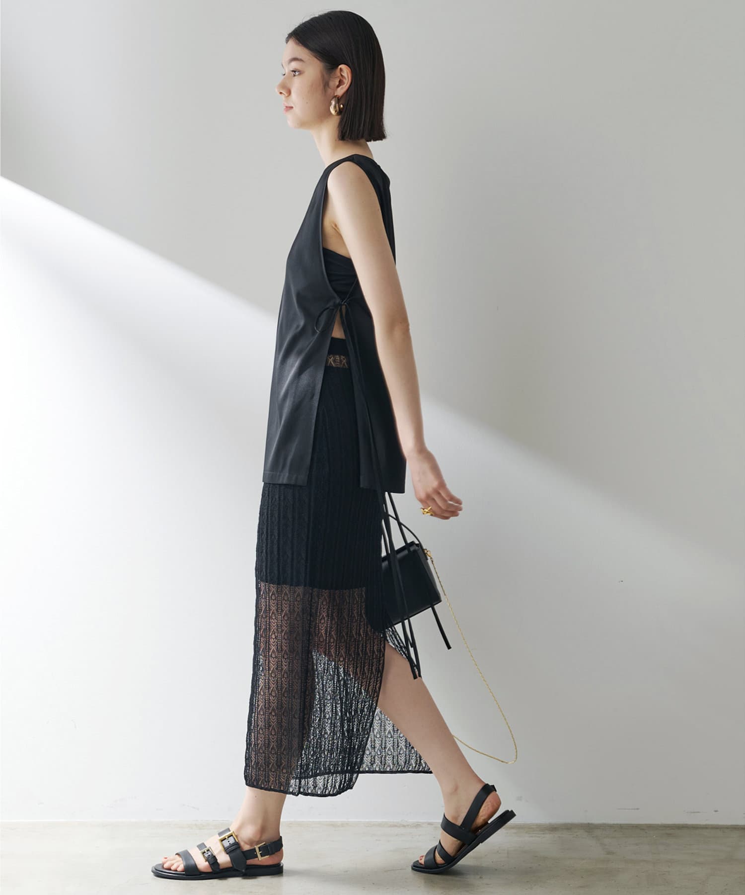 ■ミニ丈のペチコートを付属し、シアー感を活かしてヘルシーな雰囲気に。