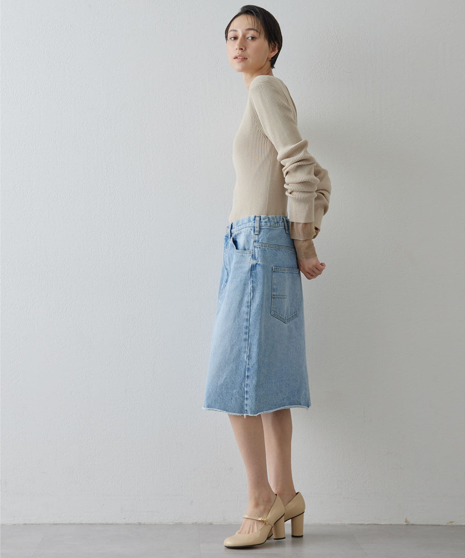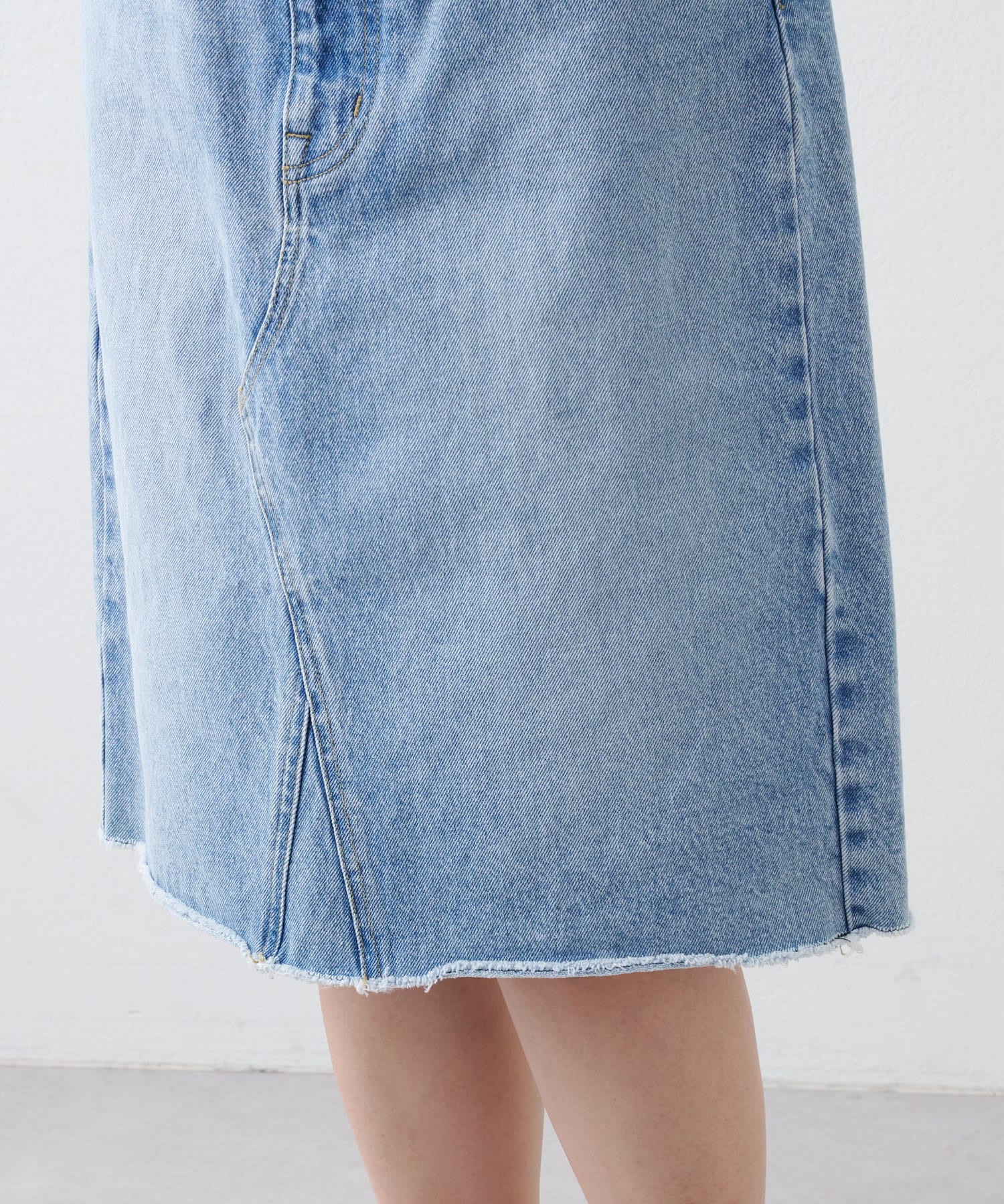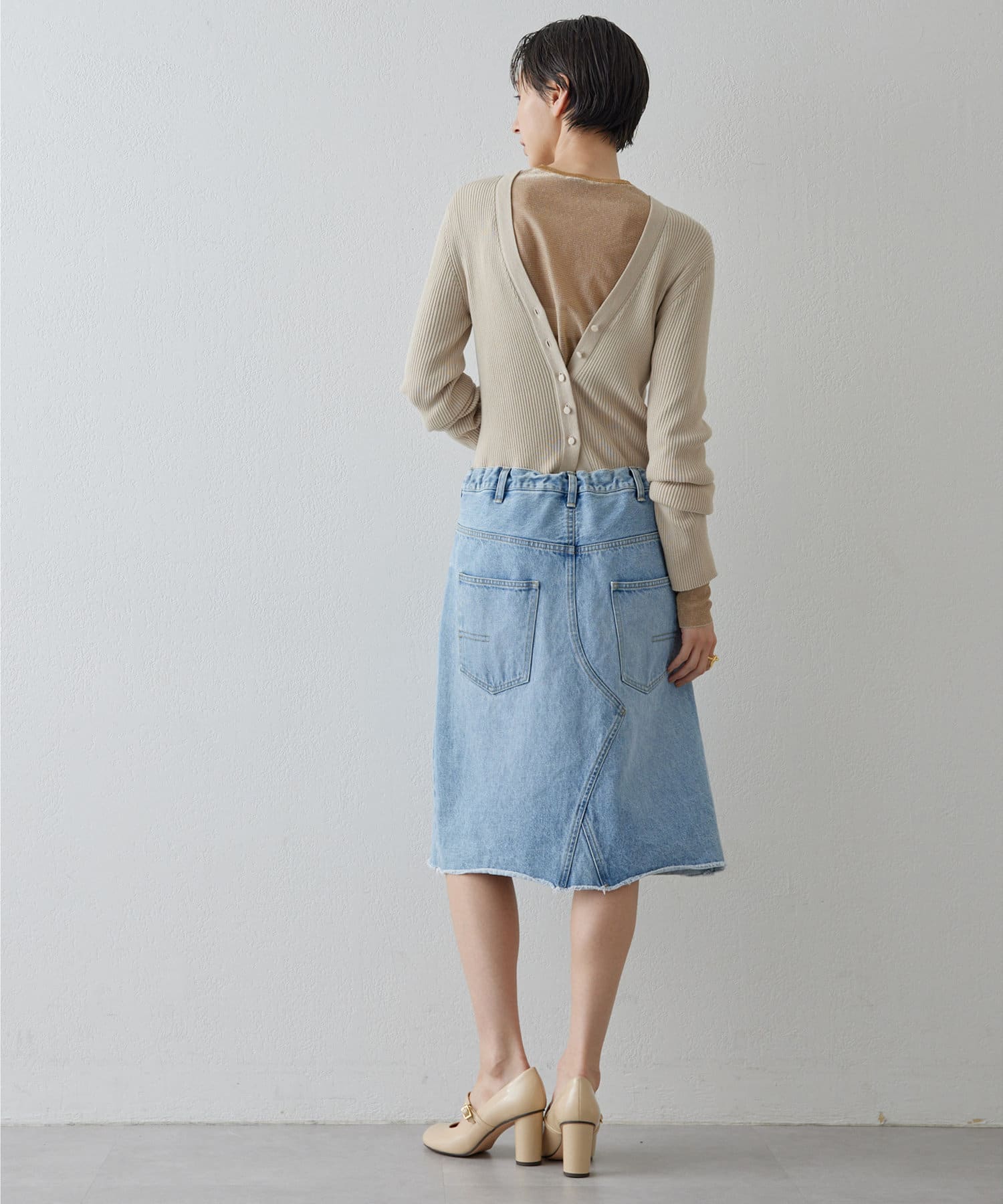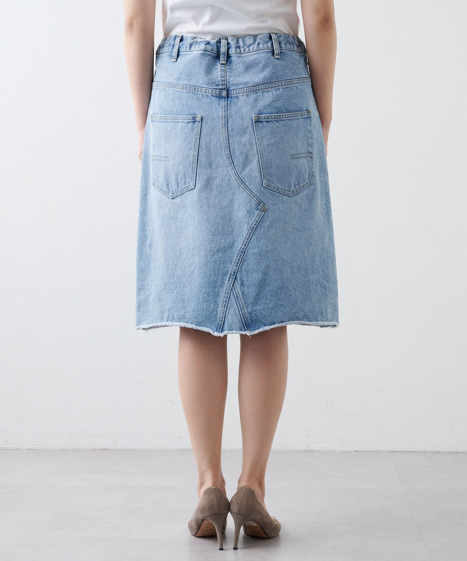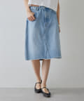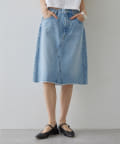 ■リメイクディティールを施したデニムスカート。