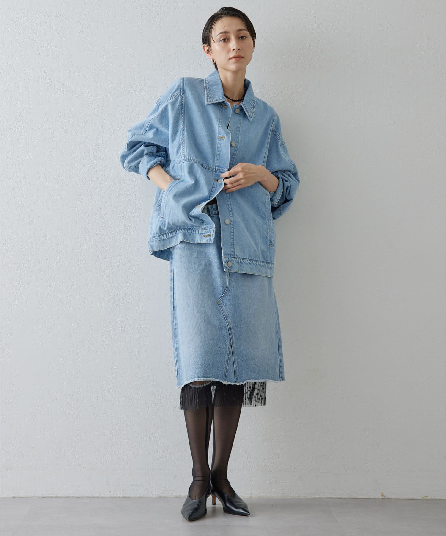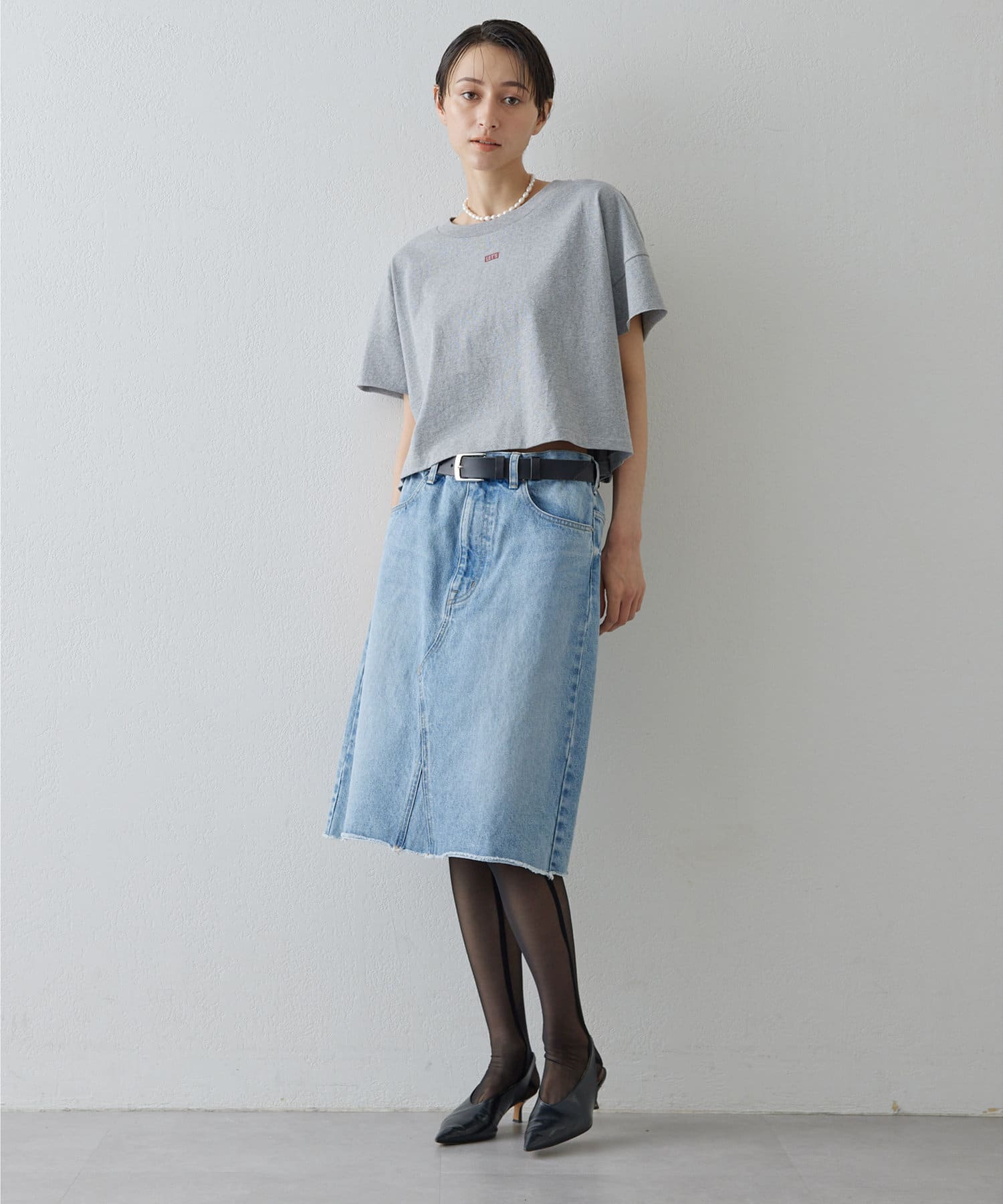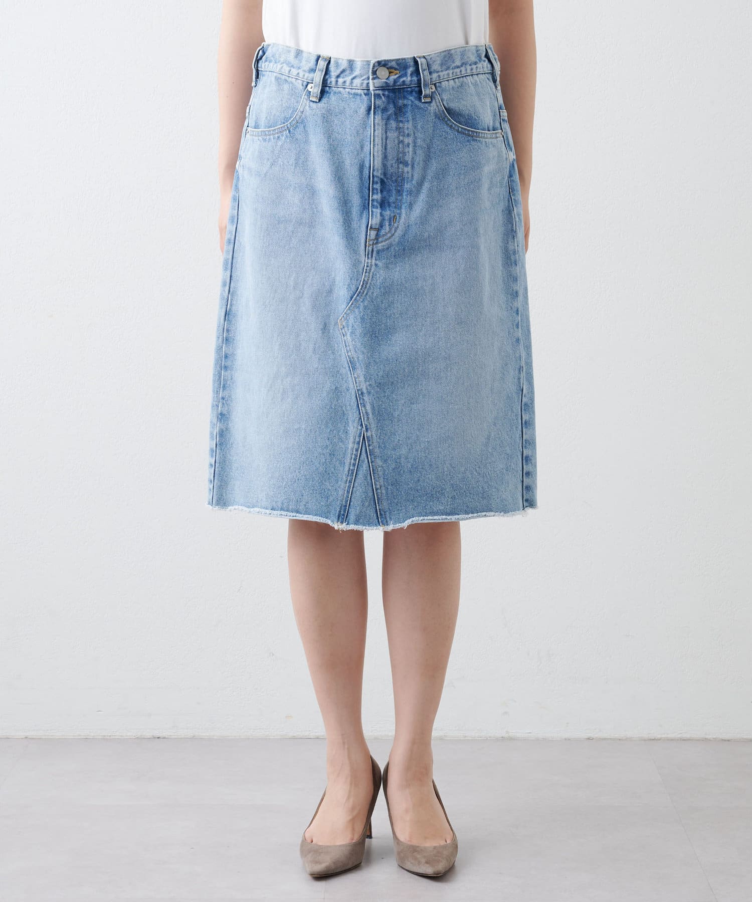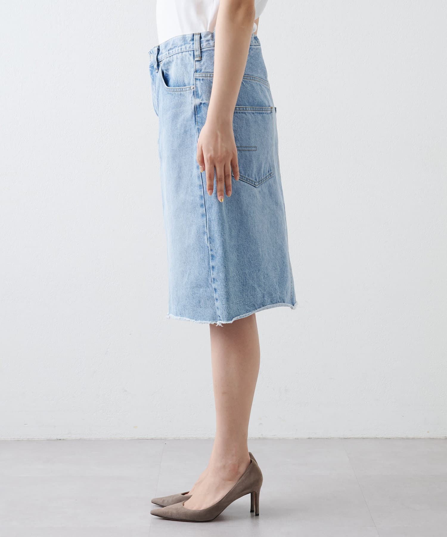 ■リメイクディティールを施したデニムスカート。