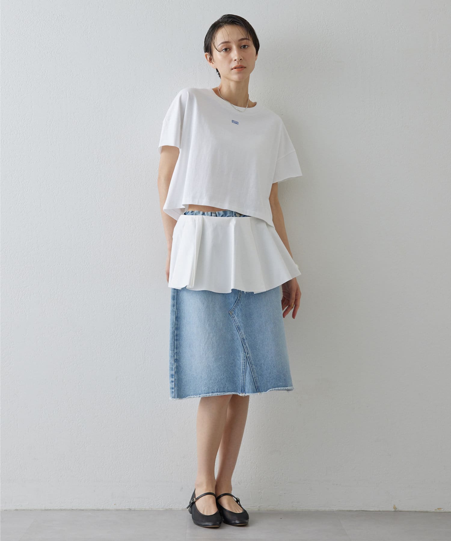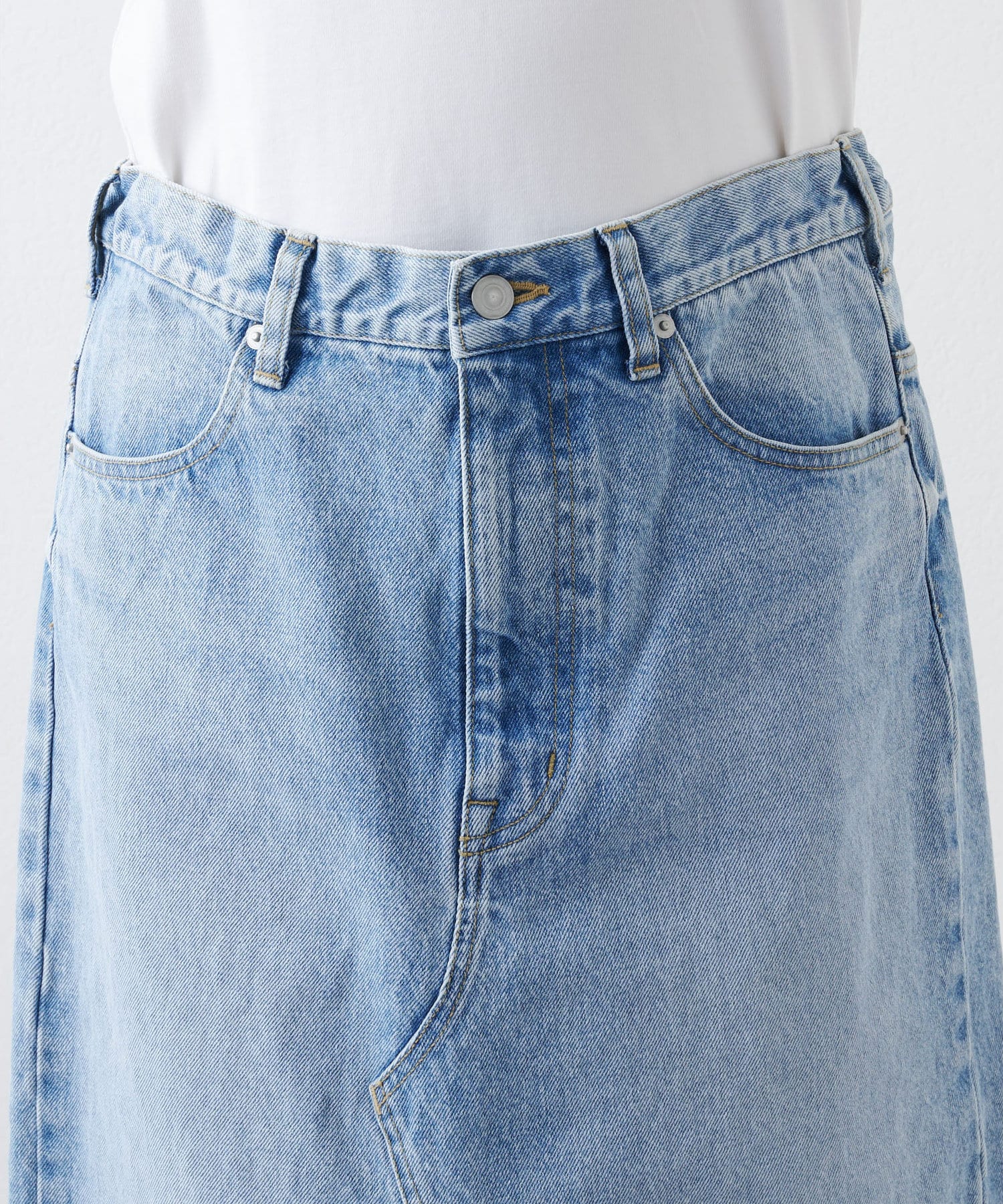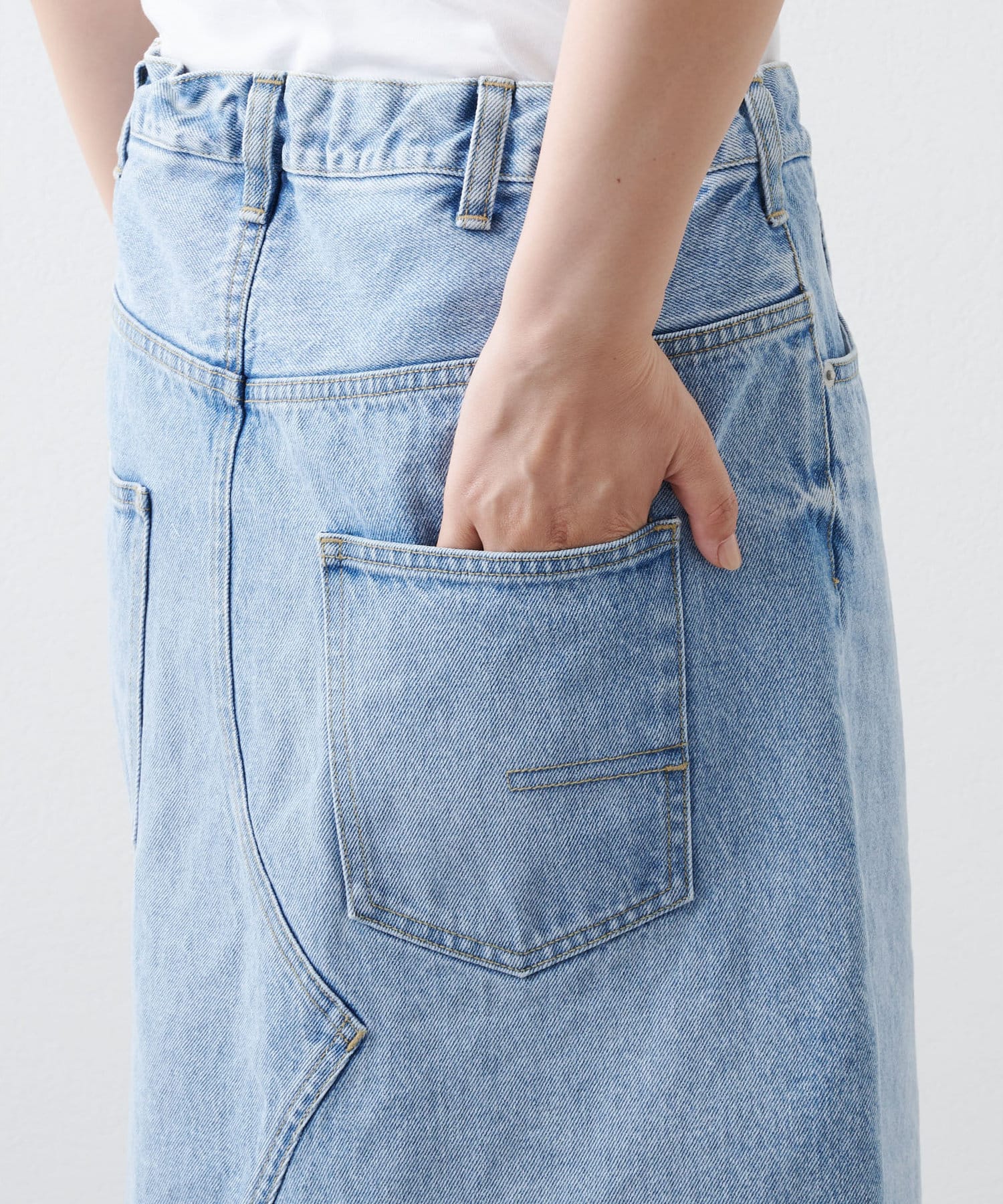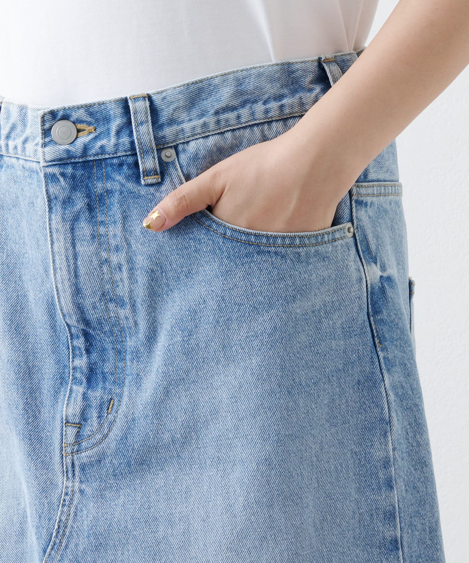 ■リメイクディティールを施したデニムスカート。