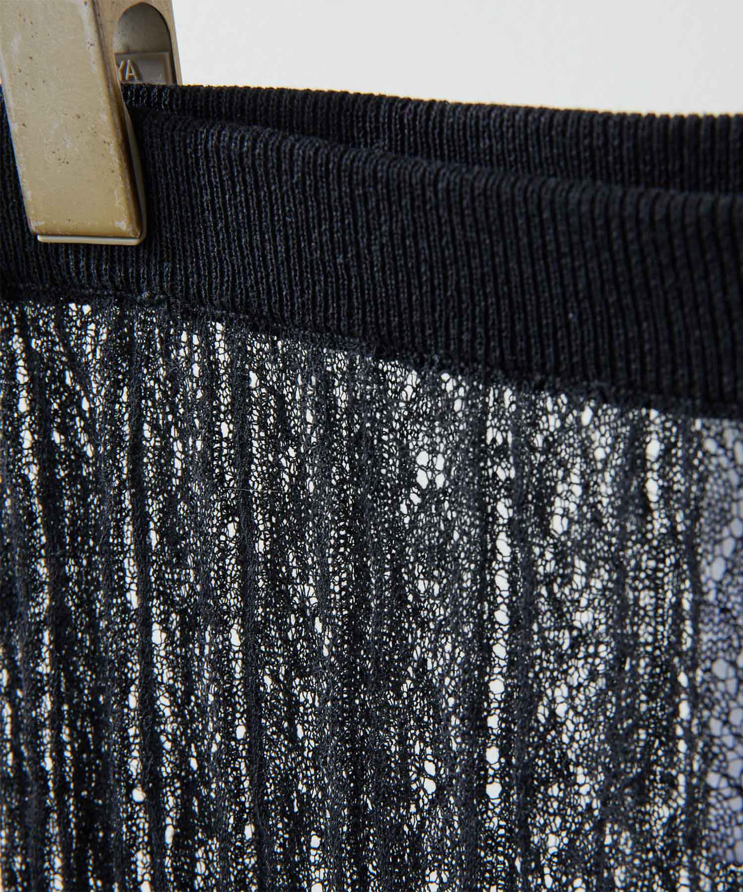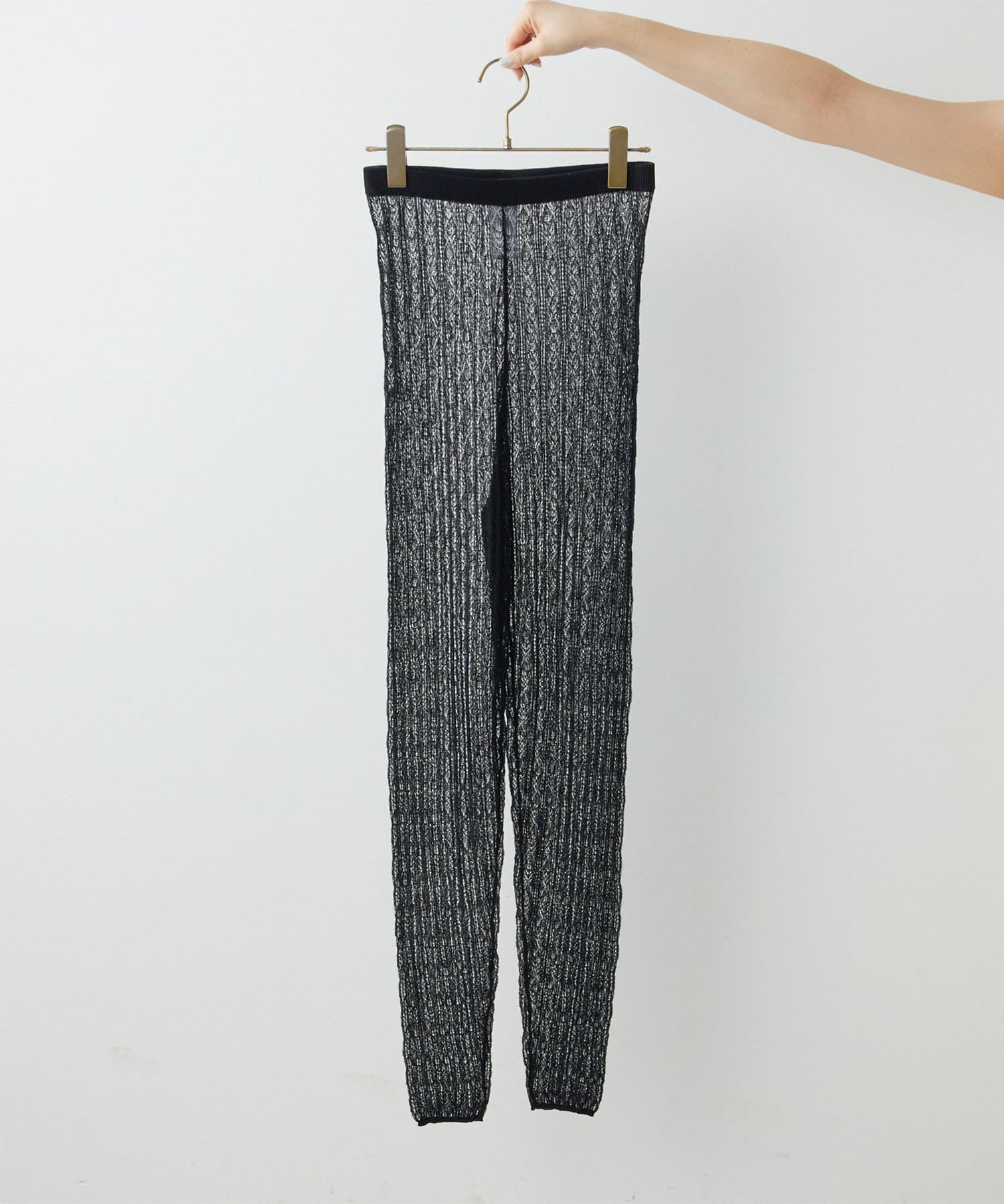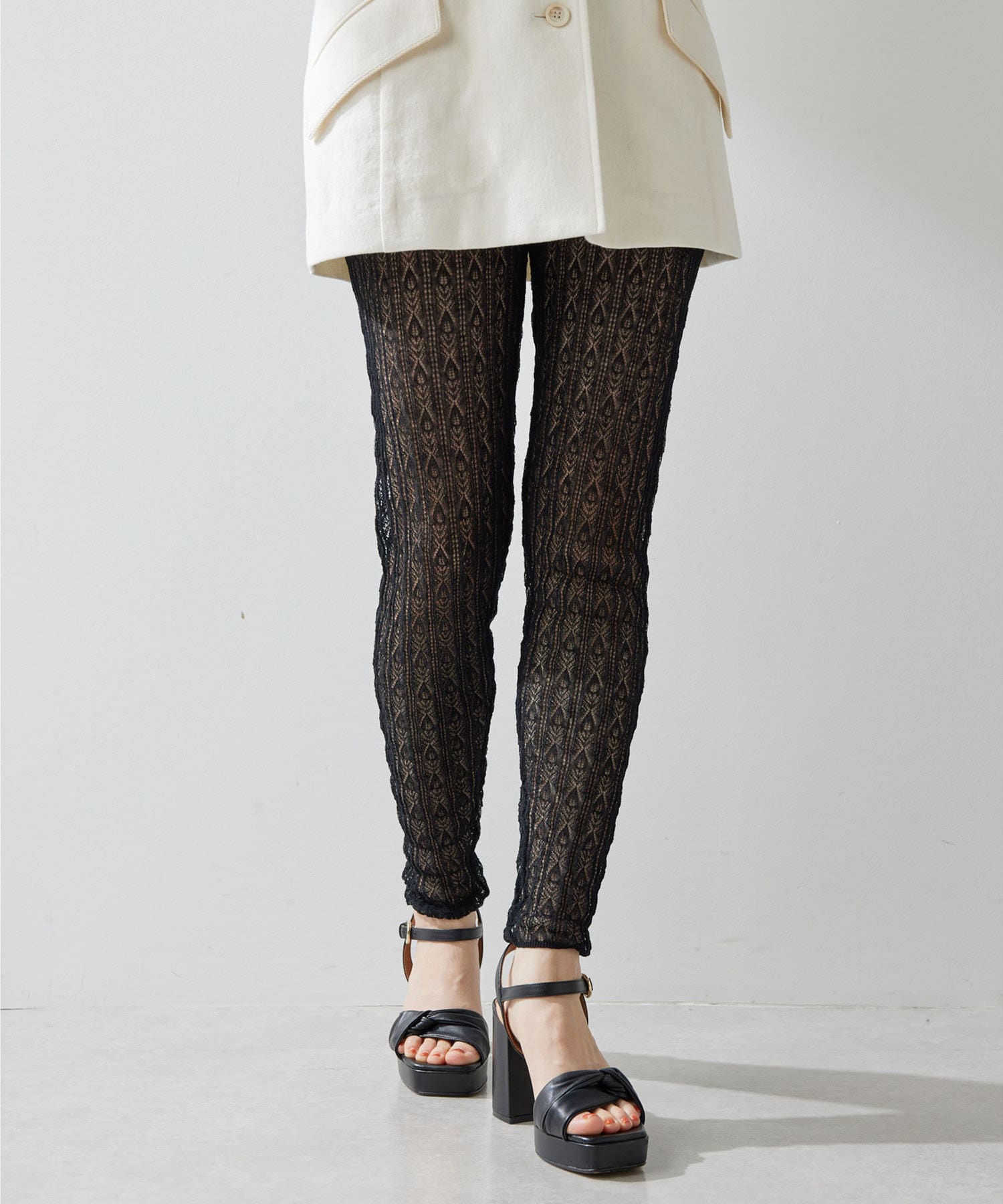 繊細な表情で品良く楽しめる、透かし編みレギンスパンツ