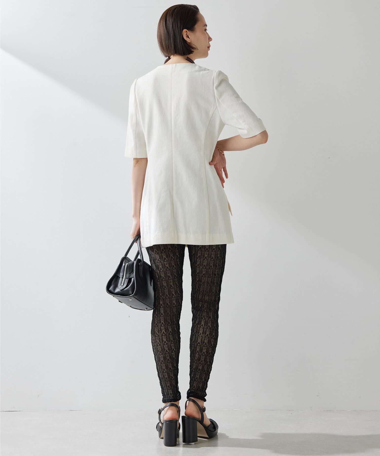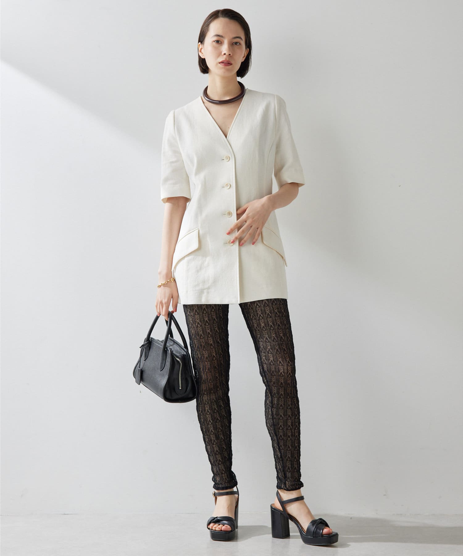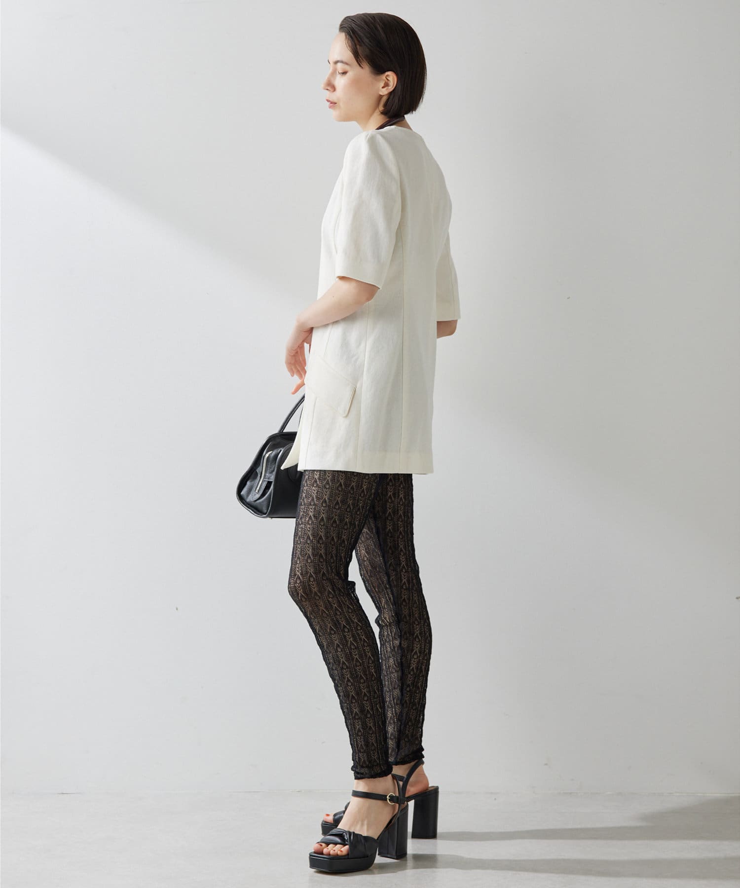 繊細な表情で品良く楽しめる、透かし編みレギンスパンツ