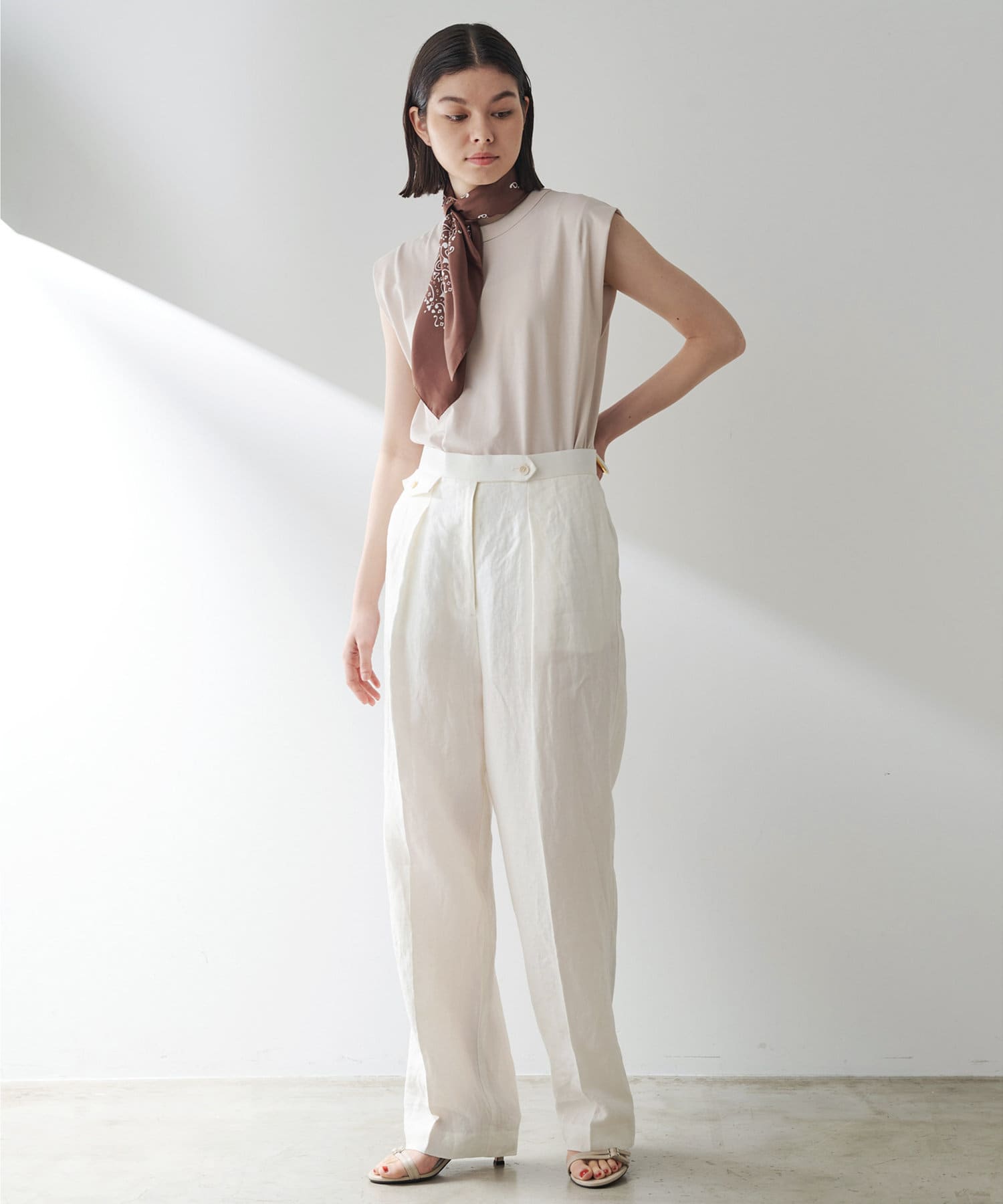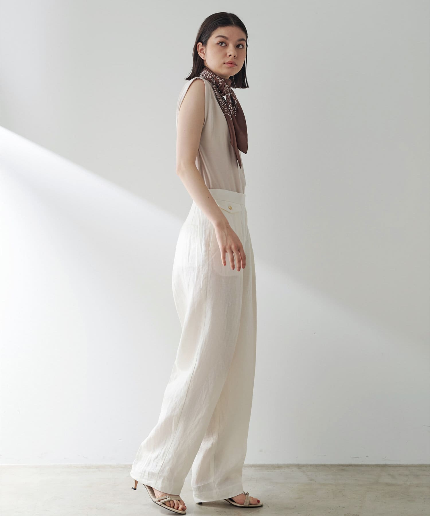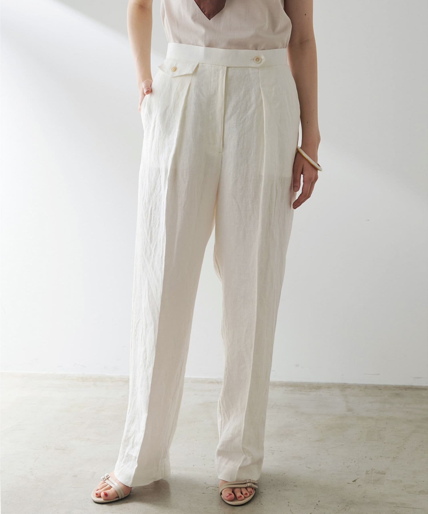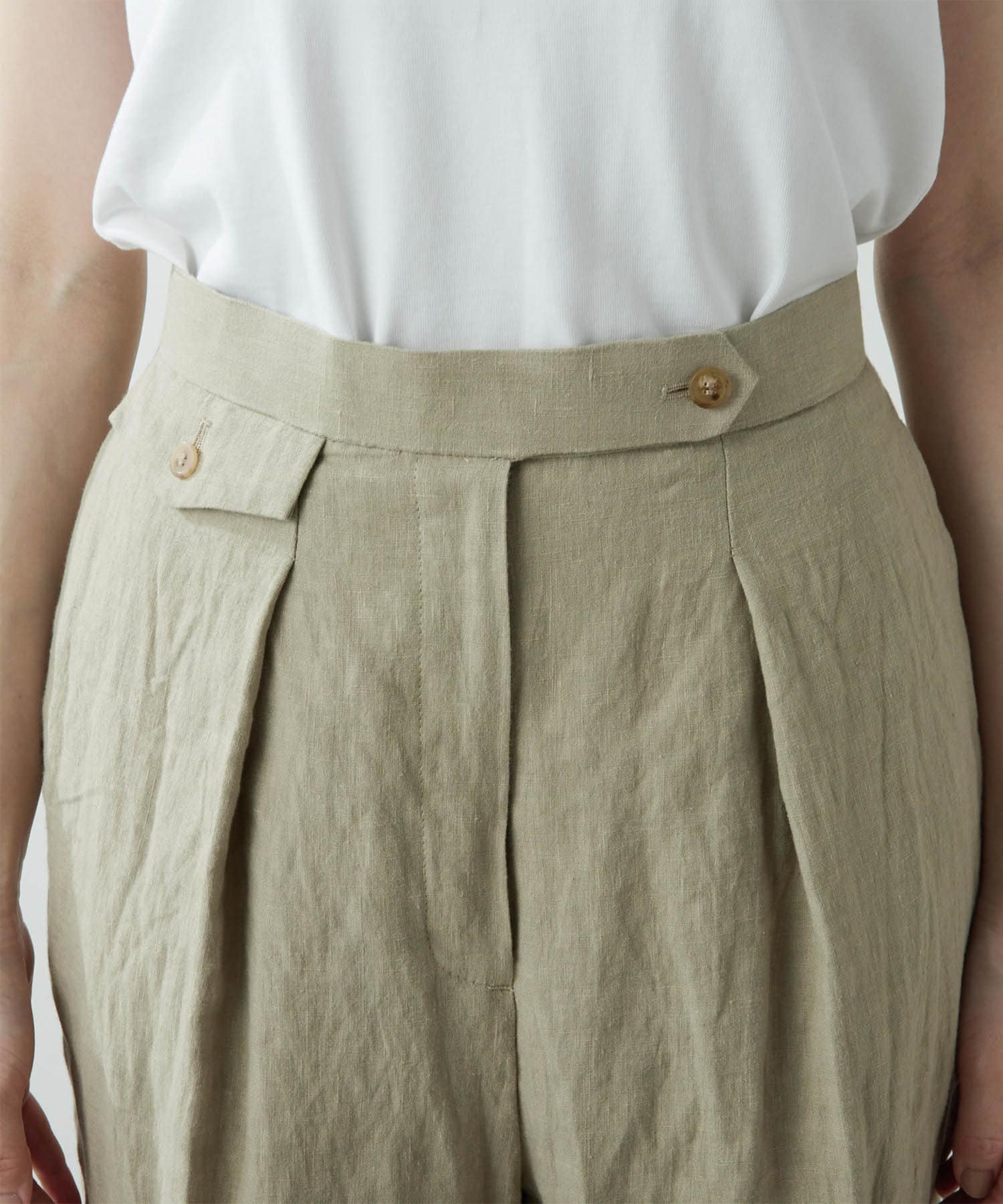 ■フレンチリネンを100%使用したワイドタックパンツ。