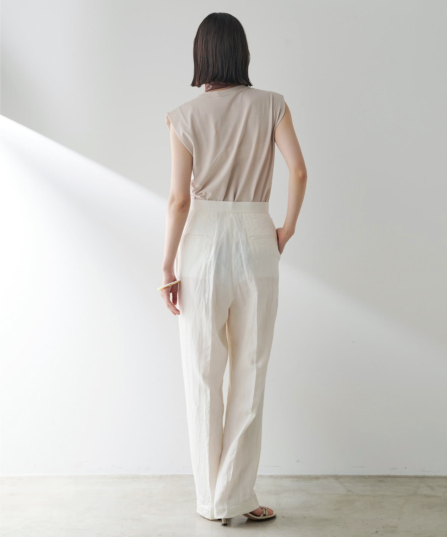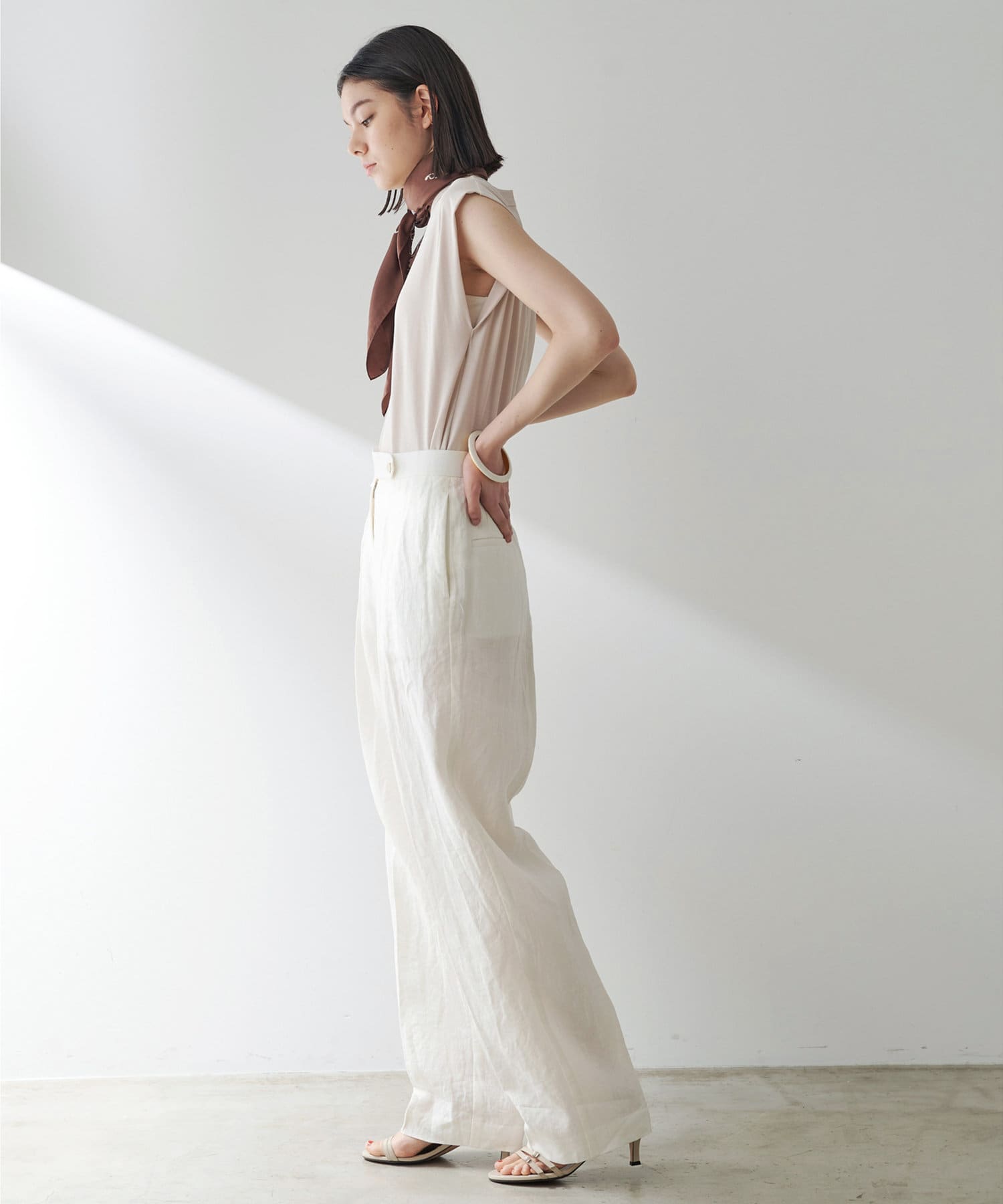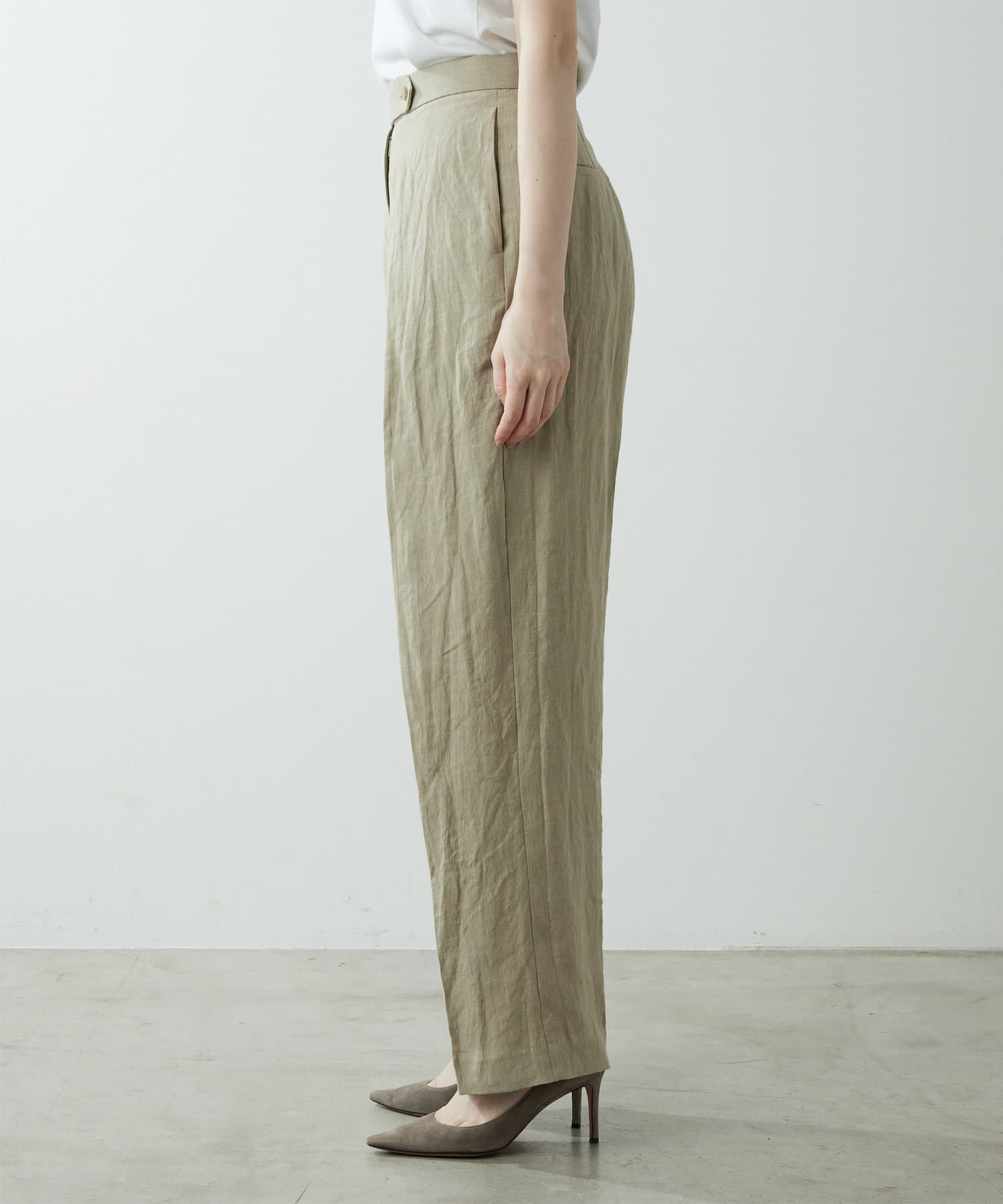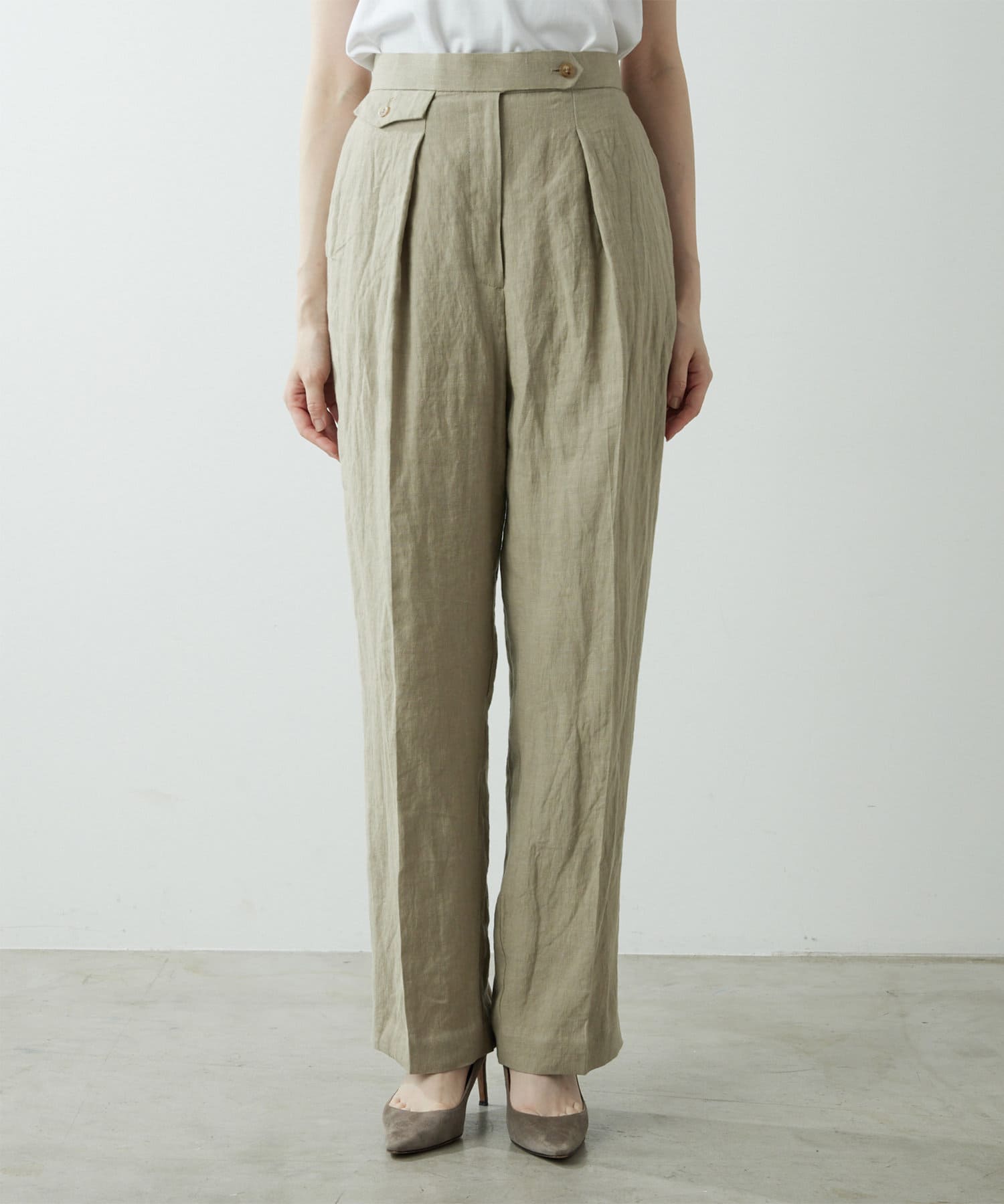 ■フレンチリネンを100%使用したワイドタックパンツ。