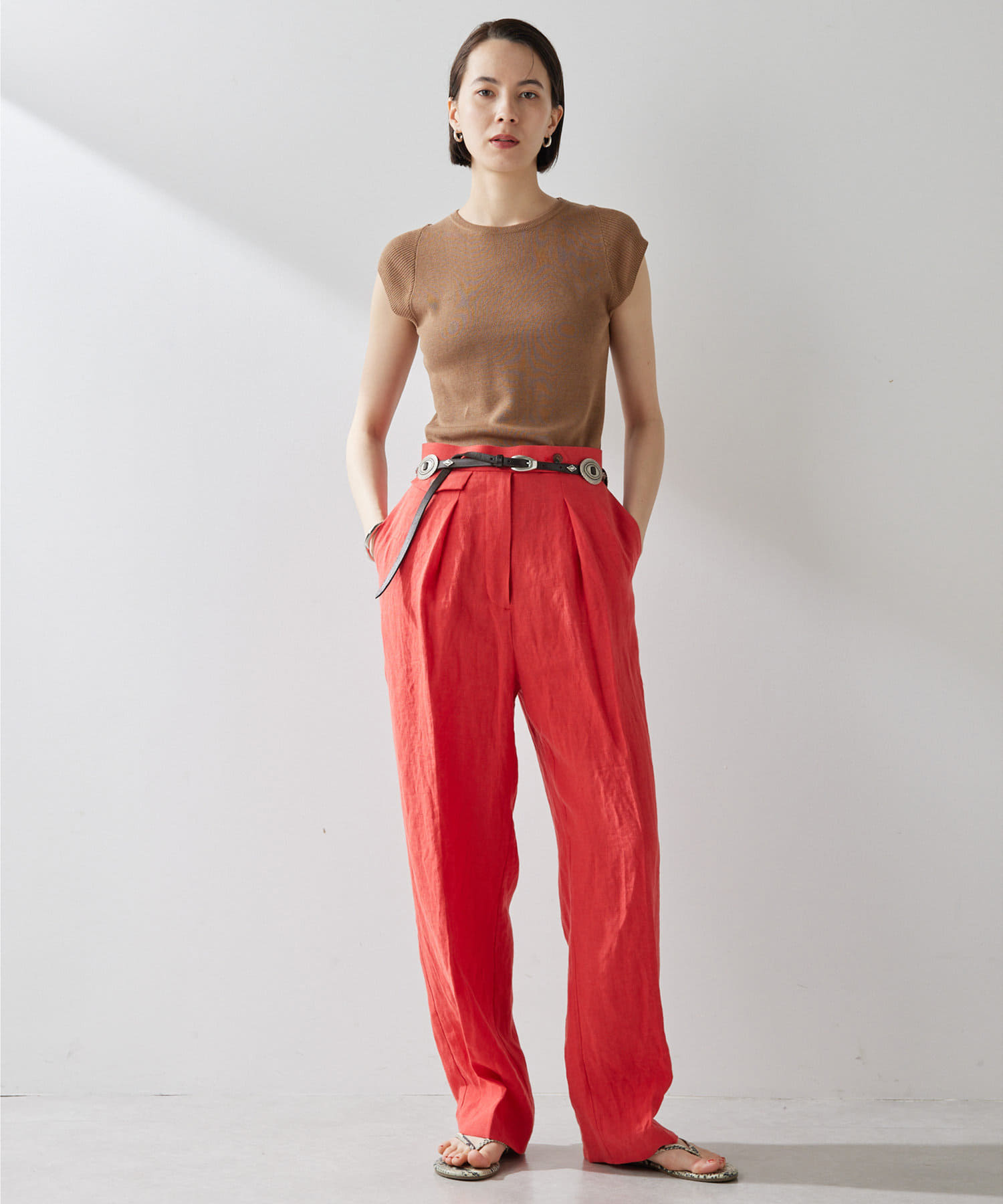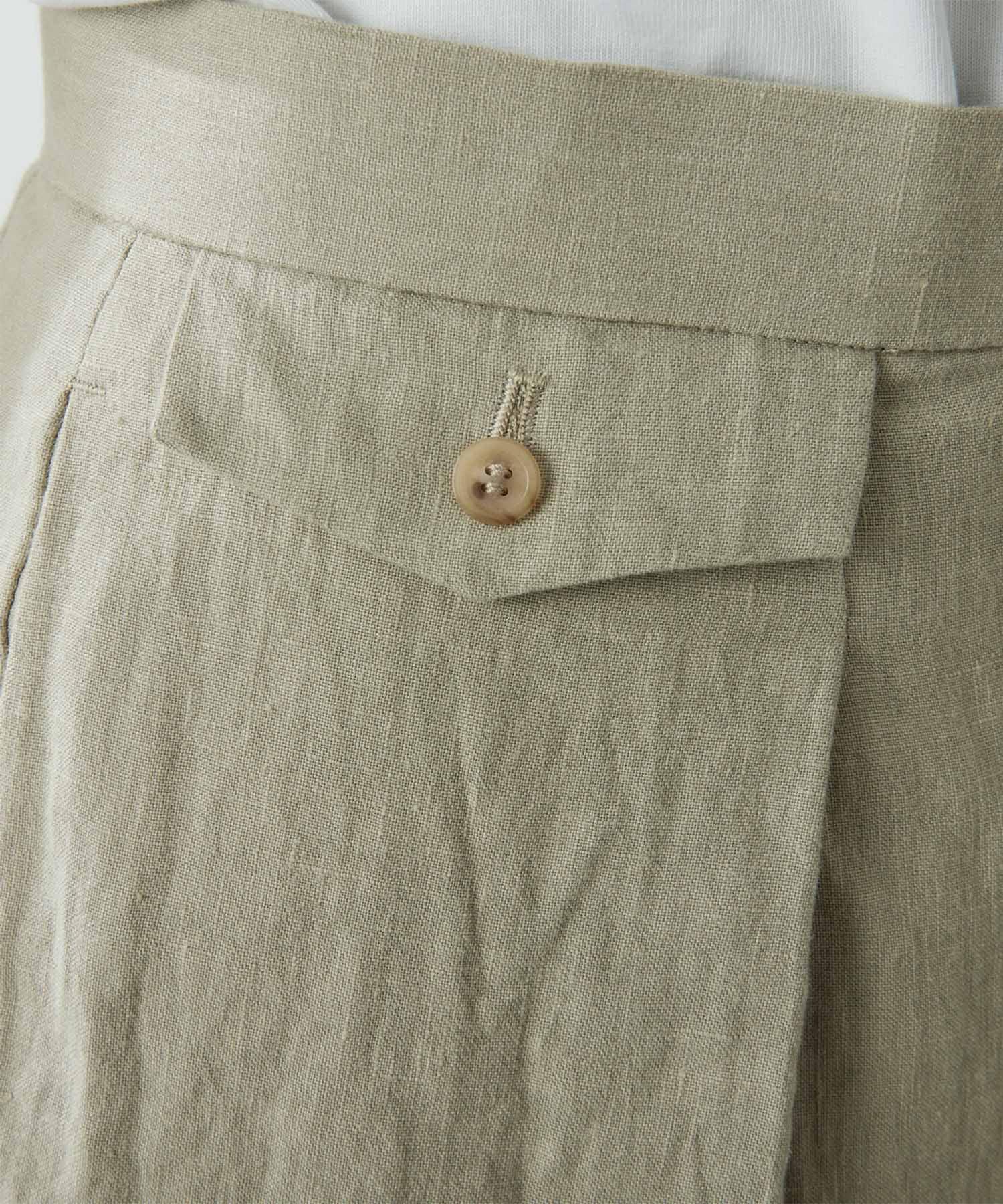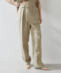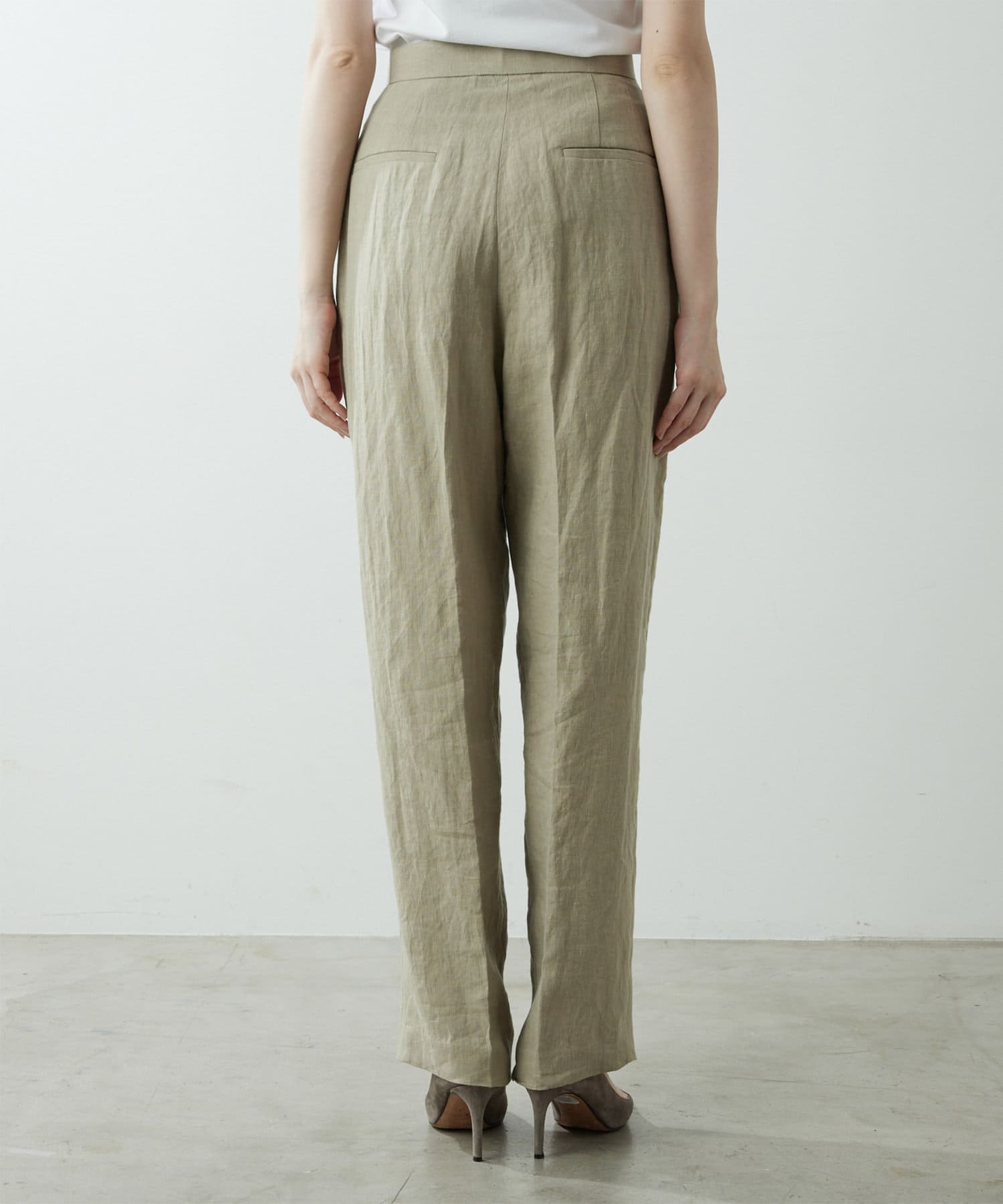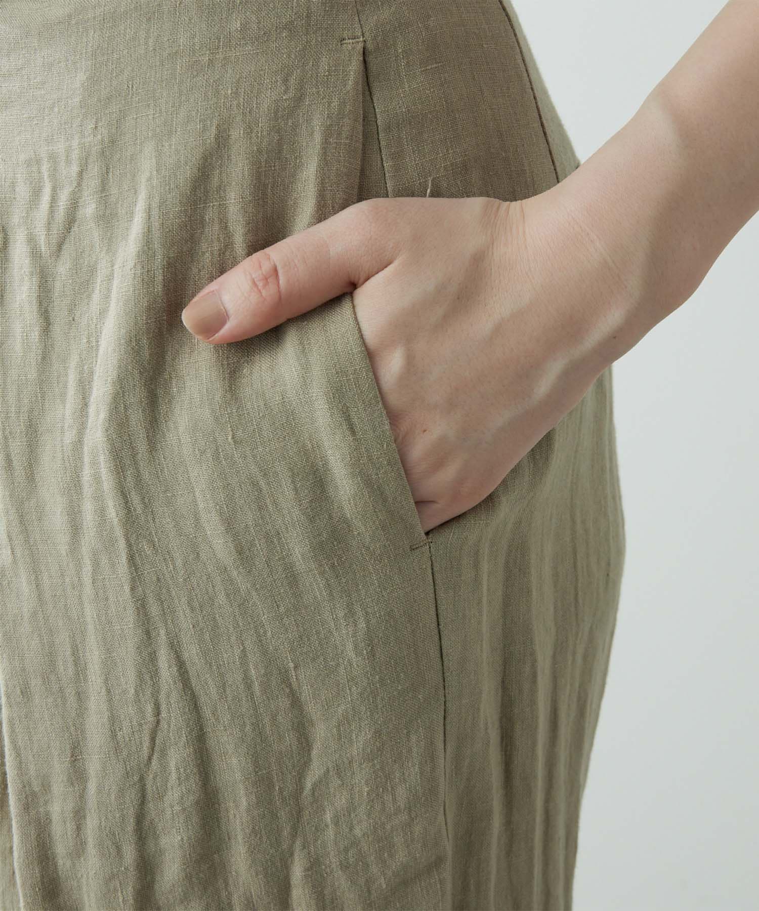 ■フレンチリネンを100%使用したワイドタックパンツ。