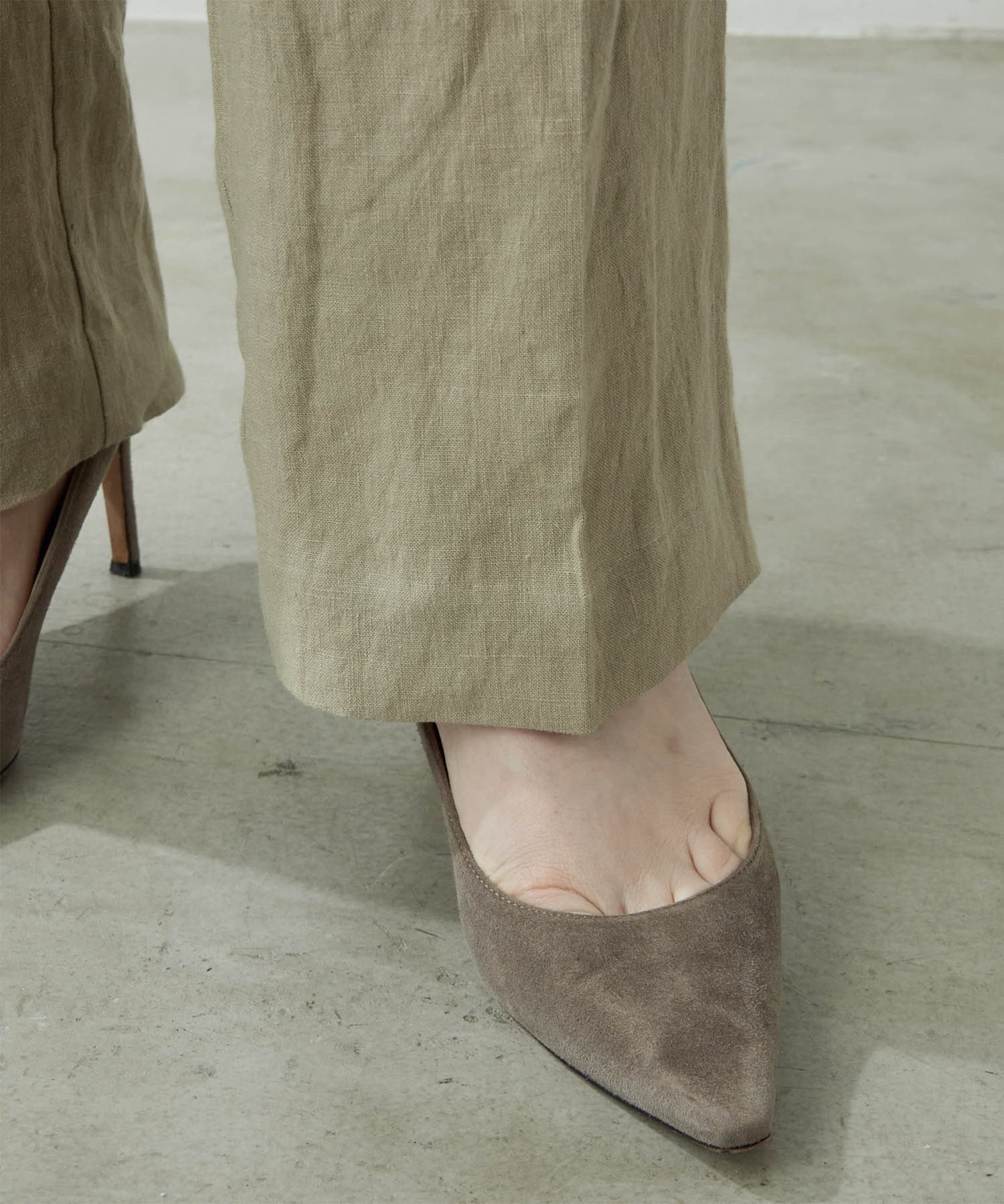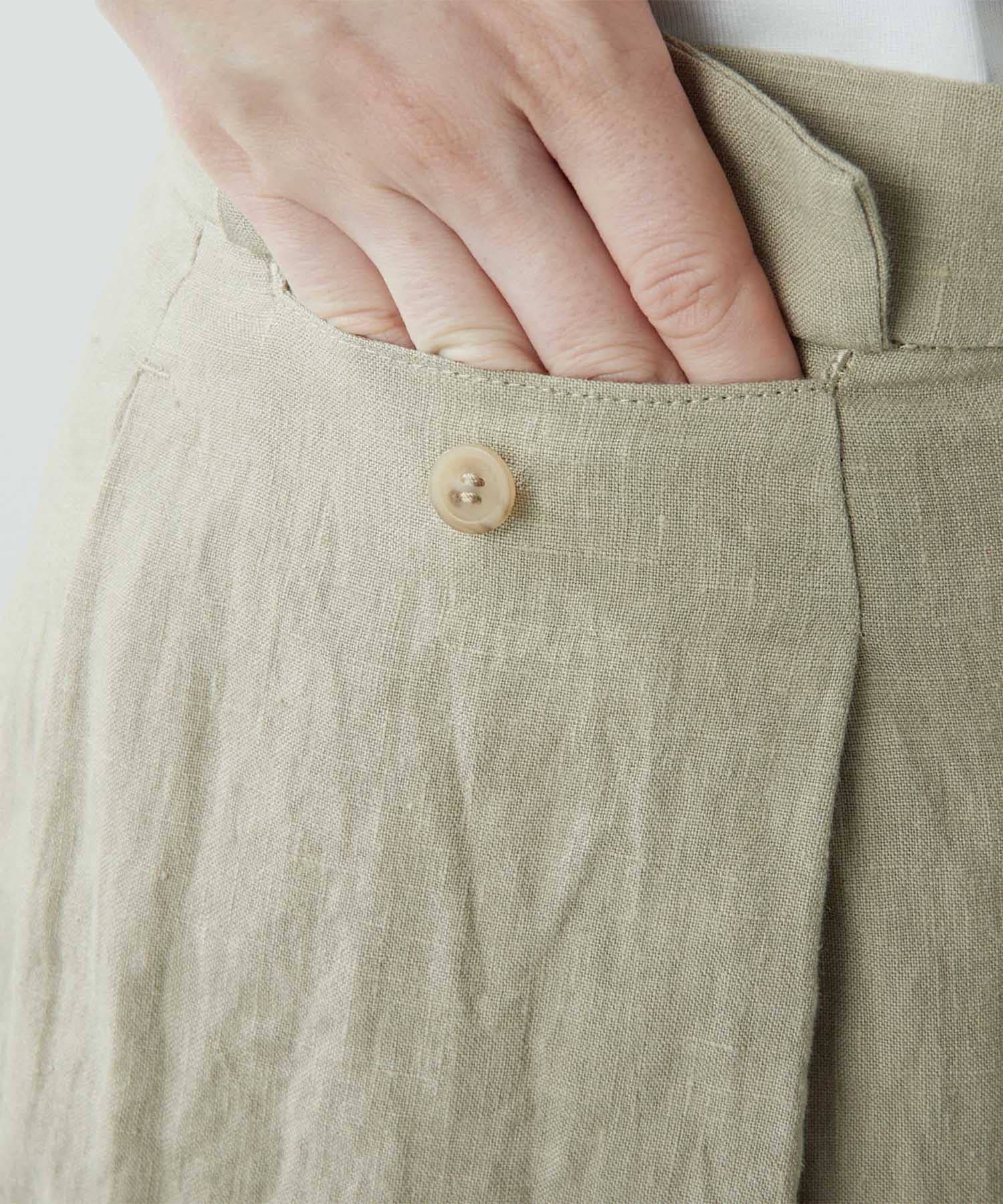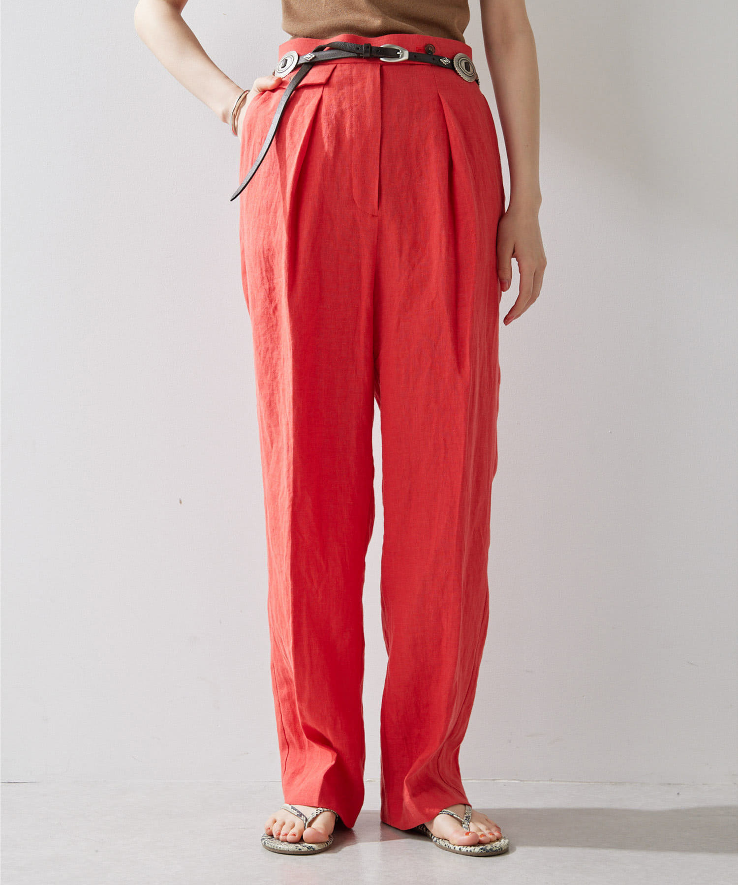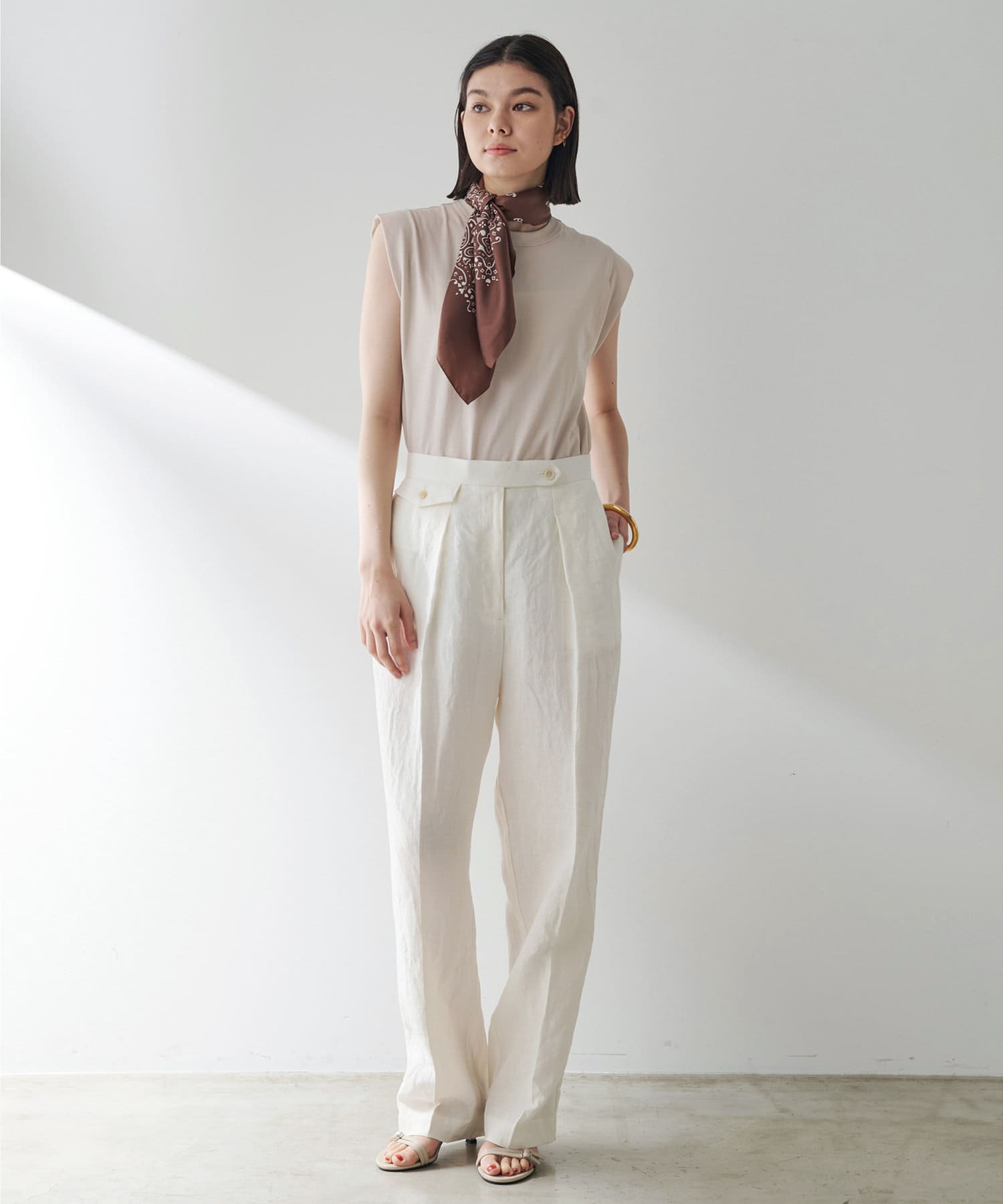 ■フレンチリネンを100%使用したワイドタックパンツ。
