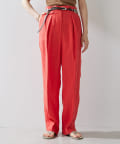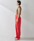 フロントタックと全体のシルエットが綺麗なパンツ。ボリューム感があるシルエットですが、リネン100%の軽い素材感なので重たく見えずに着て頂けます。38サイズで少し足元でたまるトレンド感のある丈感でした!