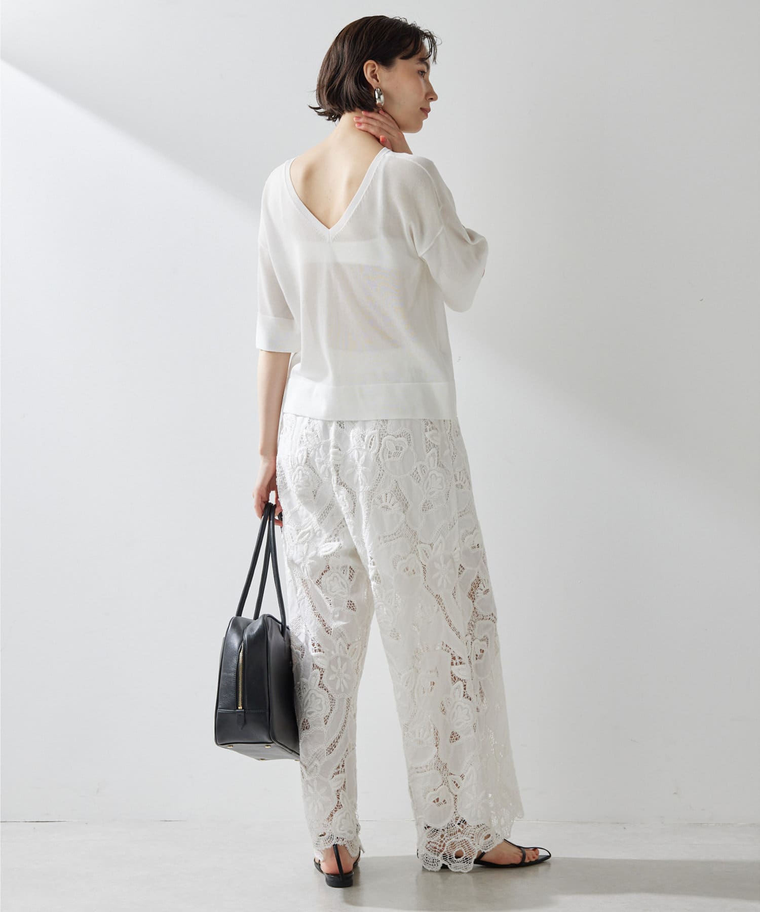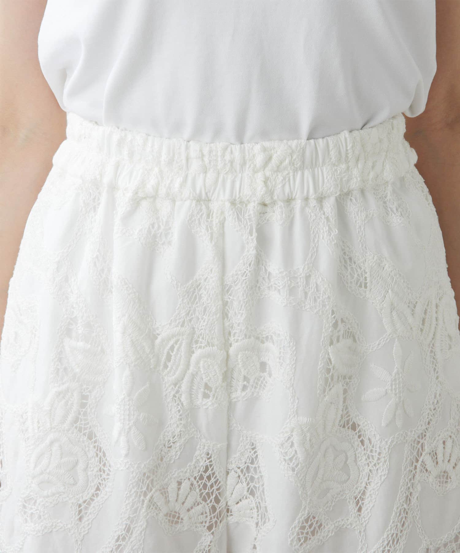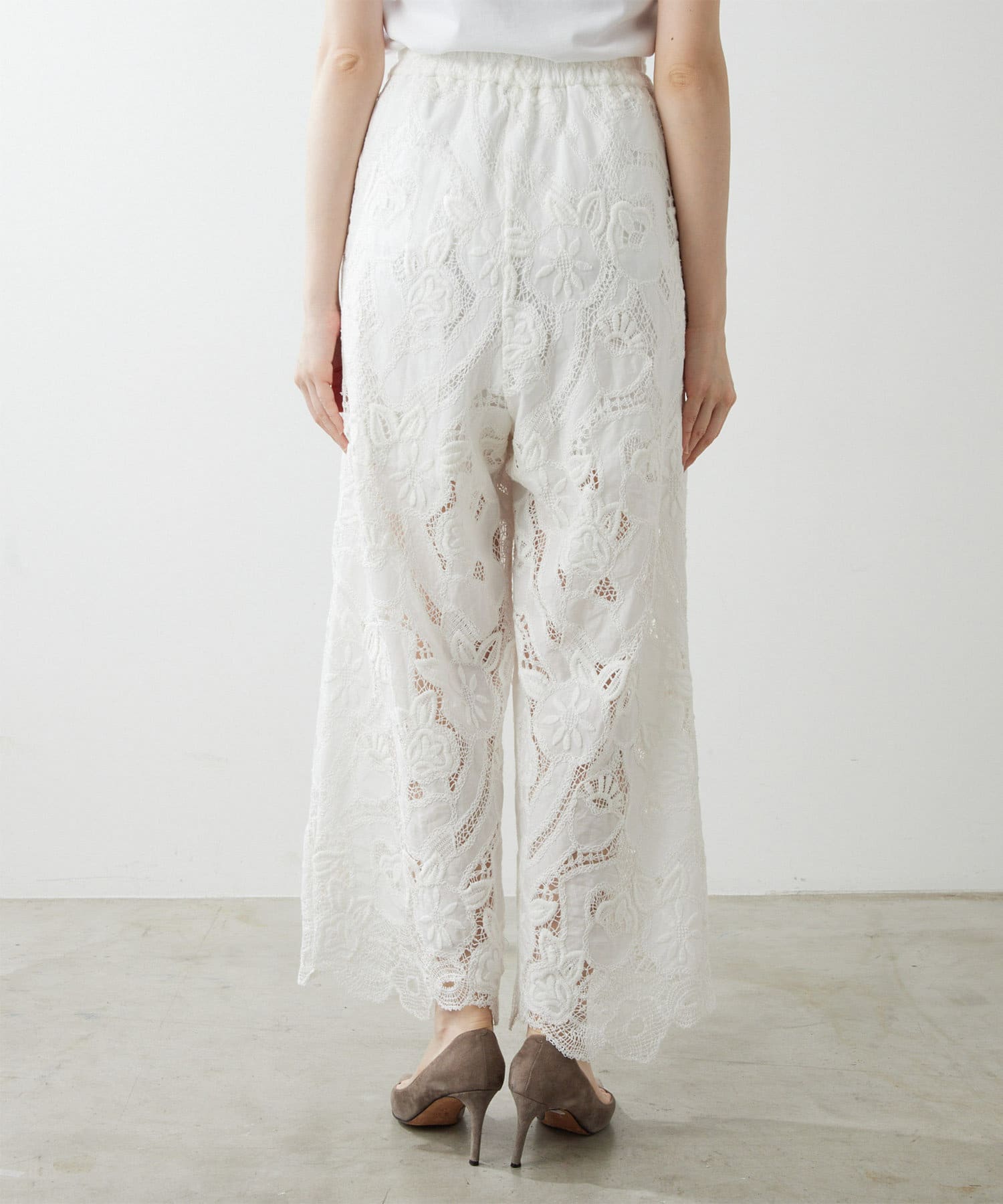 贅沢なレース使いが印象的な、大人のエンブロイダリーパンツ