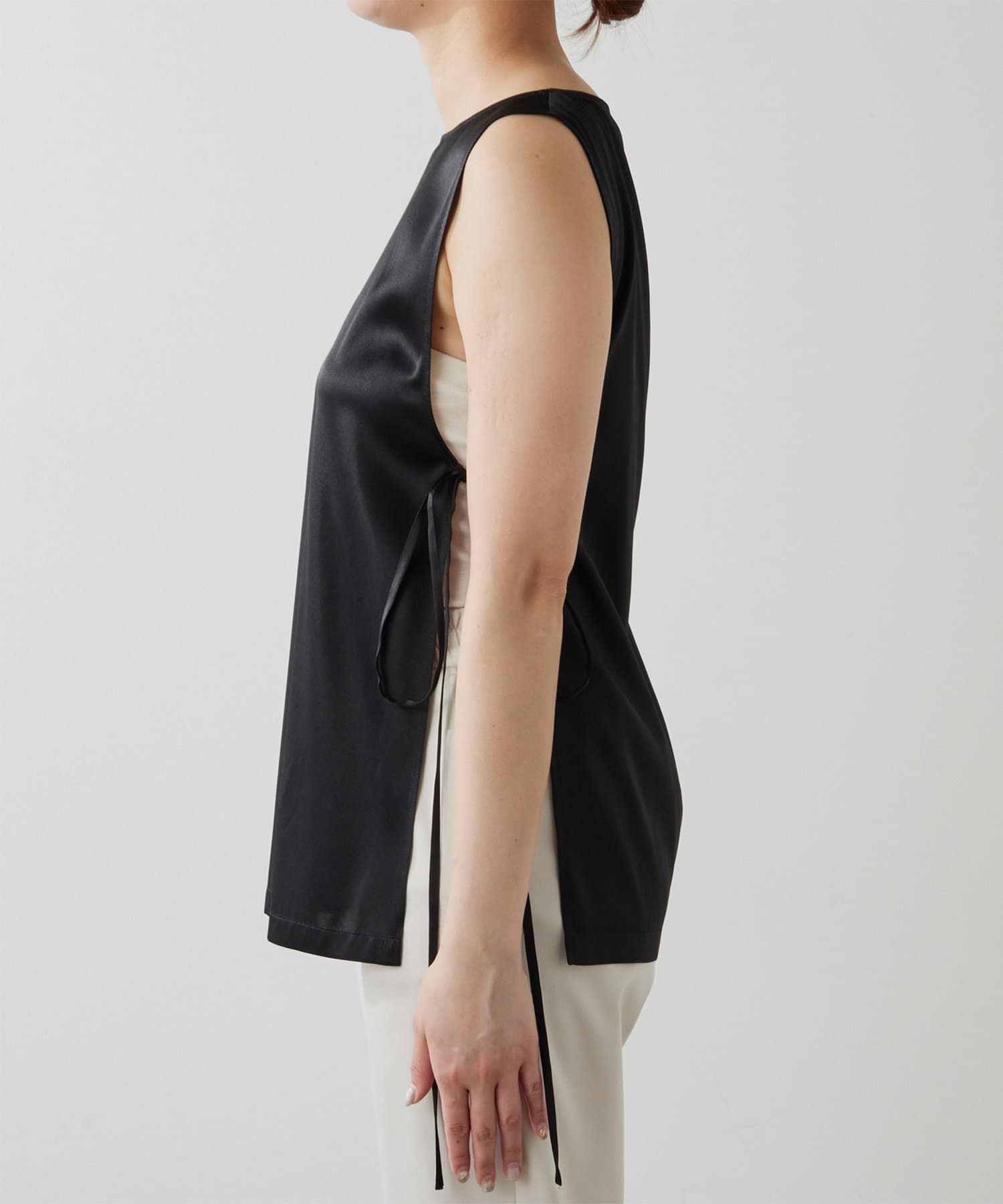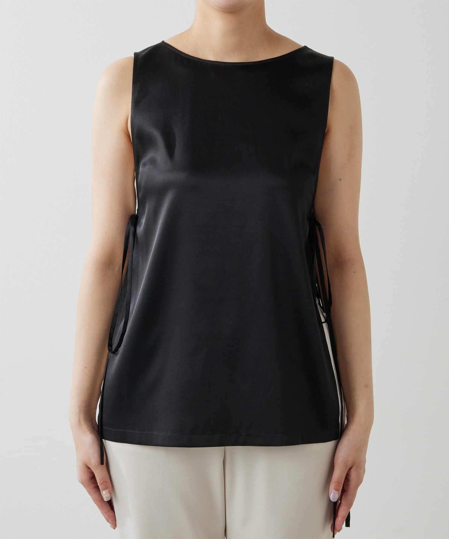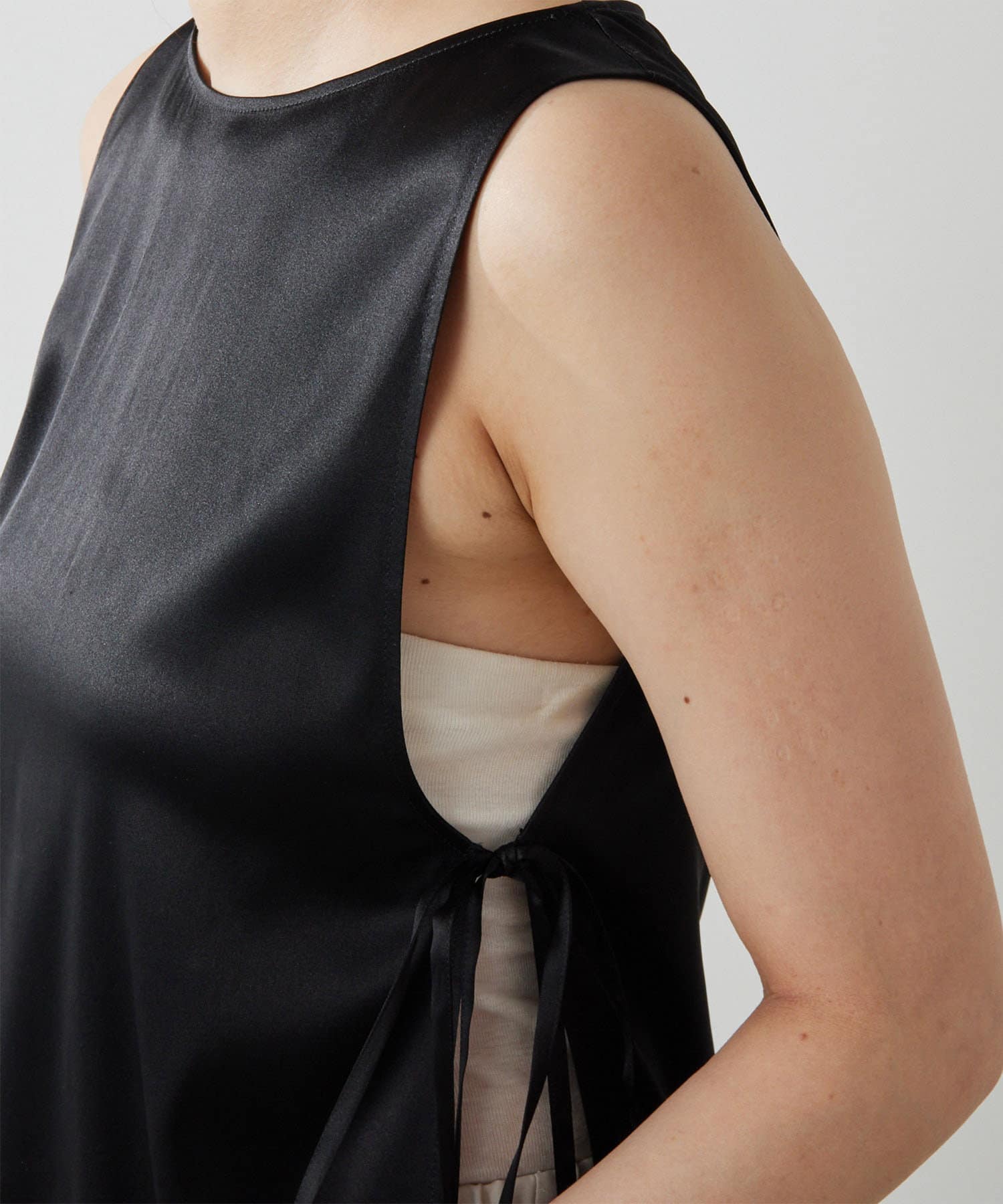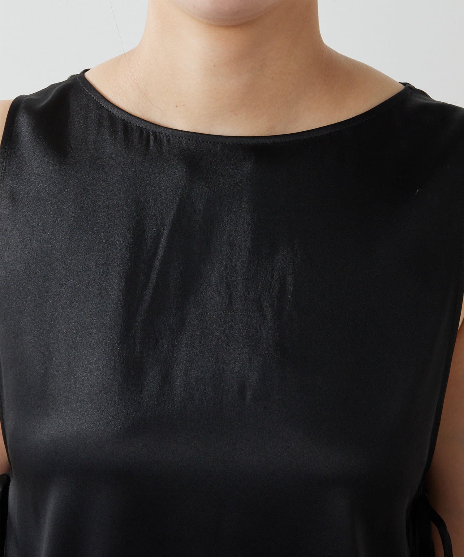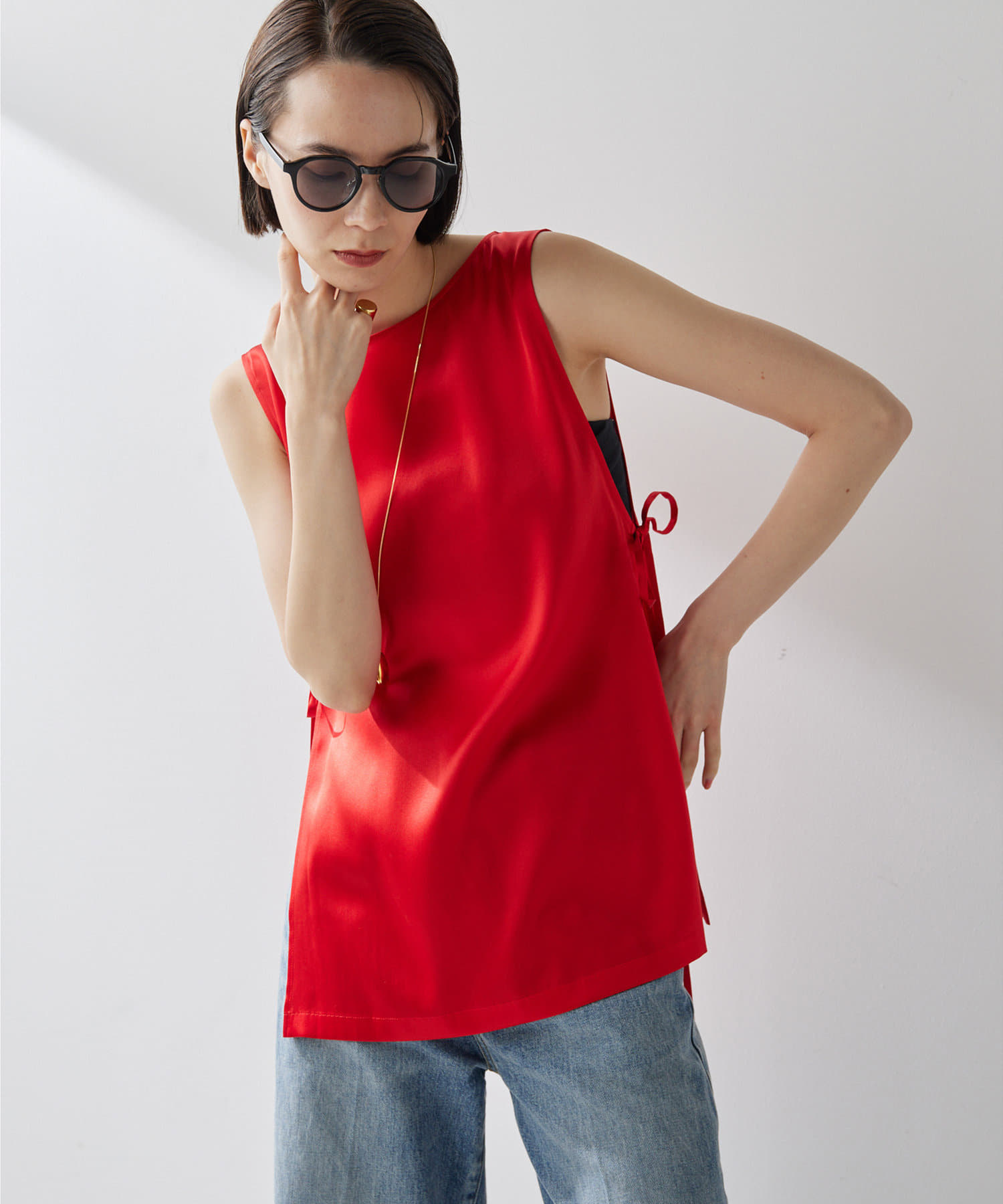 ■シルクサテンを贅沢に使用したノースリーブブラウス。