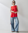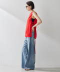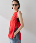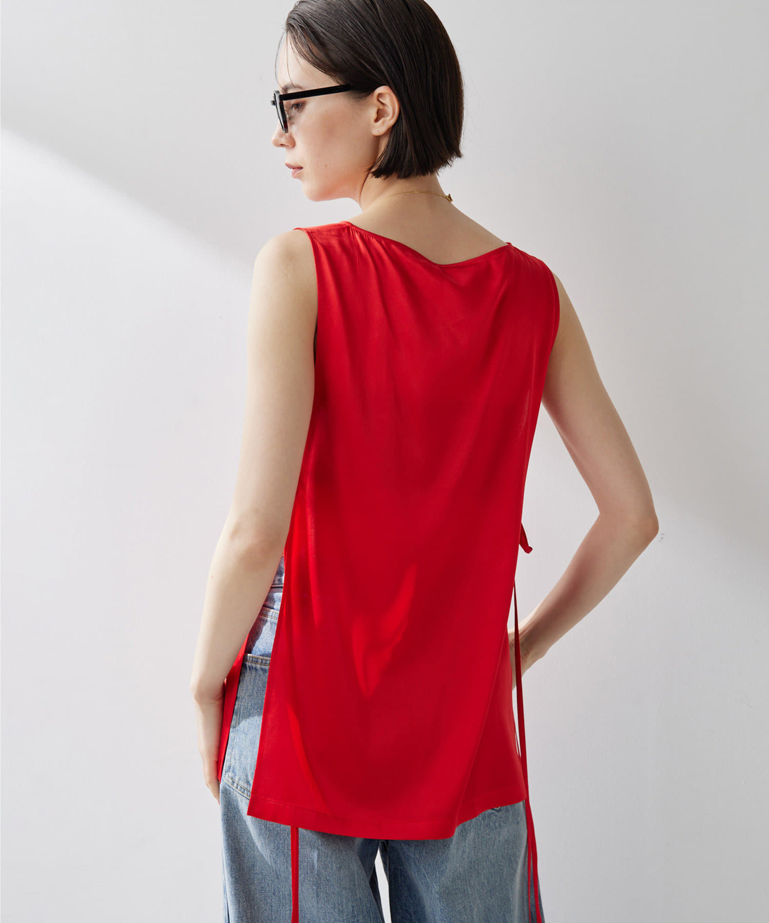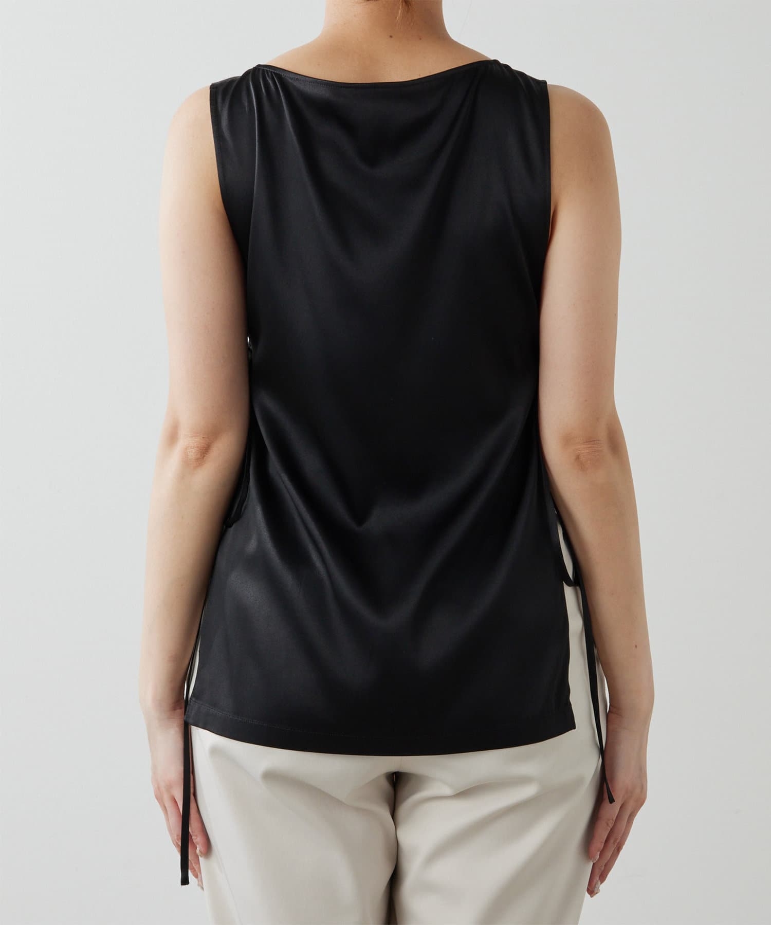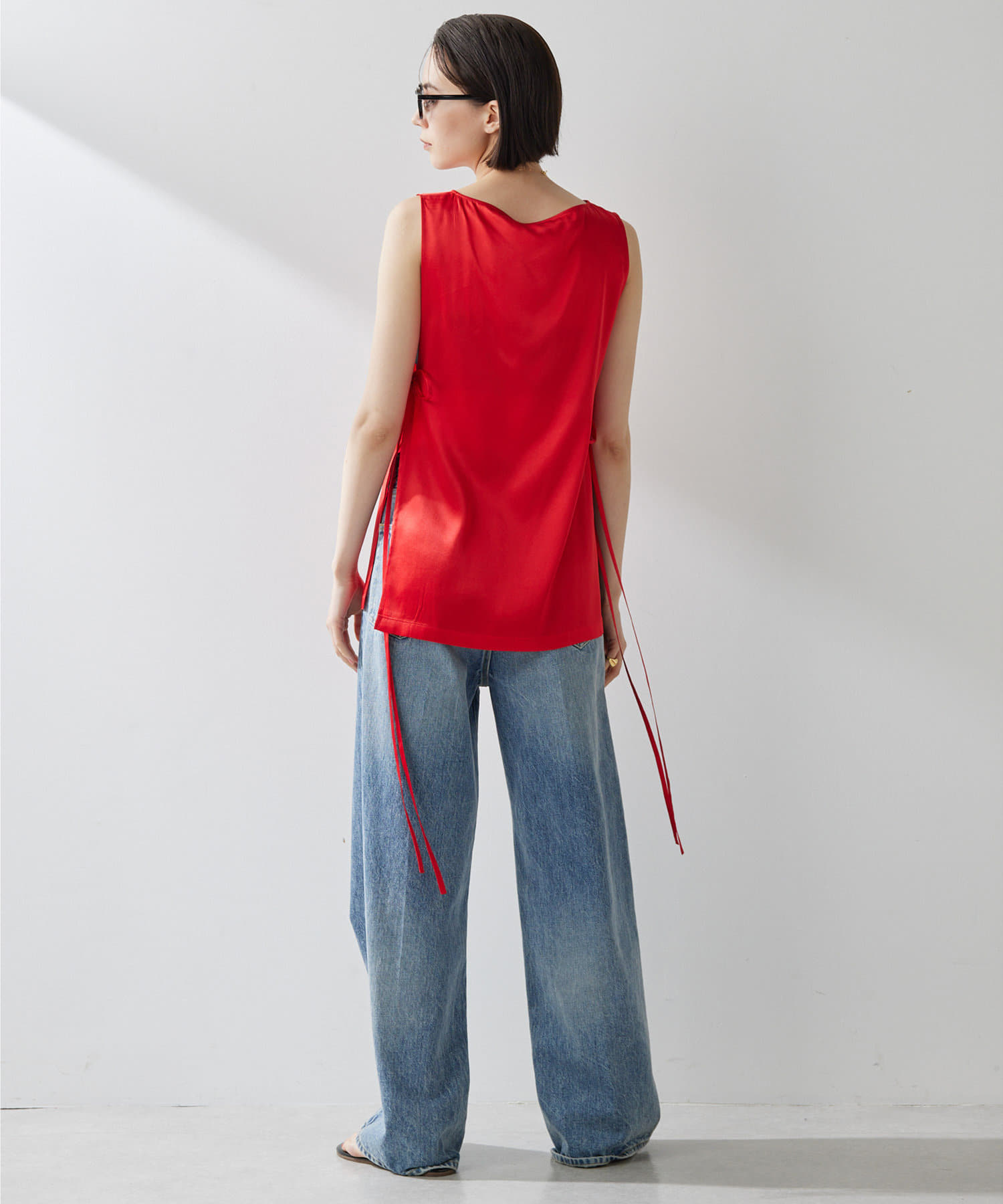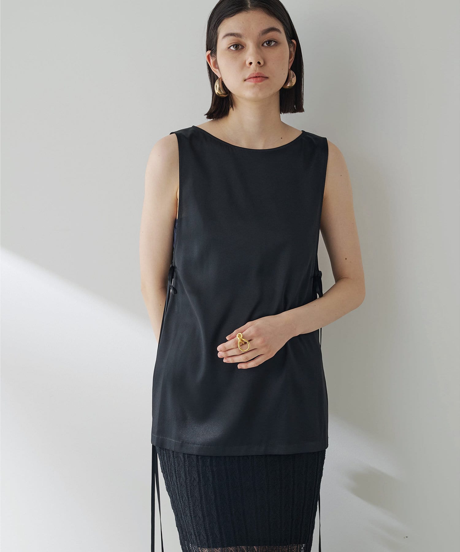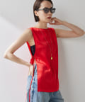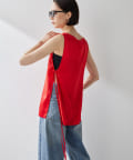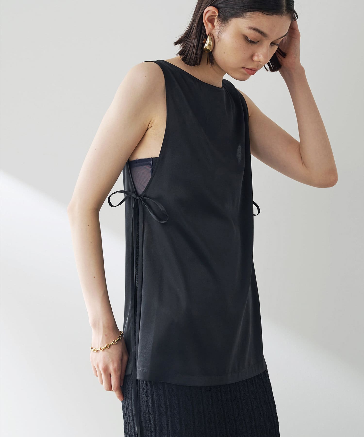 ■シルクサテンを贅沢に使用したノースリーブブラウス。