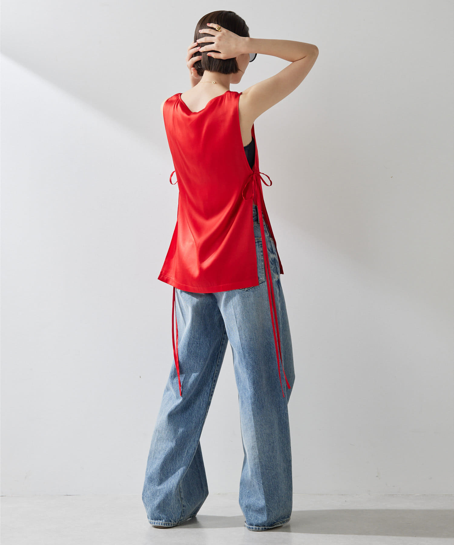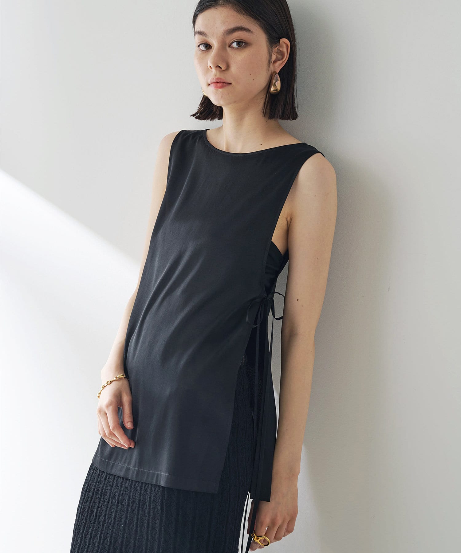 ■サイドに施したリボンが特徴的で、身頃の脇を開けることで程よい抜け感をプラス。