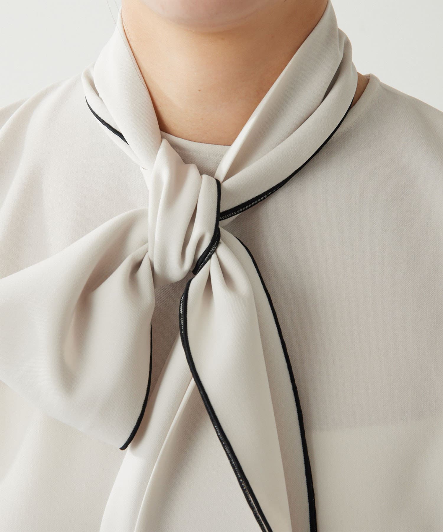 ■ボウタイを後ろで結べばハイネックブラウスとして、取り外せばシンプルなブラウスとしてもアレンジ可能。