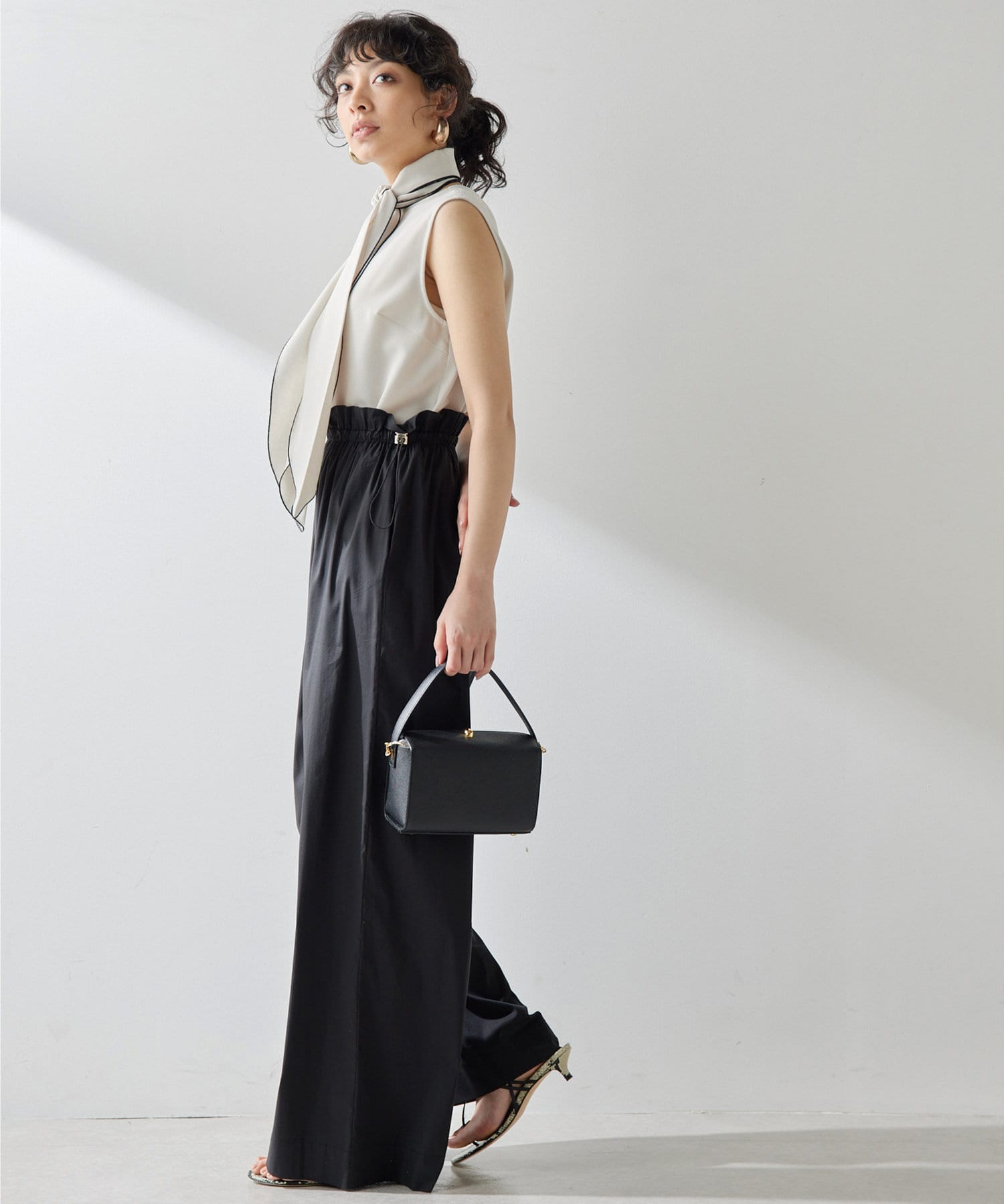 ■すっきりとしたミニマルなシルエットがエレガントな印象を与え、オンオフ兼用で楽しめるアイテム。
