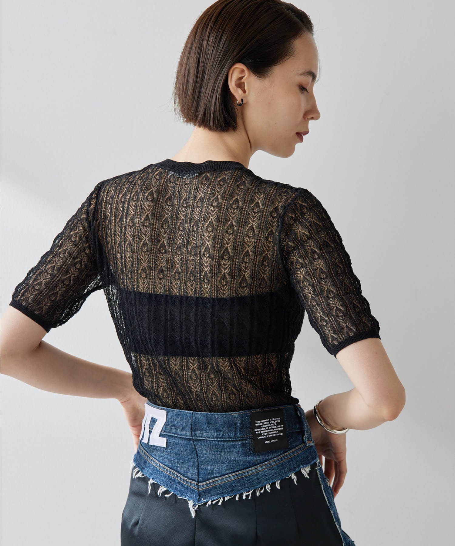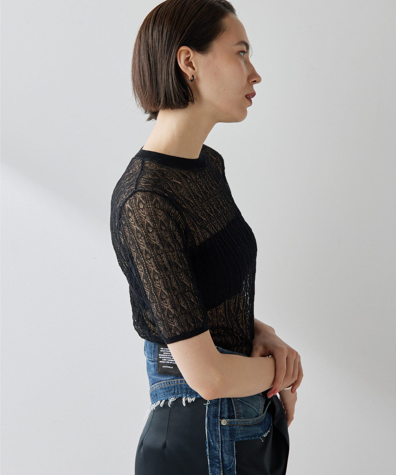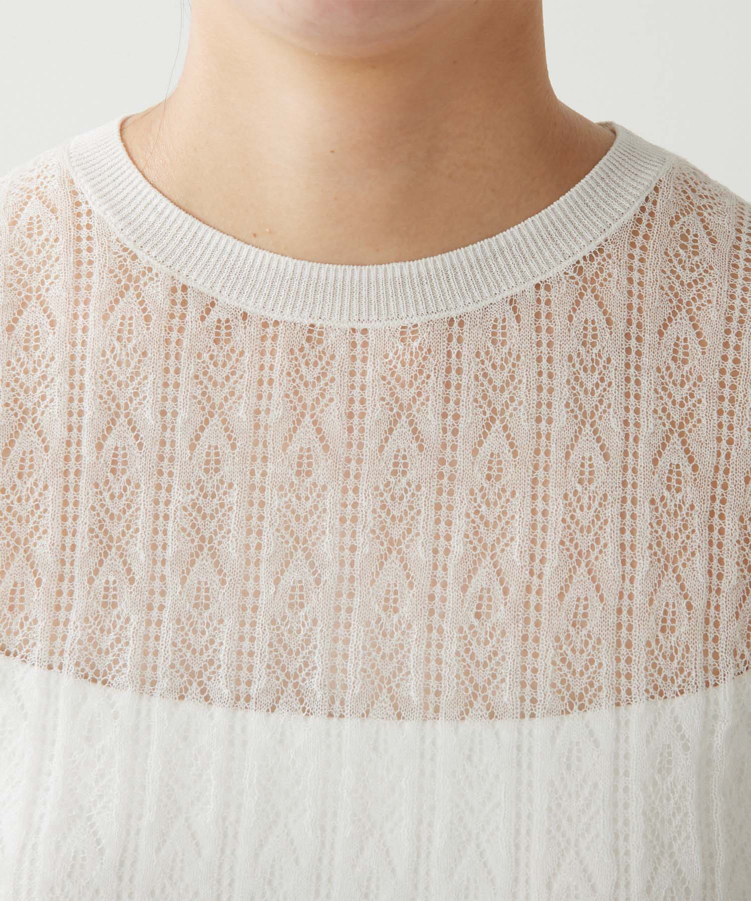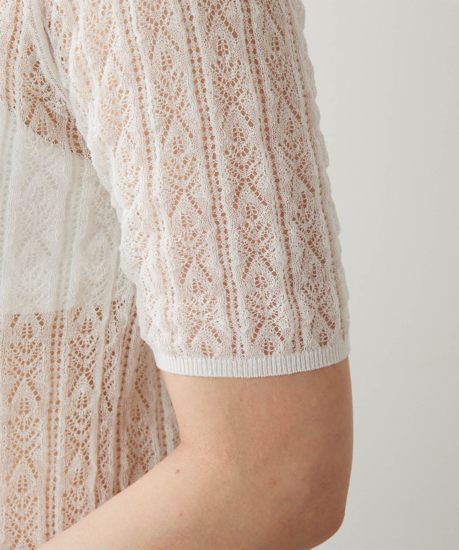 繊細な表情で品良く楽しめる、透かし編みニットTEE