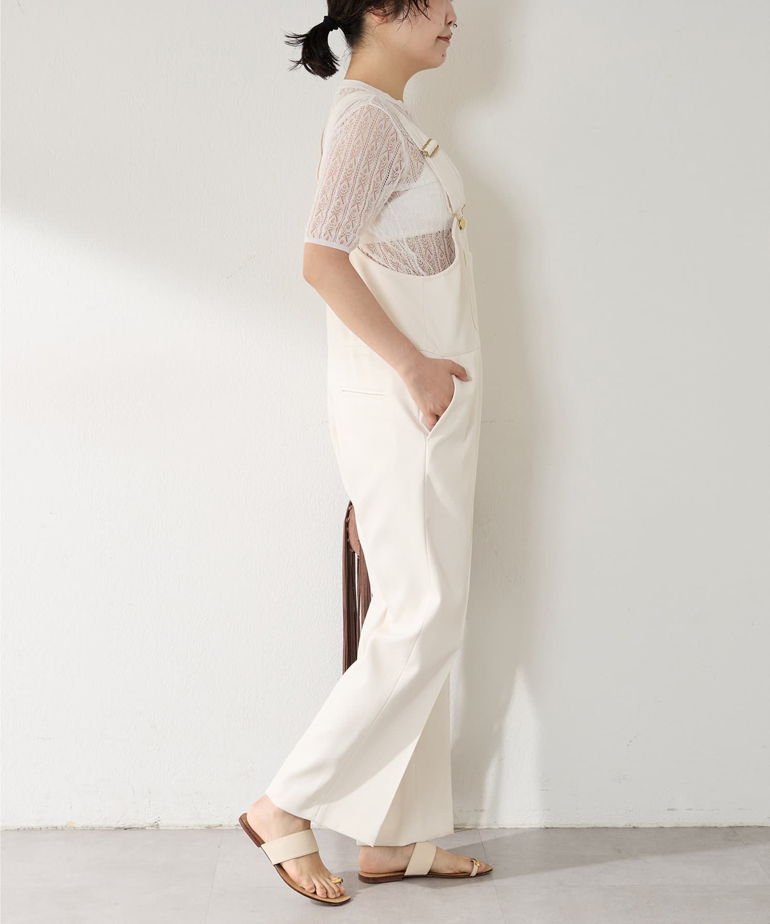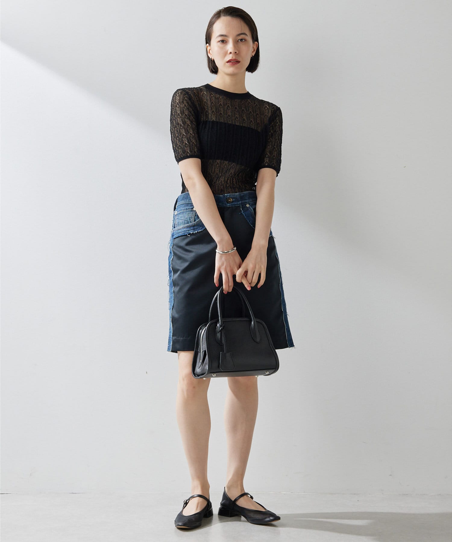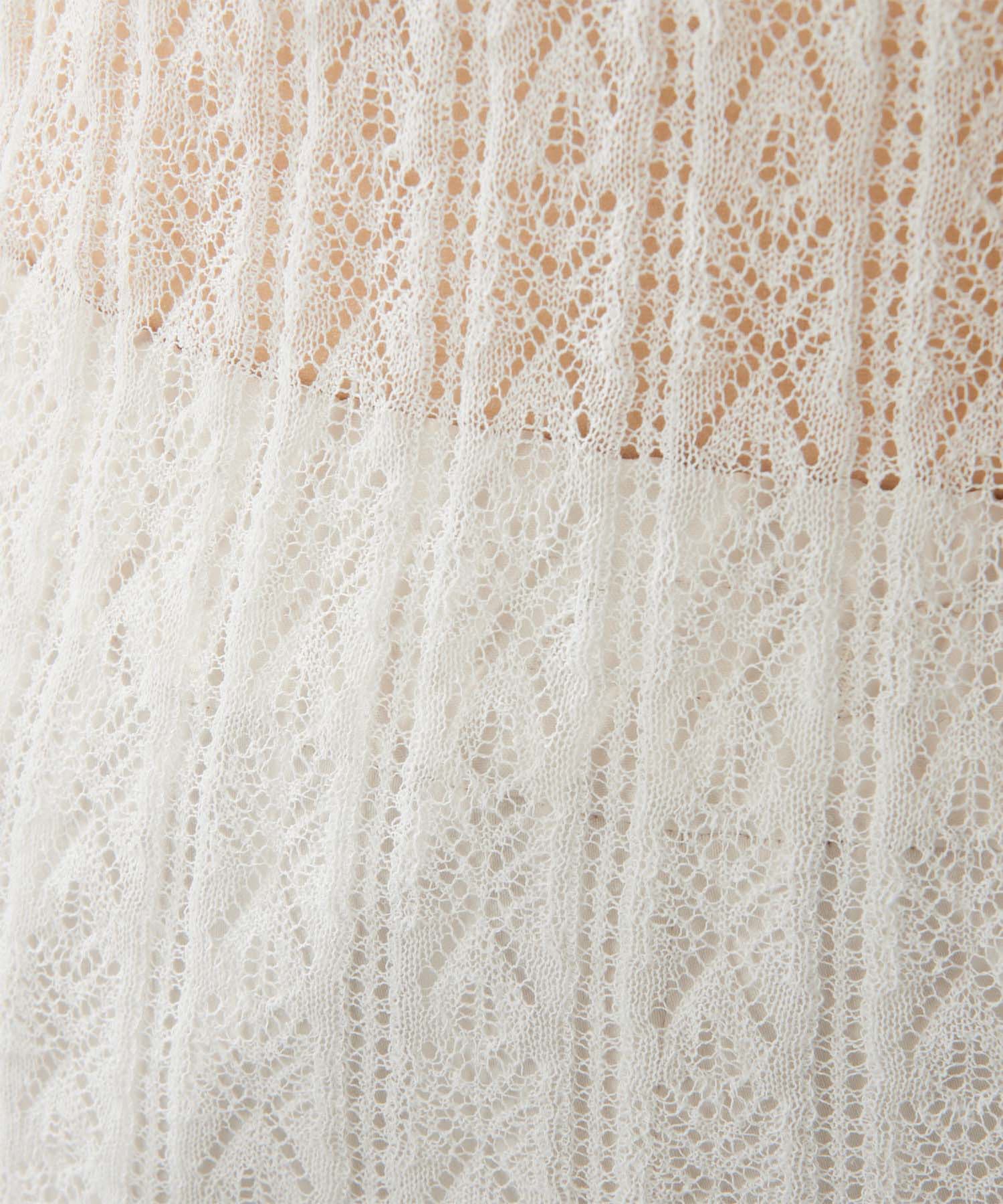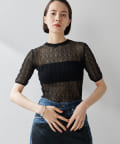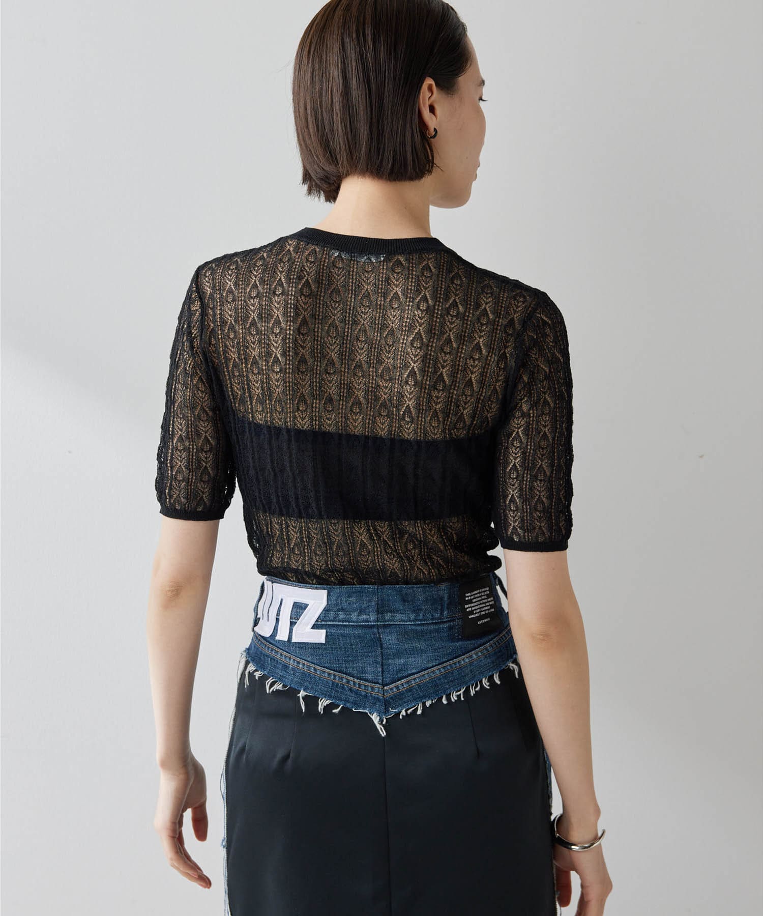 繊細な表情で品良く楽しめる、透かし編みニットTEE