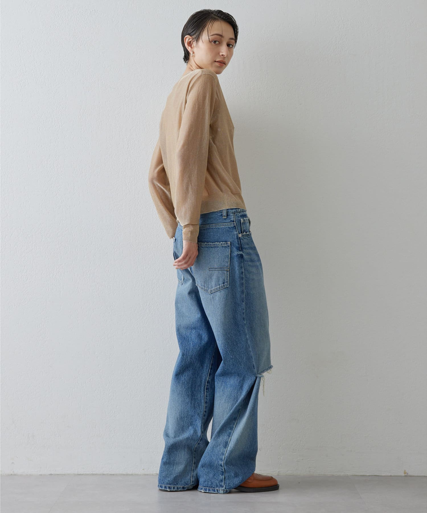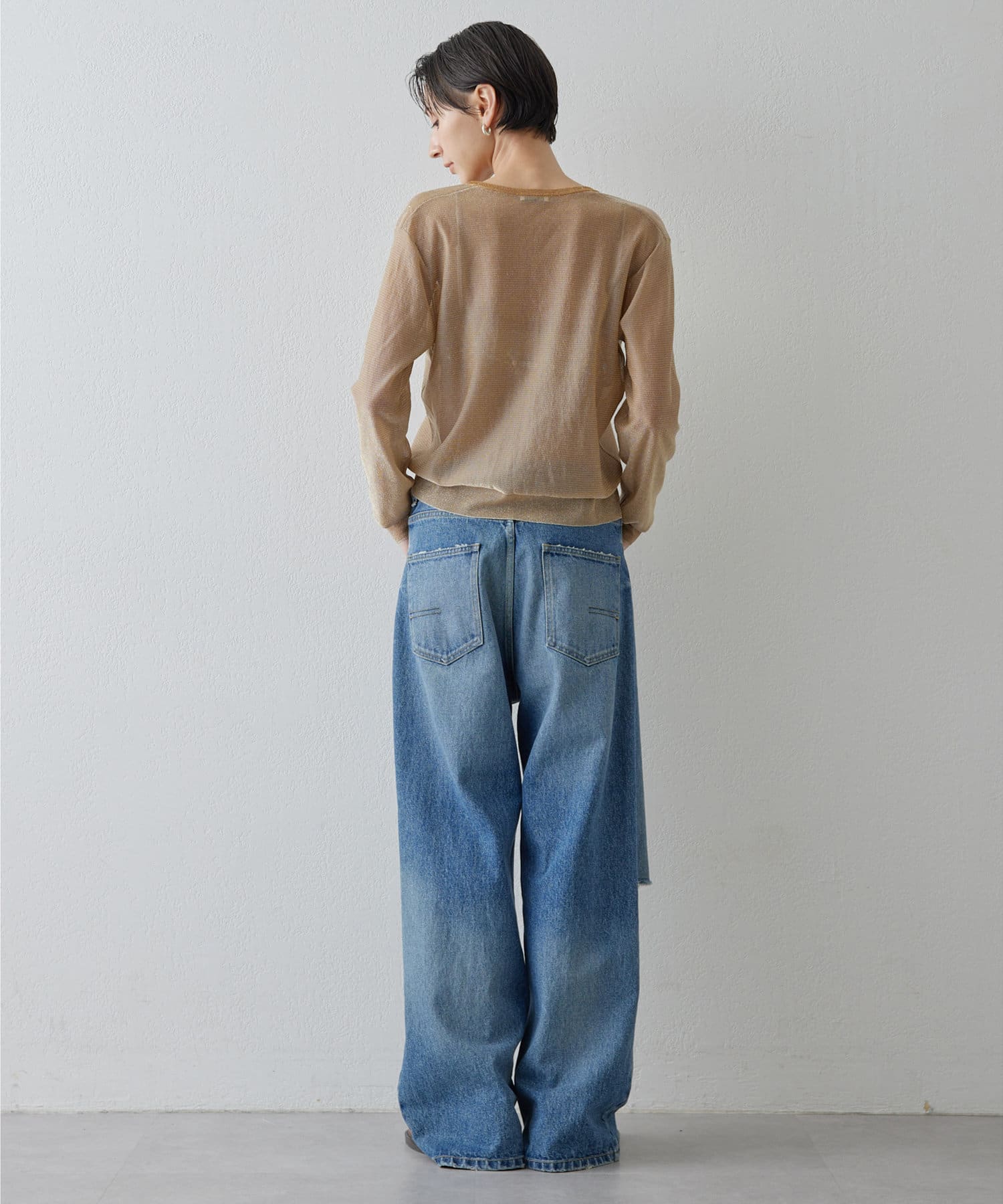 ■透け感のある薄手のニット素材は見た目にも軽く、シーズン問わずに着用可能。