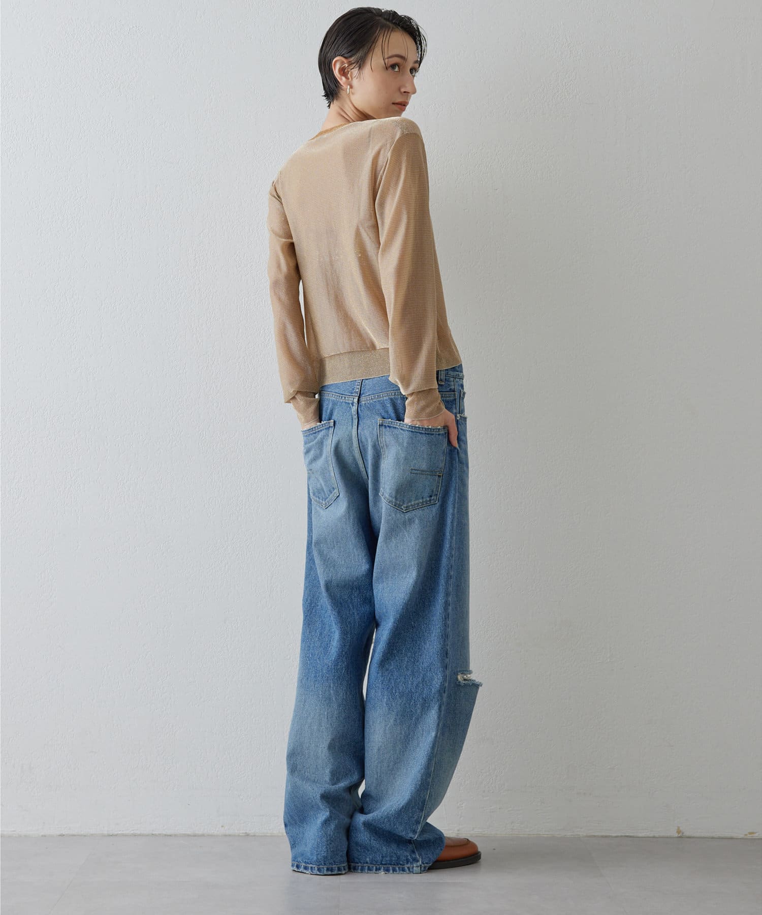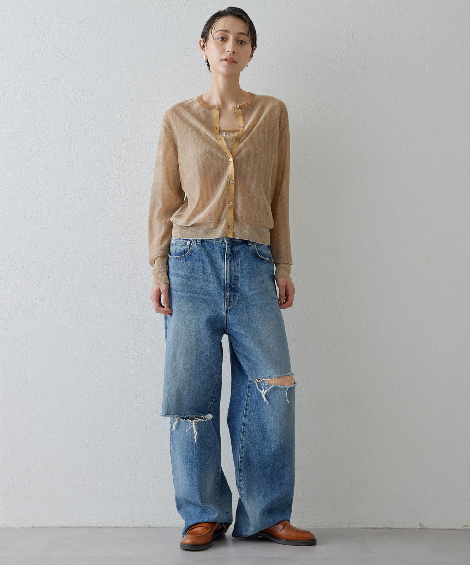 ■繊細なラメの表情が美しいニットカーディガン。