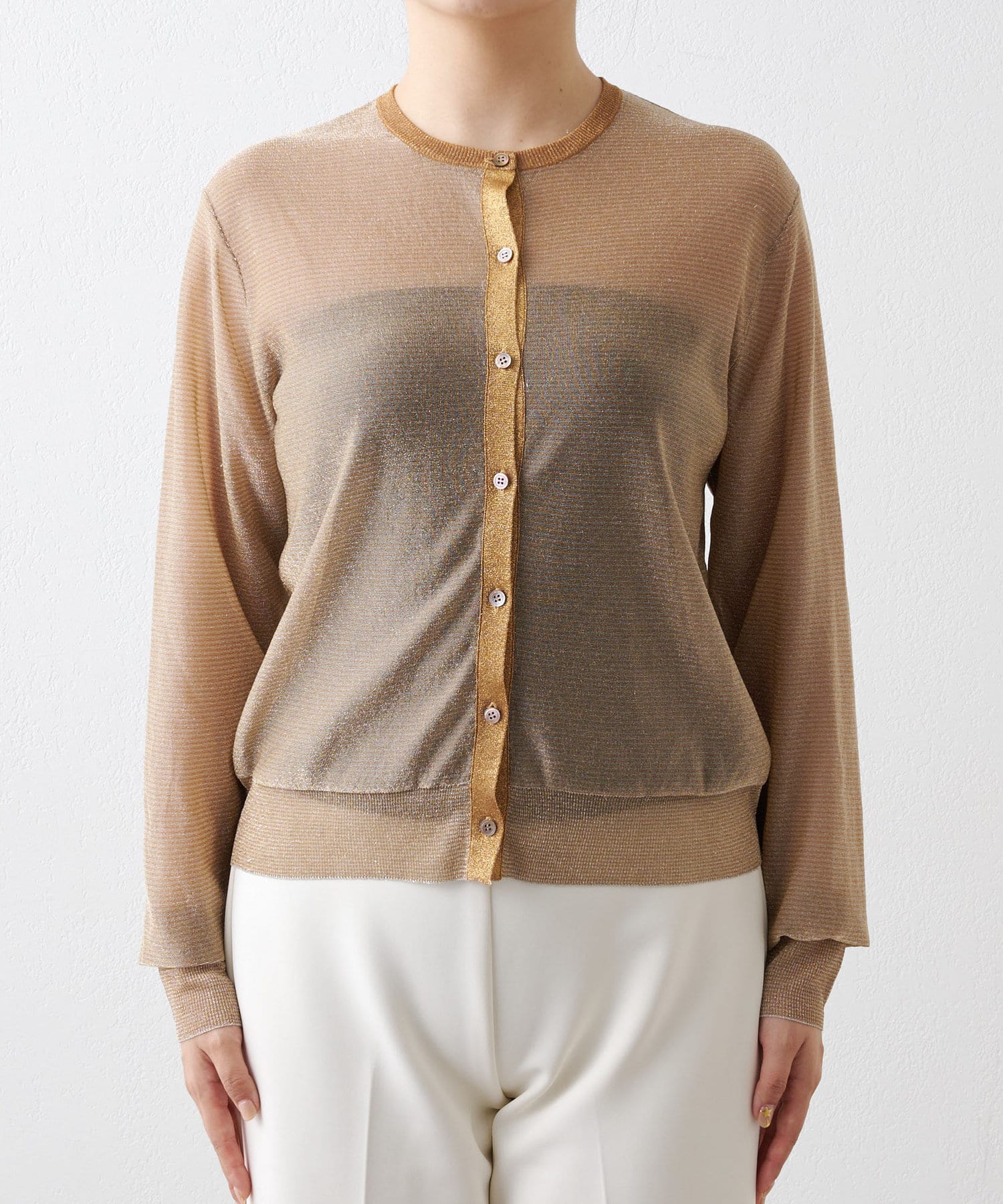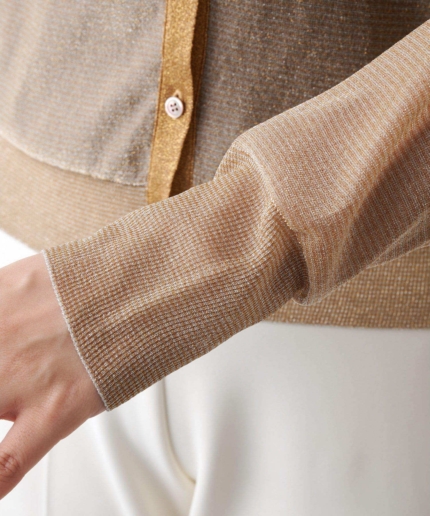 ベージュ:華美すぎず上品に着こなせるゴールドラメ。