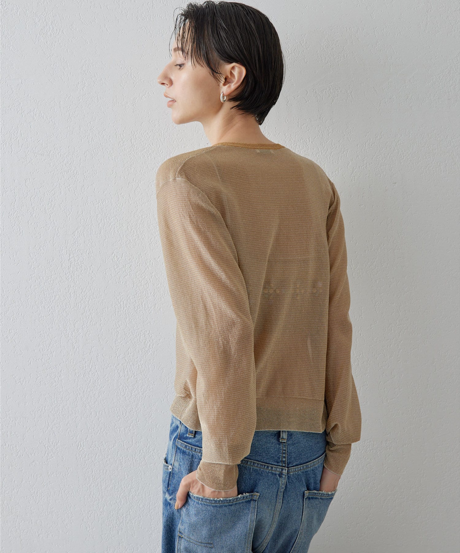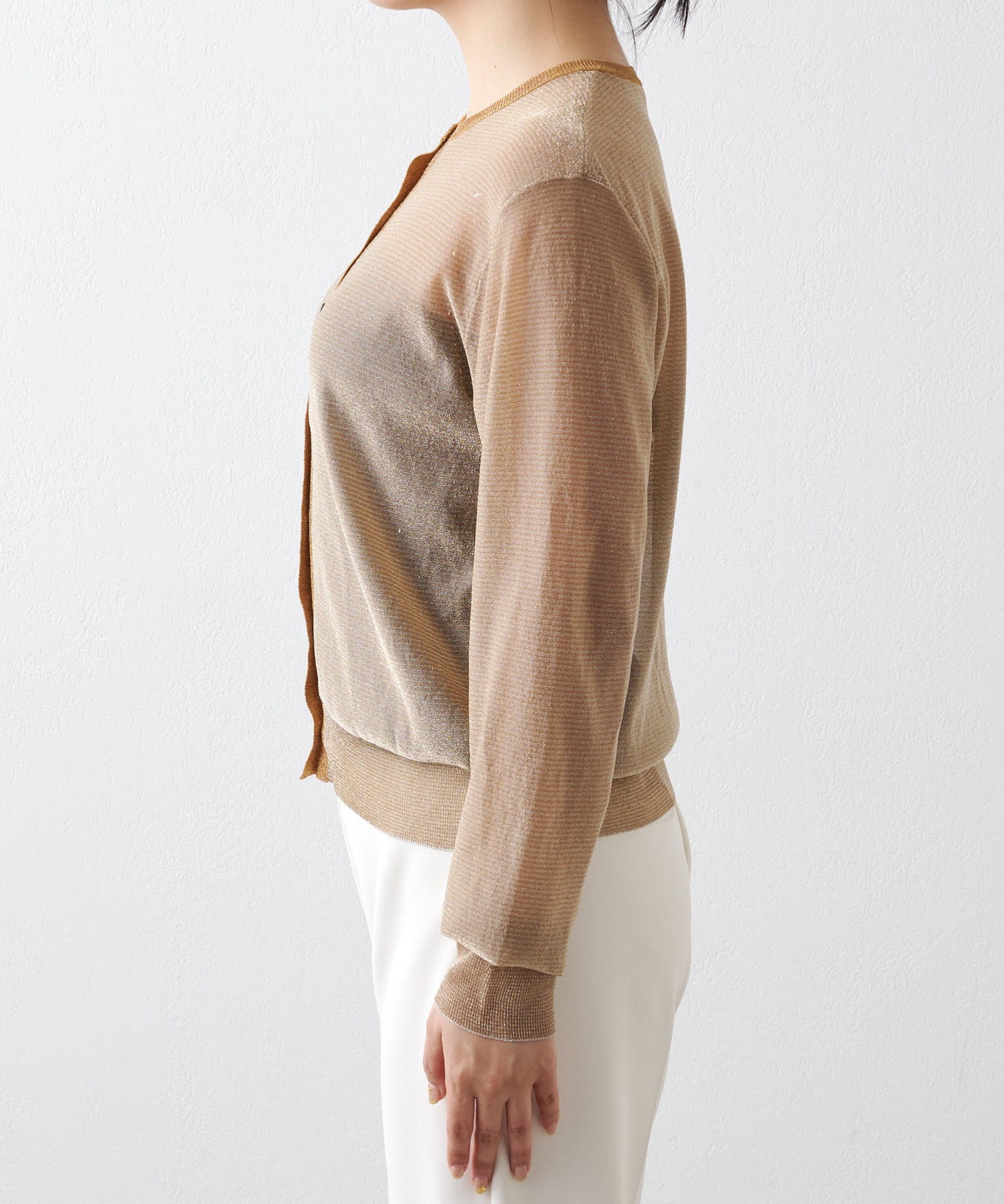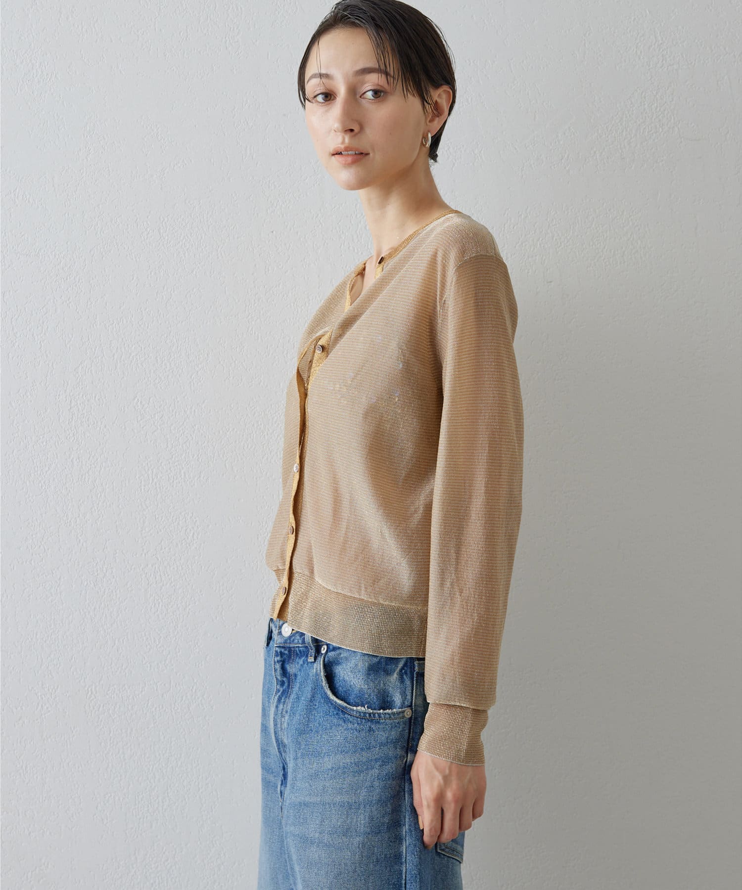 オールシーズン着たい、シアーなラメニットカーディガン