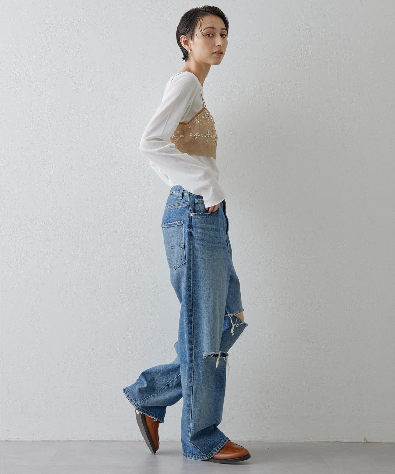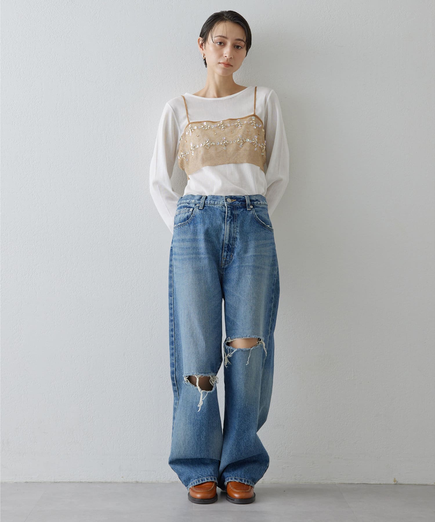 • モデル身長:168cm 着用サイズ:FREE ※こちらの商品は一点づつ手作業でビーズやスパンコールを縫い付けております。そのため着脱時の引っ掛けなどにはご注意ください。