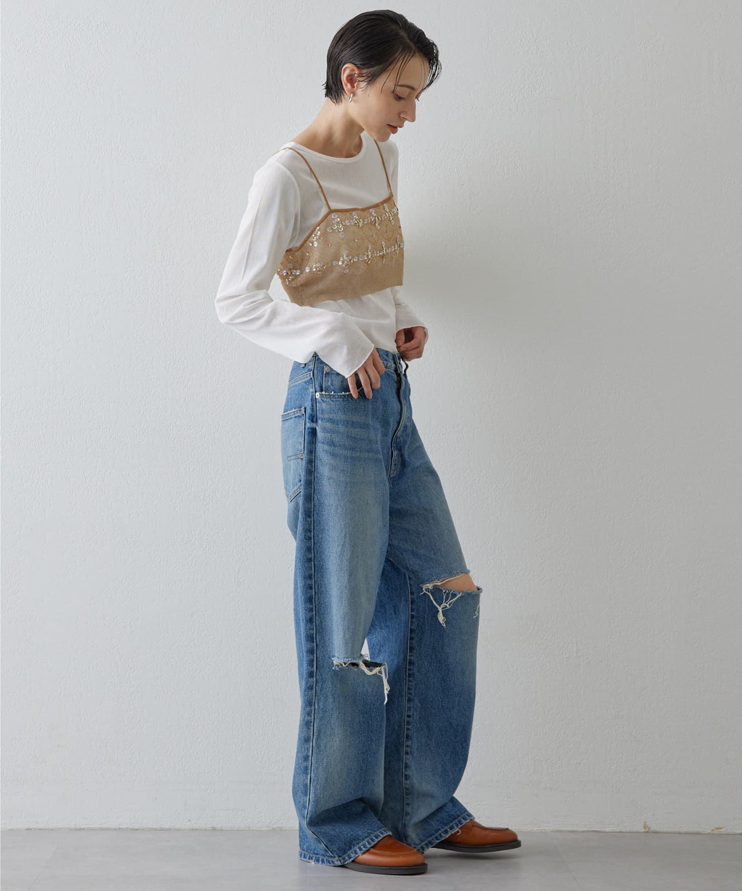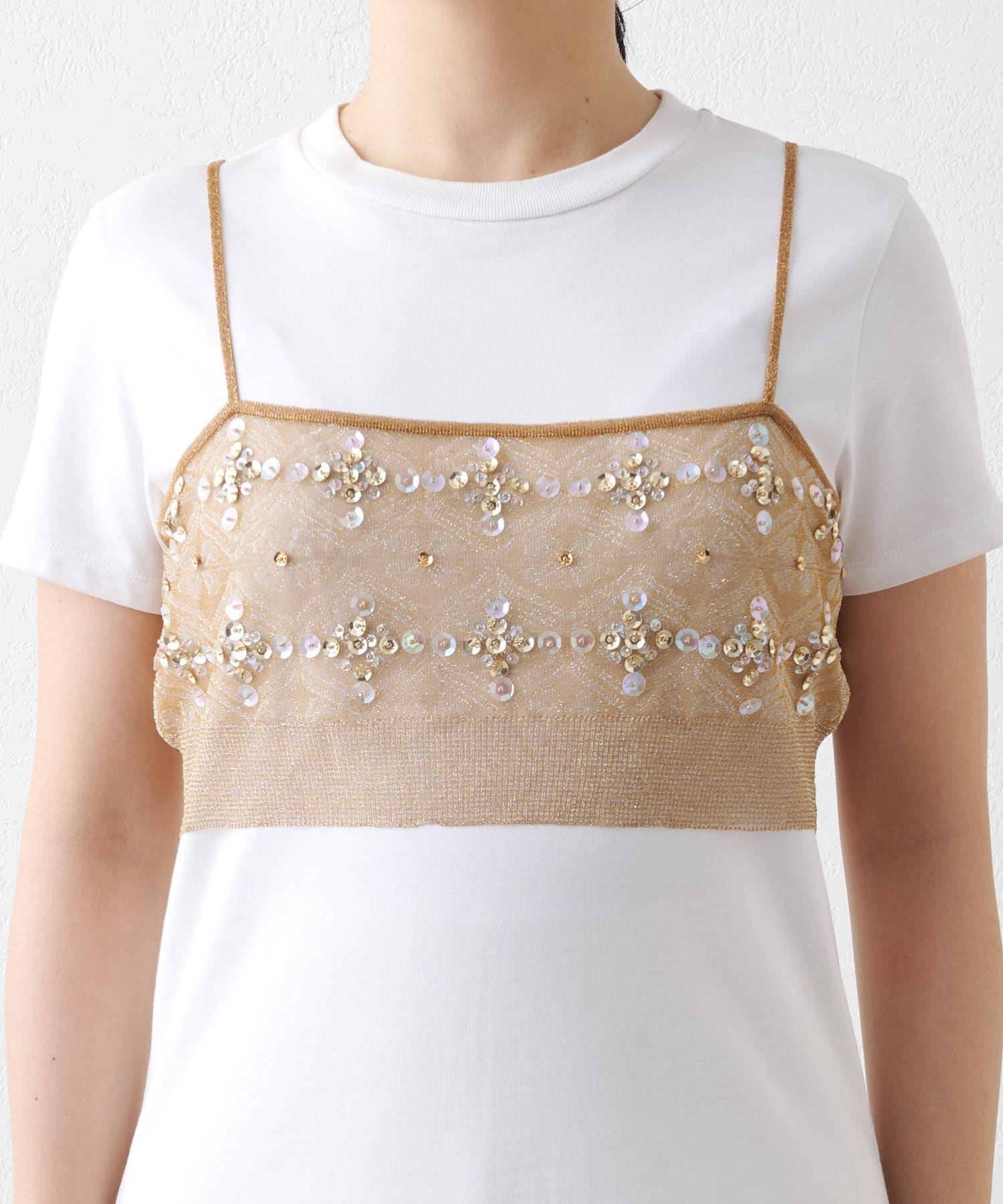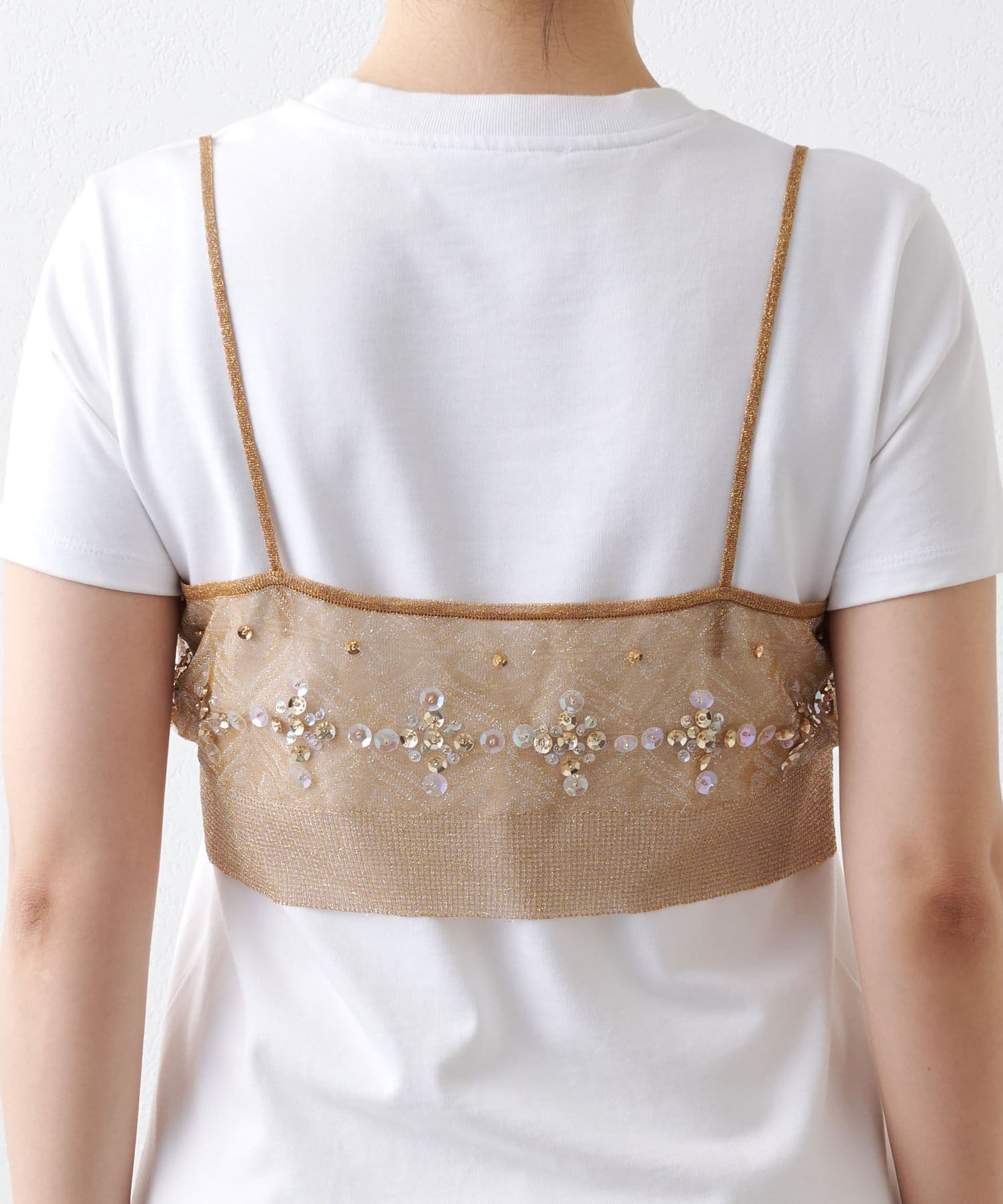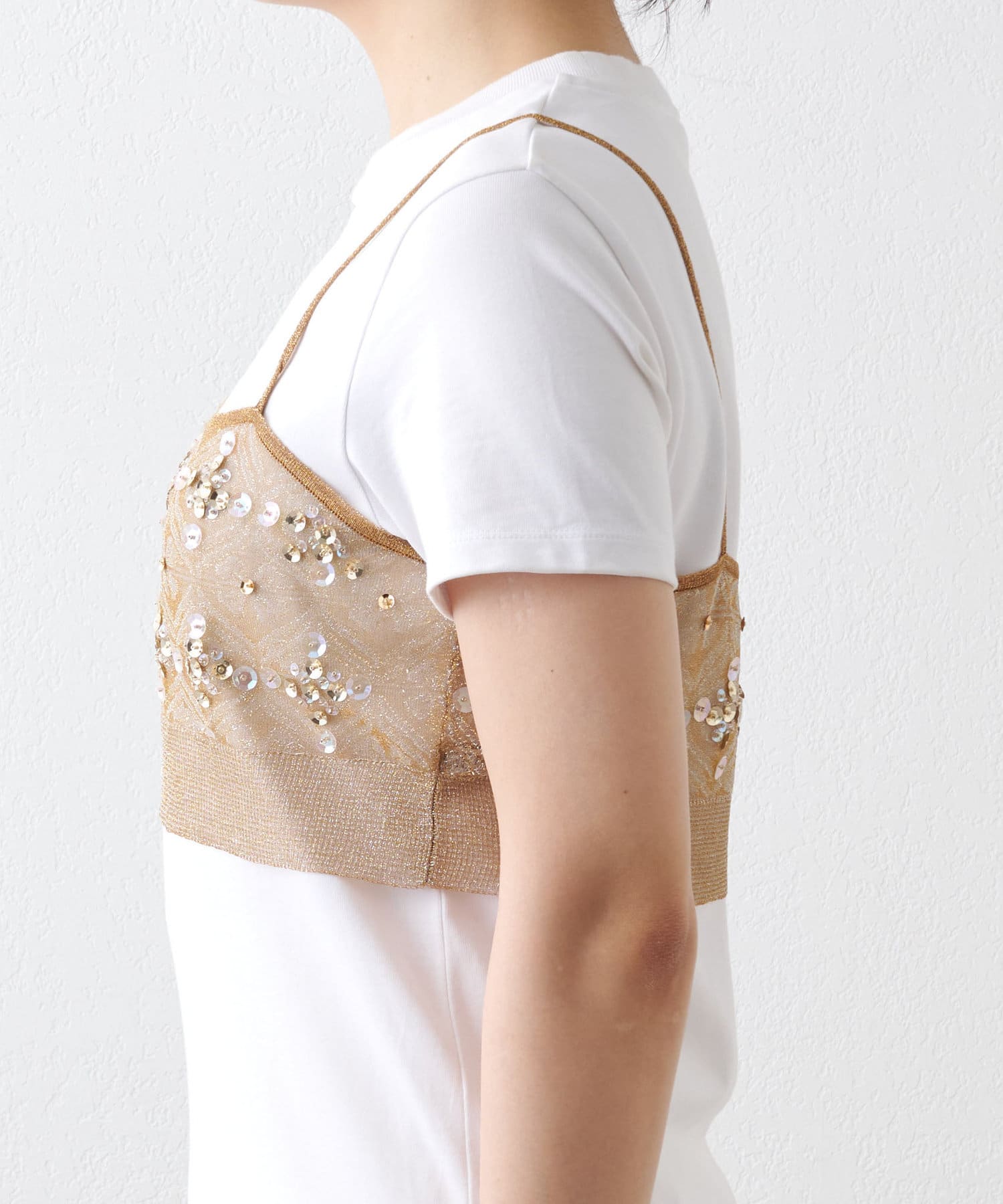 ■繊細なラメの表情とスパンコール使いが美しいニットキャミソール。