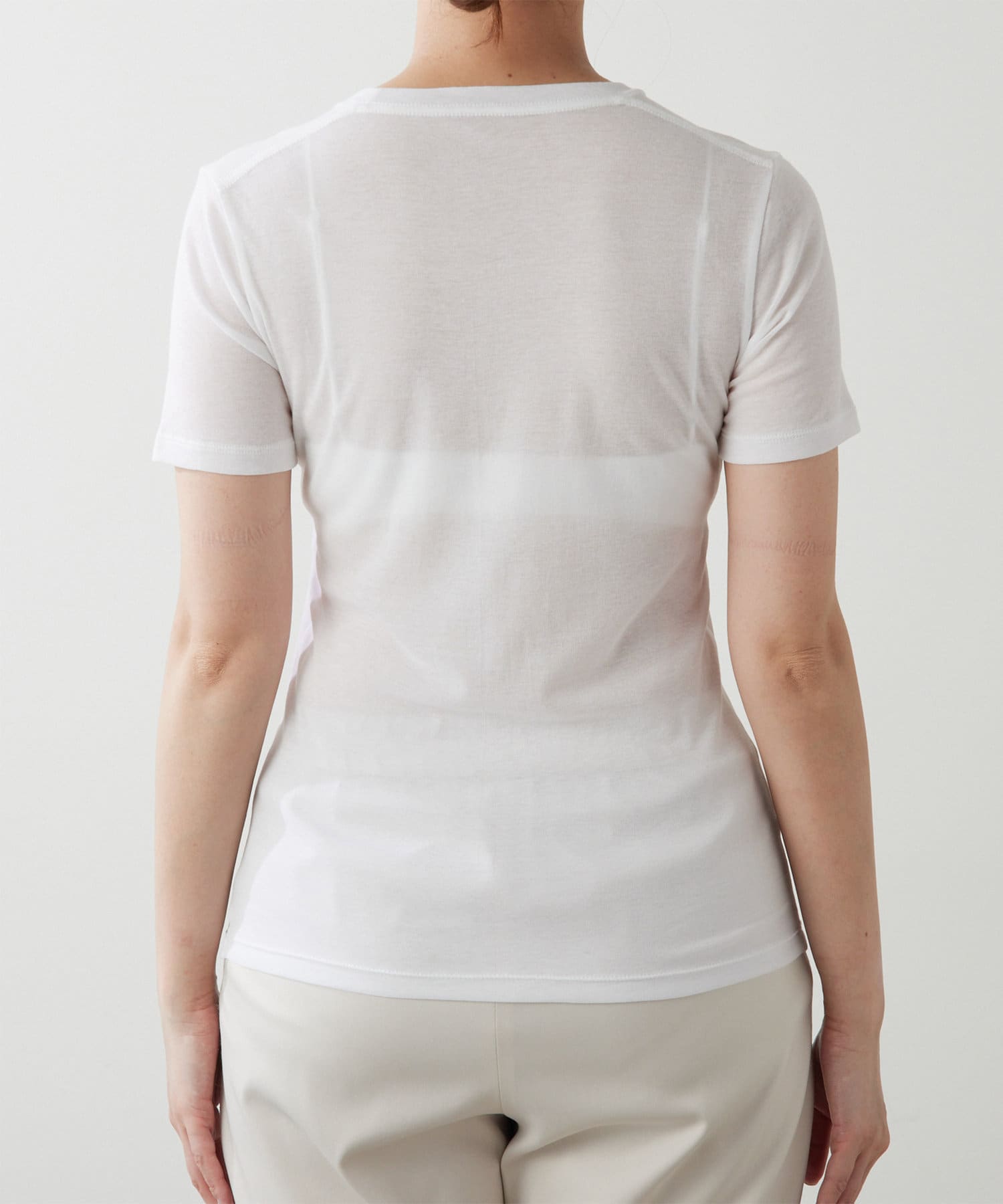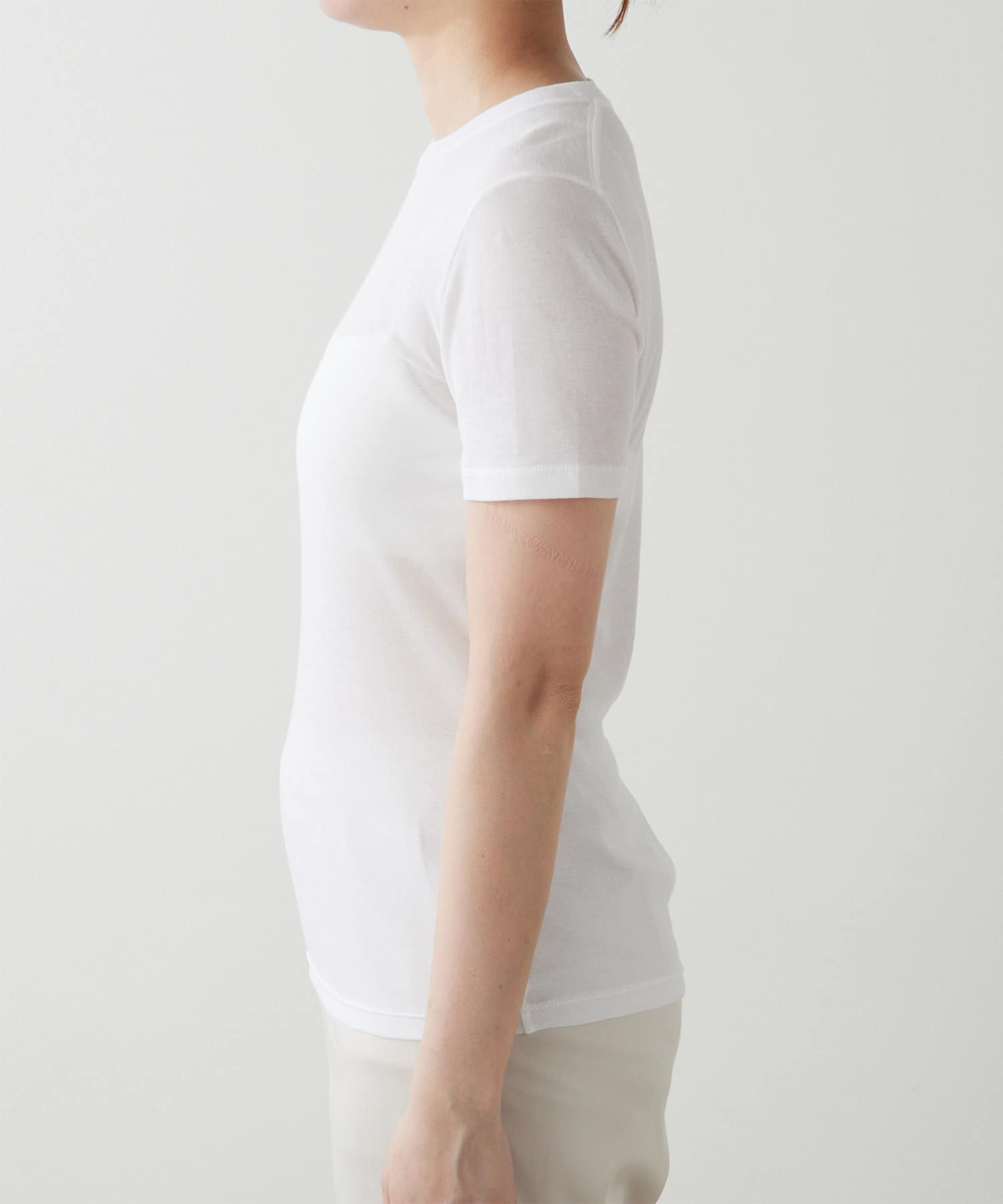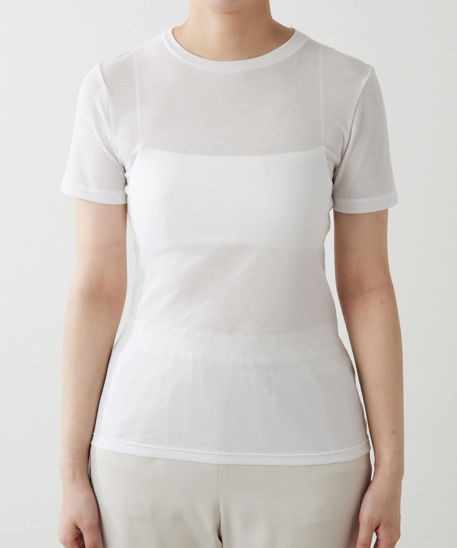 透け過ぎないシアーな感じがインナーでも一枚でも合わせやすいです。フィット感はありますが窮屈感は無くストレスフリーでした。普通のTシャツより透け感があり大人っぽく着こなせます。