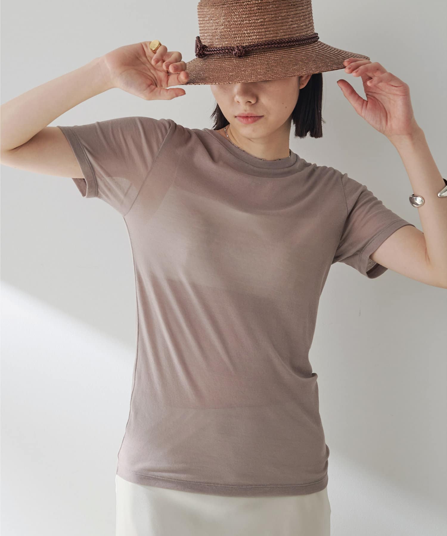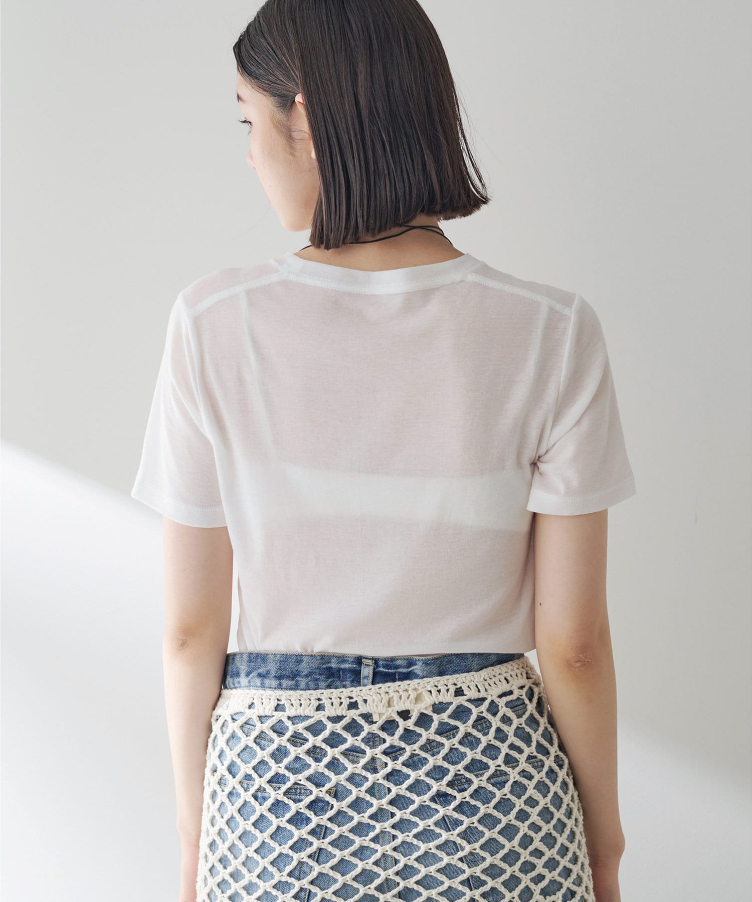 ■トレンド感がありつつも着やすさのある上品な透け感もポイント。