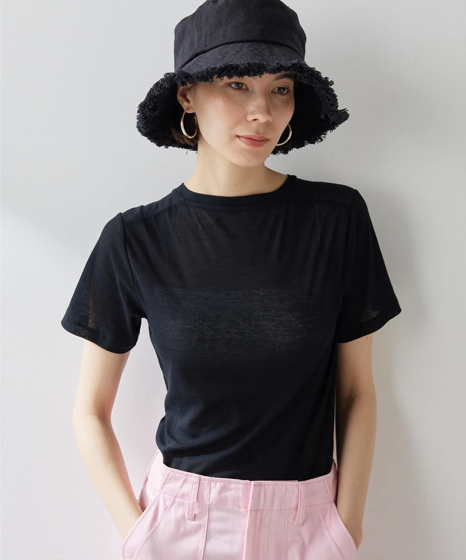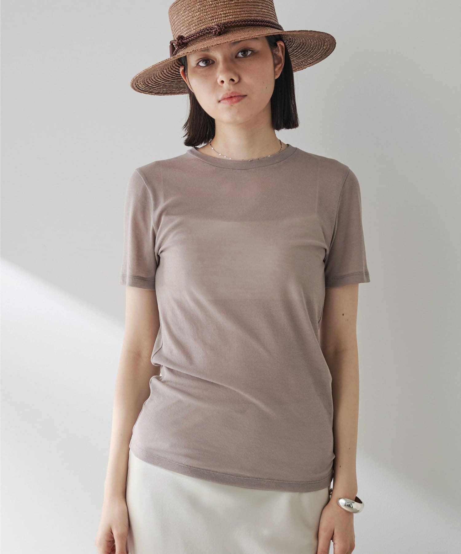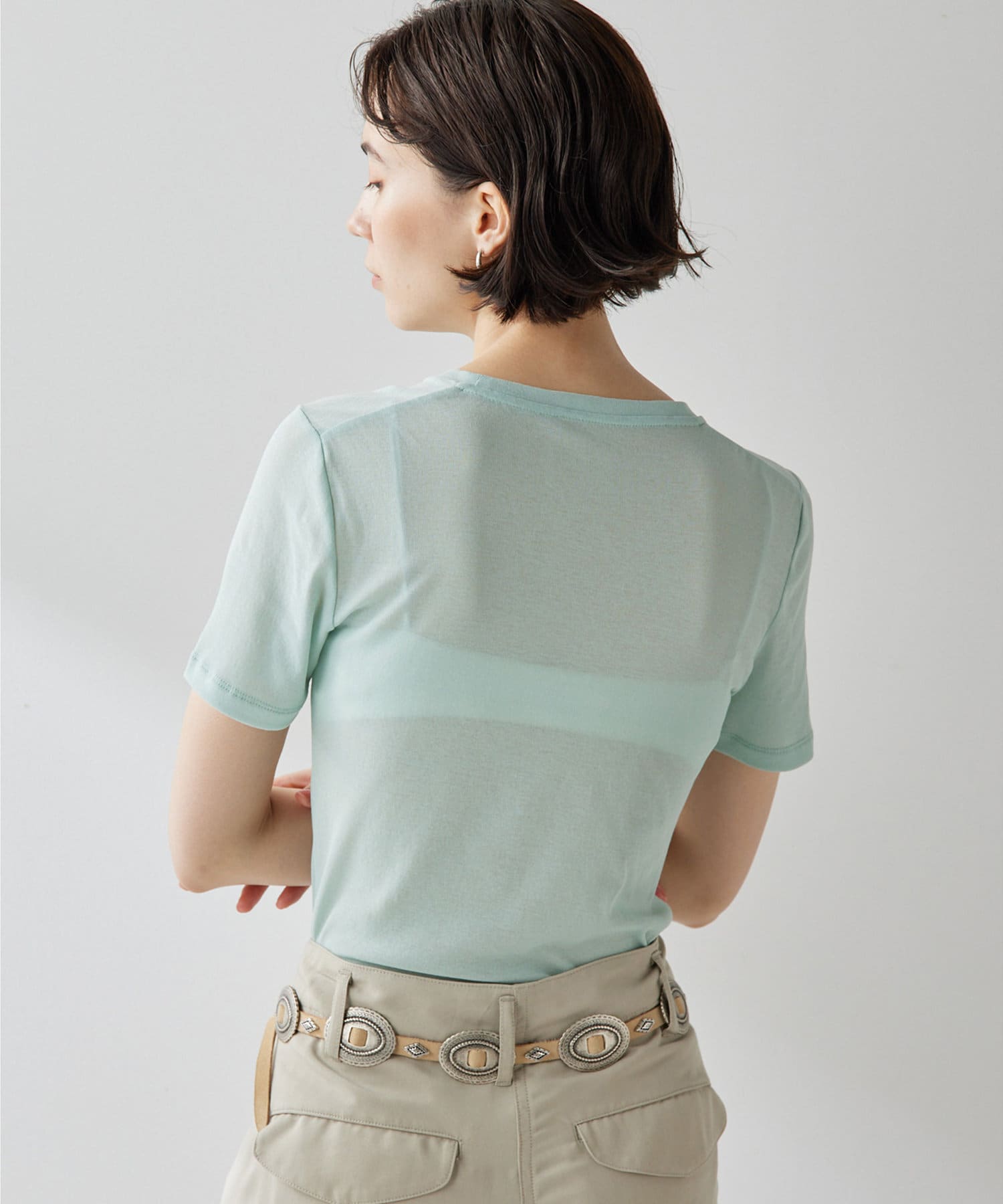 ■ふんわりしたシャリっと優しいタッチが特徴のシアーTシャツ。