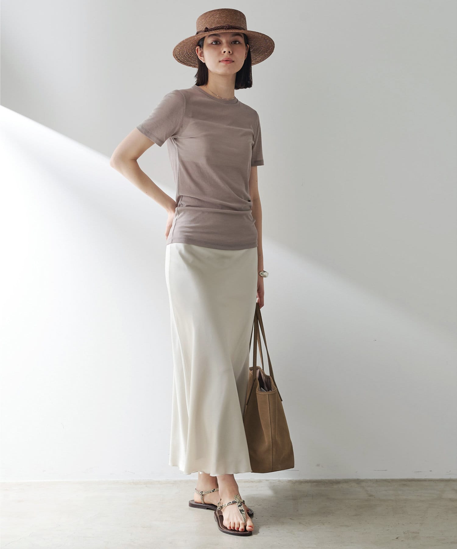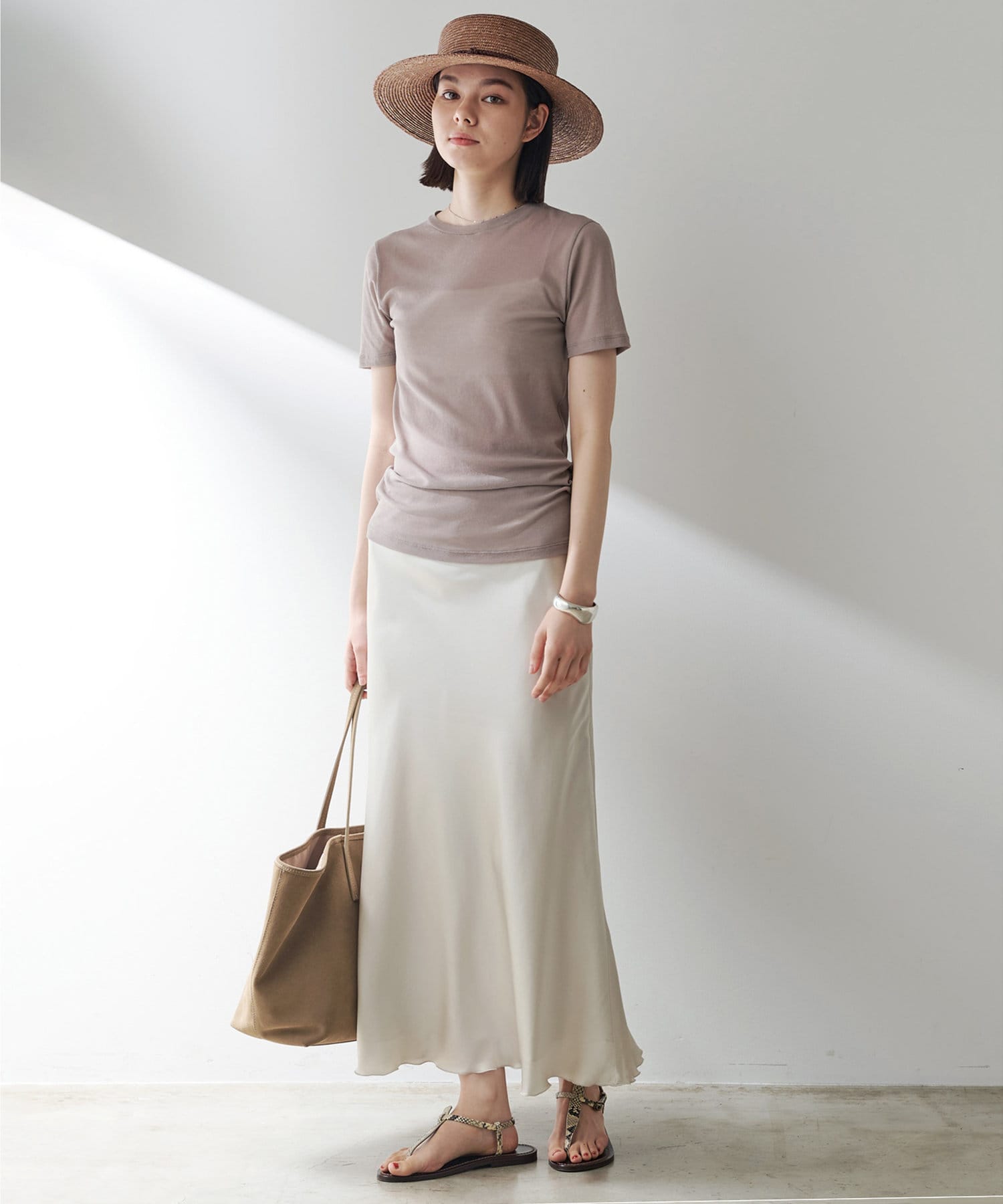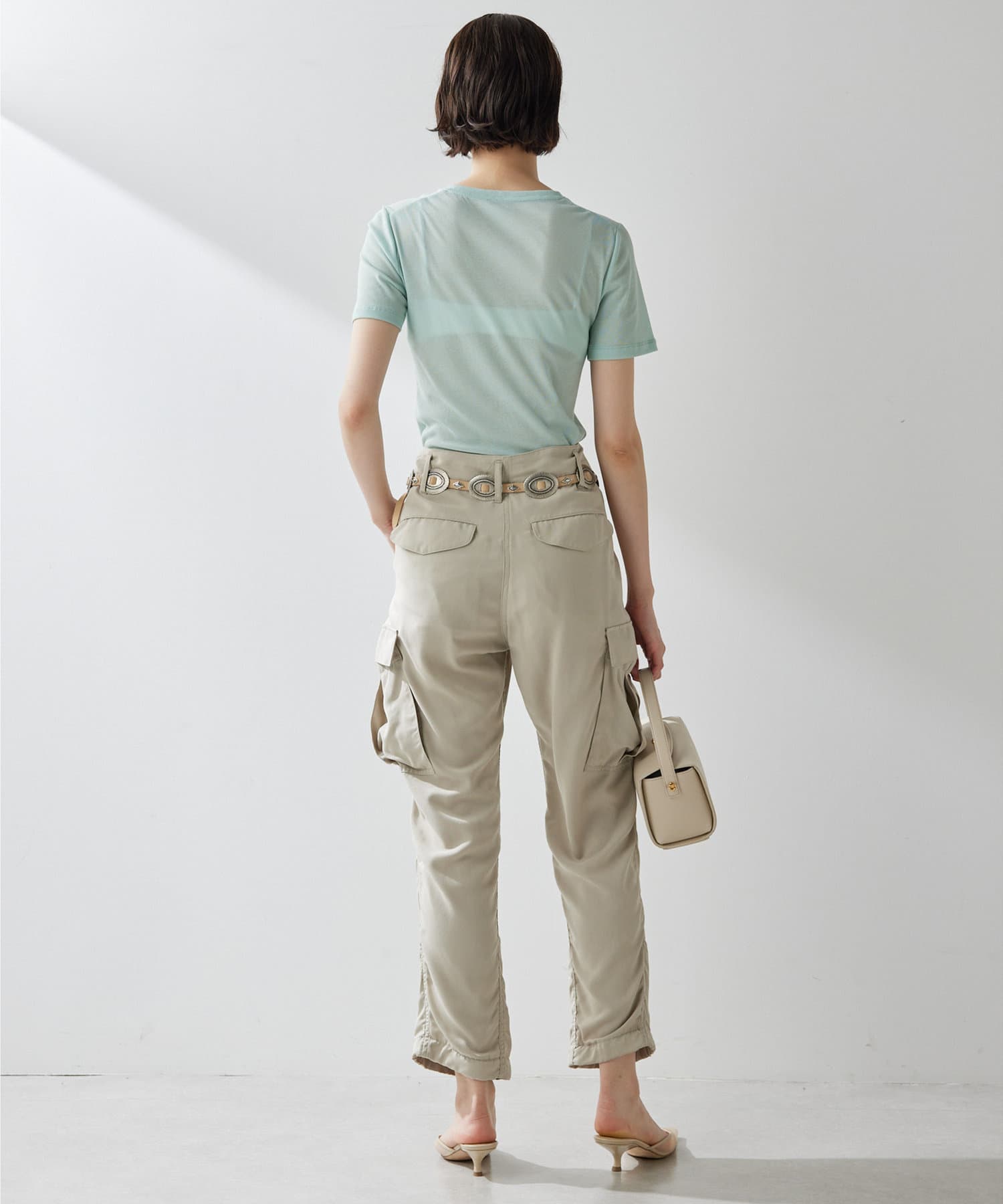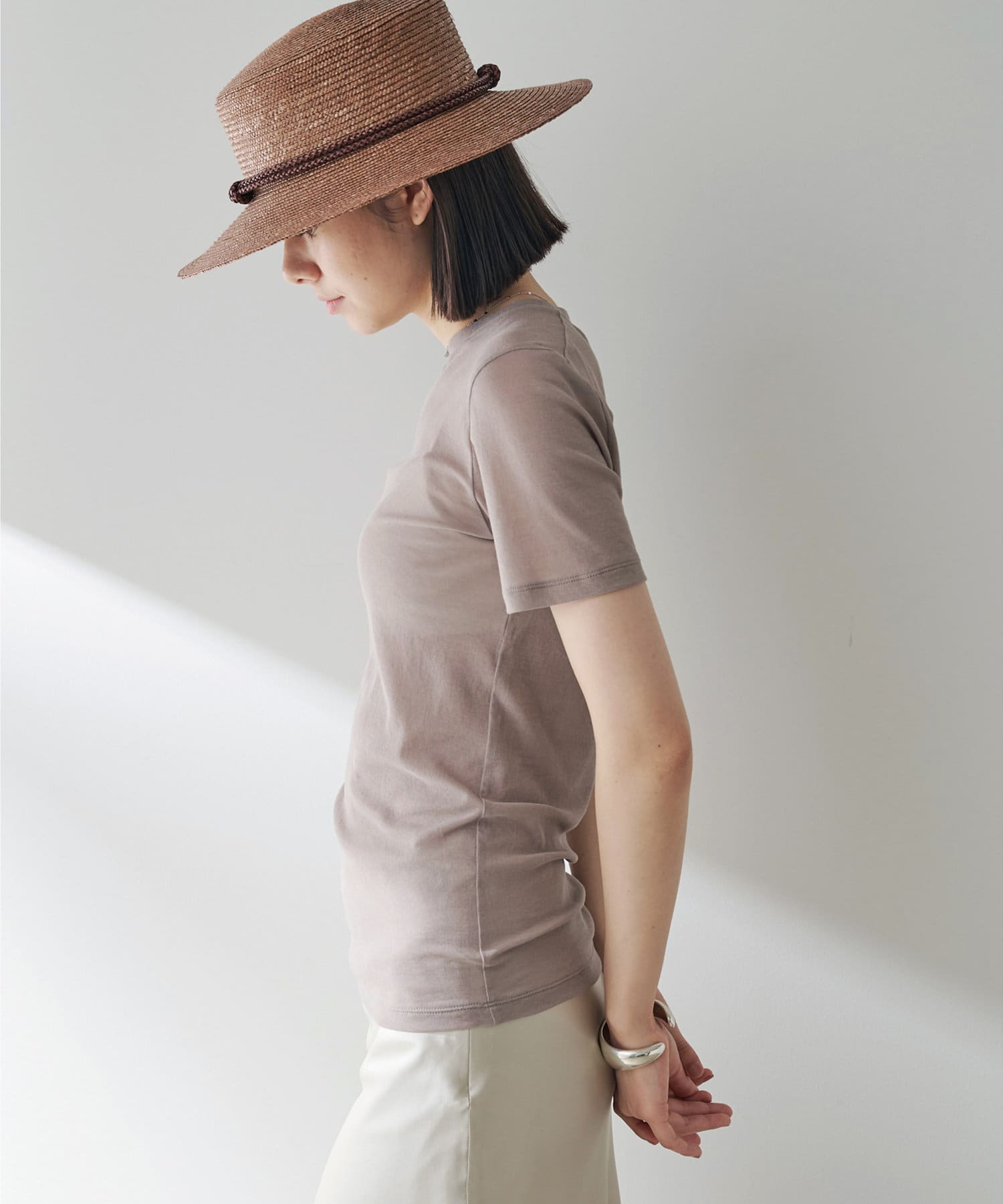 一枚は欲しいシアーTシャツ。コンパクトめですがストレッチ性があり、着心地がとても良いです。シアー感が抜け感を出してくれ、シンプルコーデもオシャレな雰囲気に。