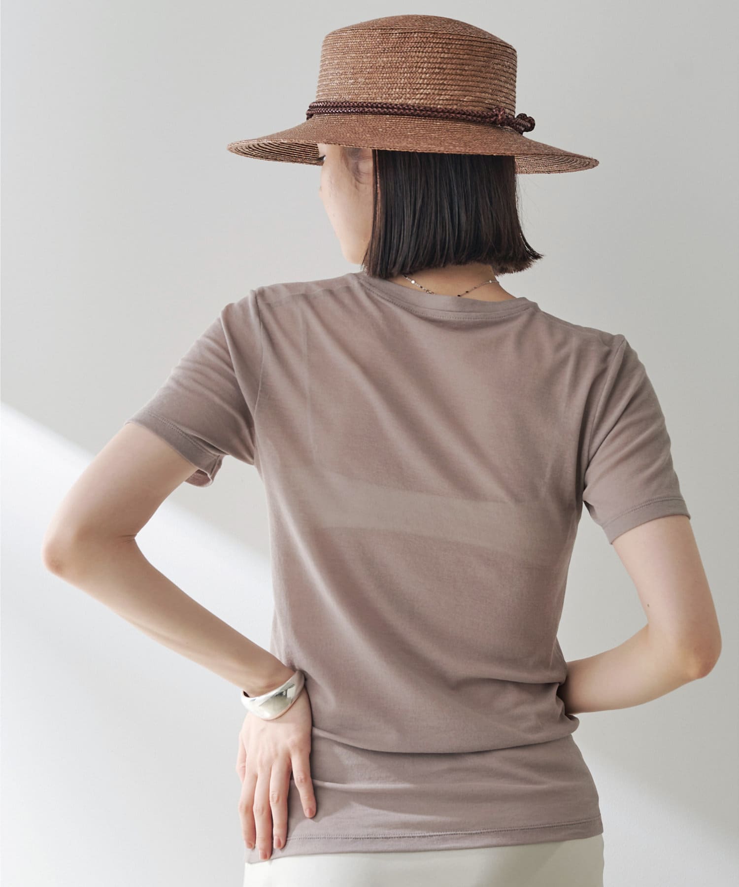 ■シンプルなデザインで着回しやすく、一枚着としてもジャケットなどのインナー使いにも重宝するアイテム。