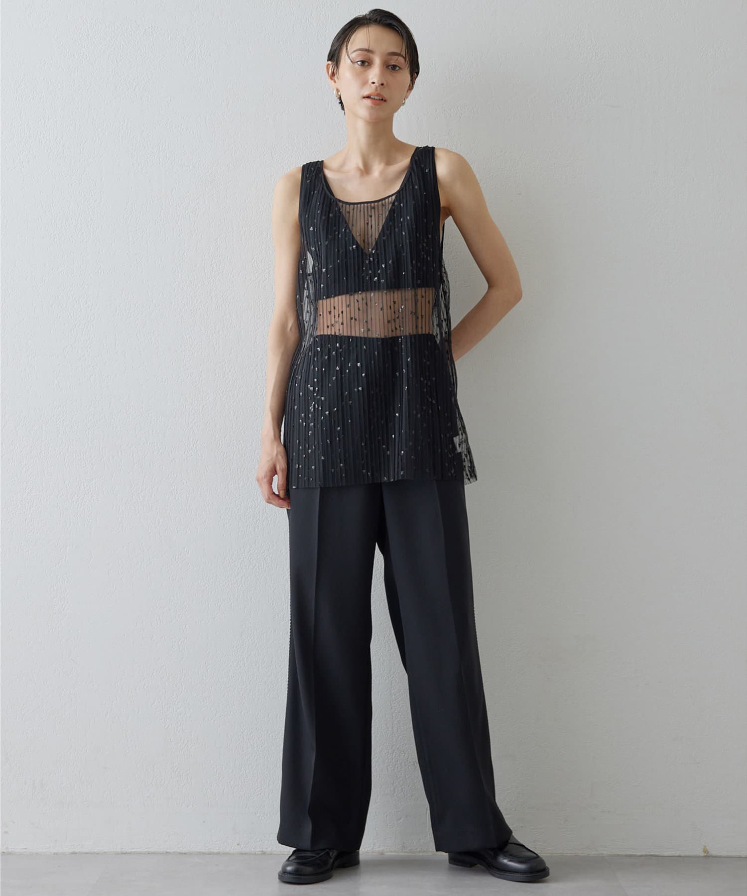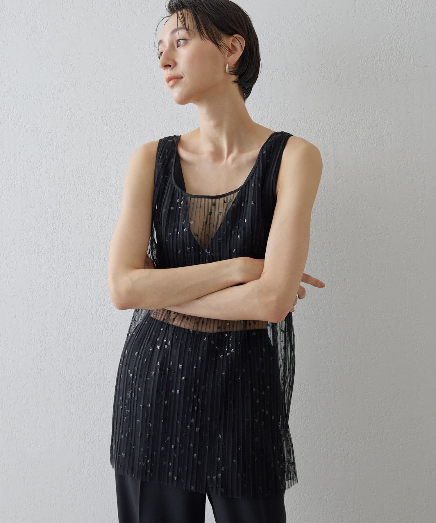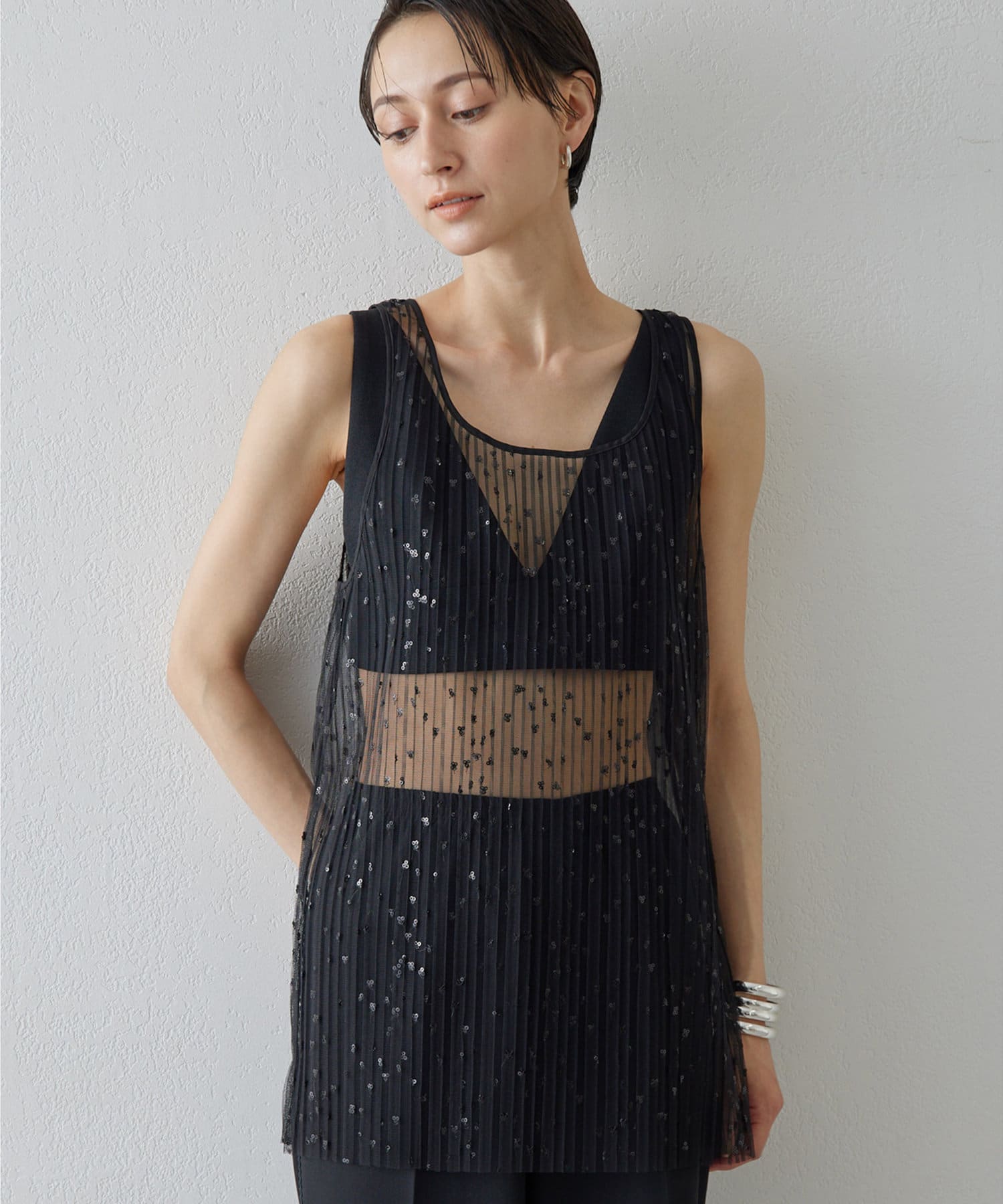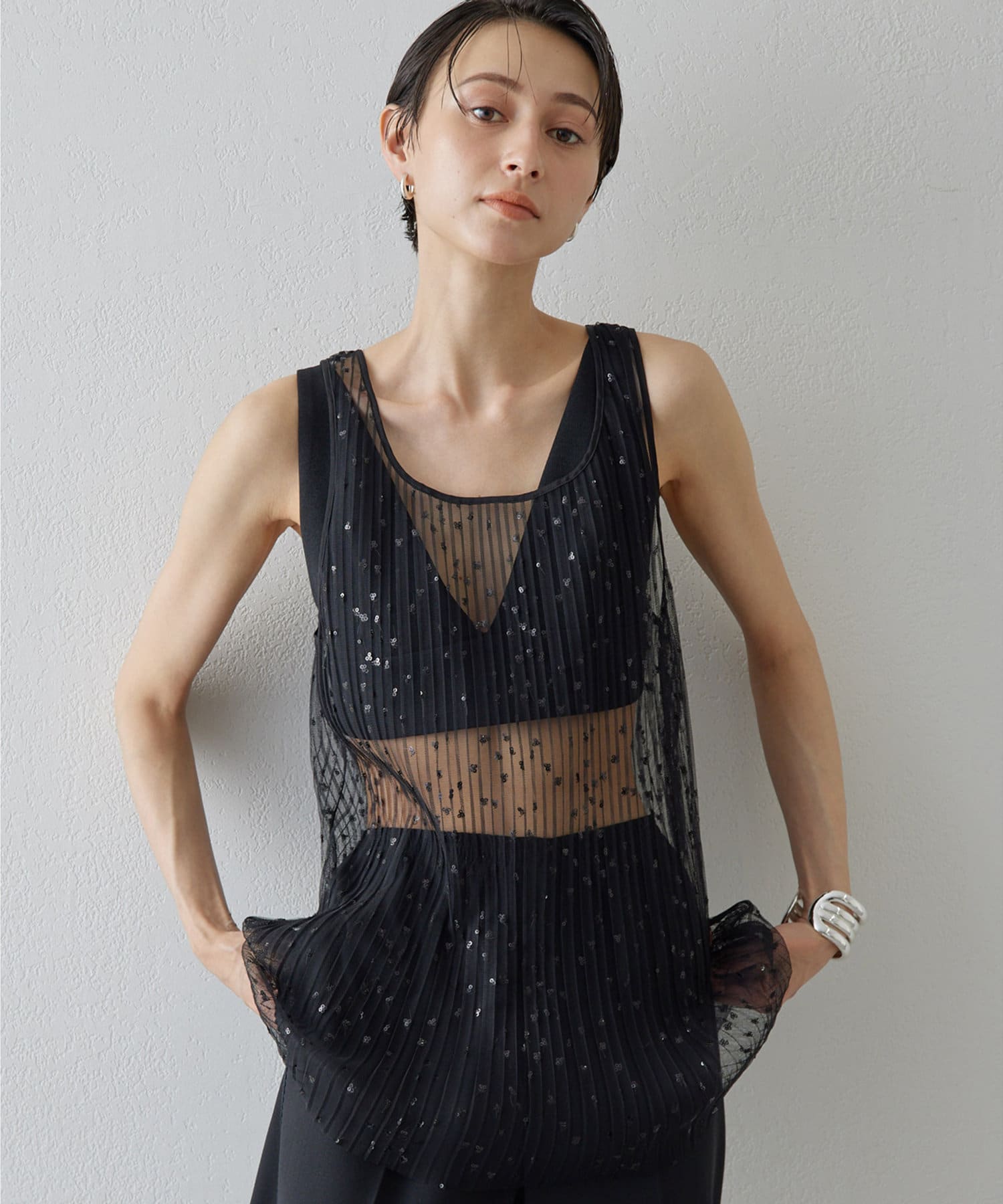 ■透け感のあるトップスのインナーとしても使え、着こなしの幅を広げてくれるアイテム。