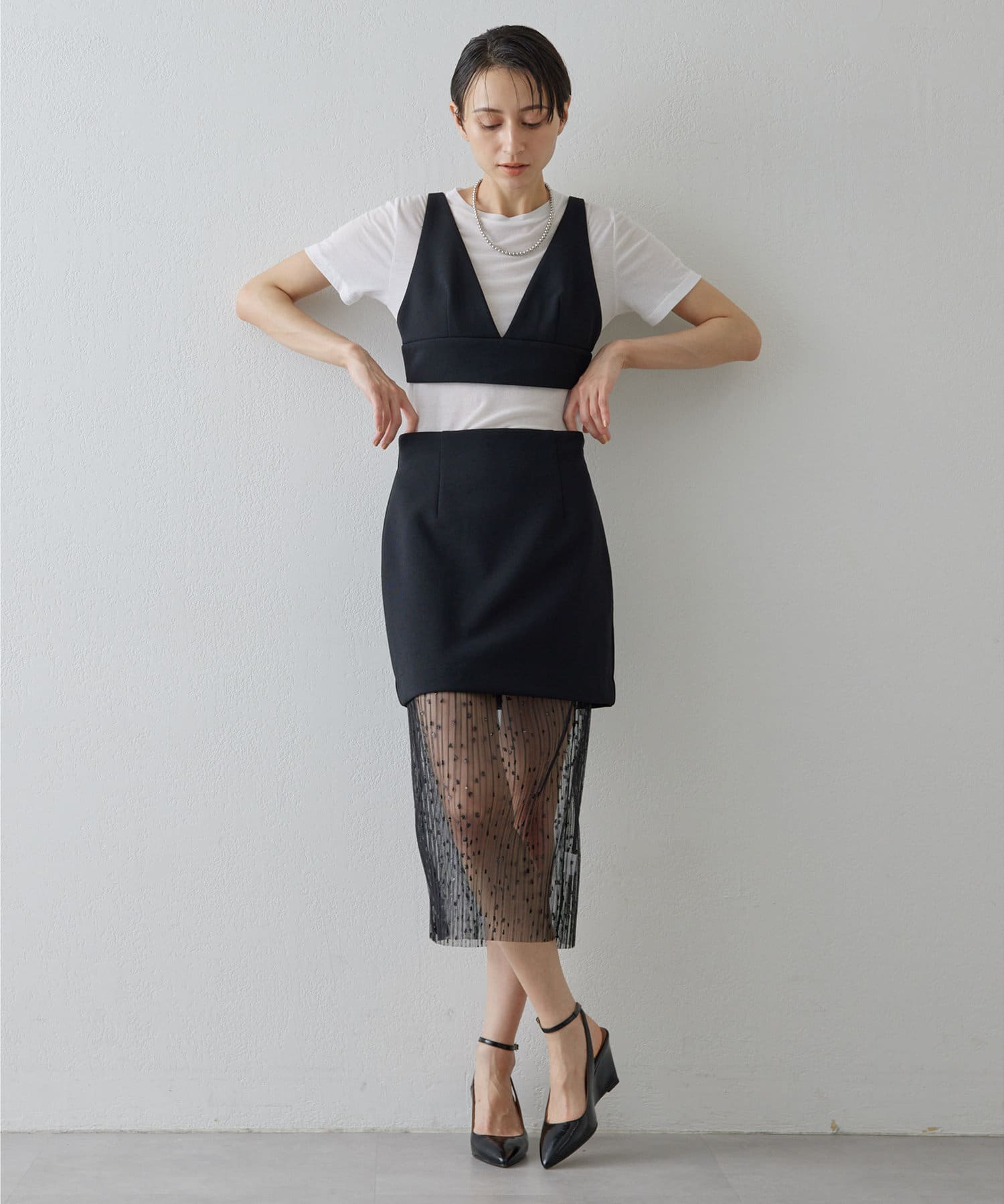 ■Tシャツやシャツ、ワンピースなどにレイヤードすればポイントを高い位置に作れスタイルアップにも◎。