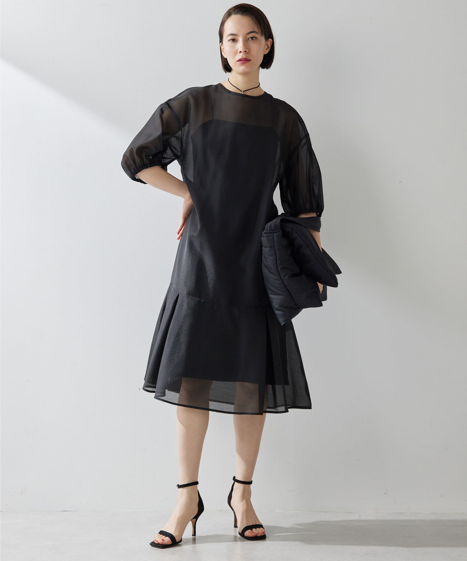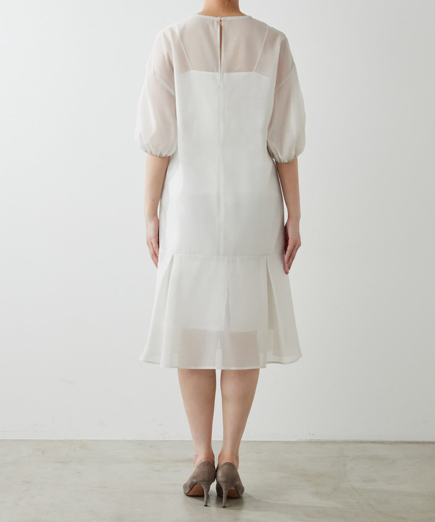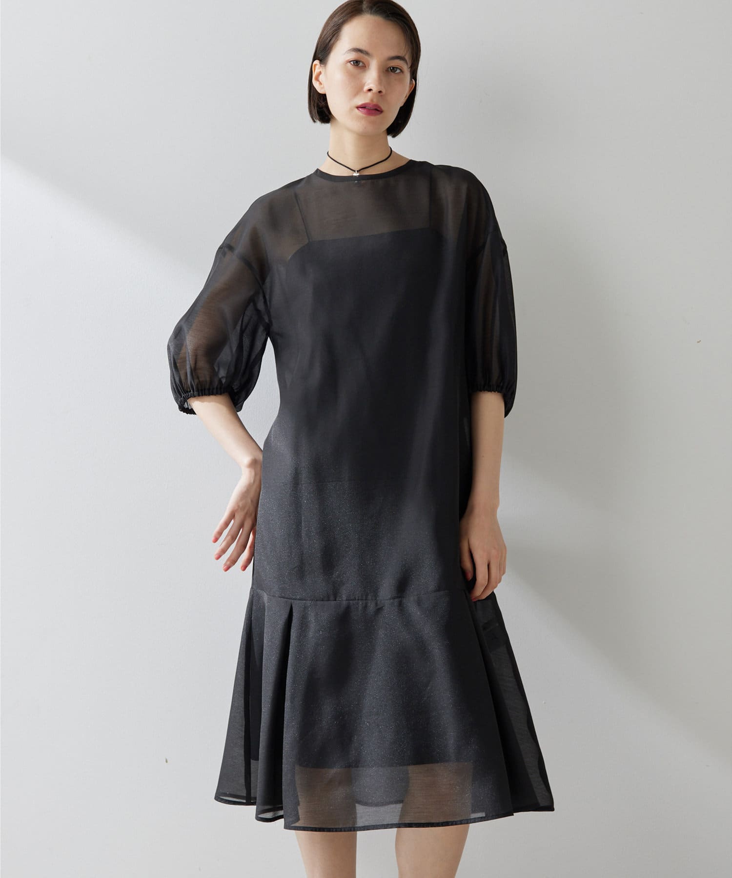 ■上品な透け感のオーガンジー生地で仕立てたシアーワンピース。