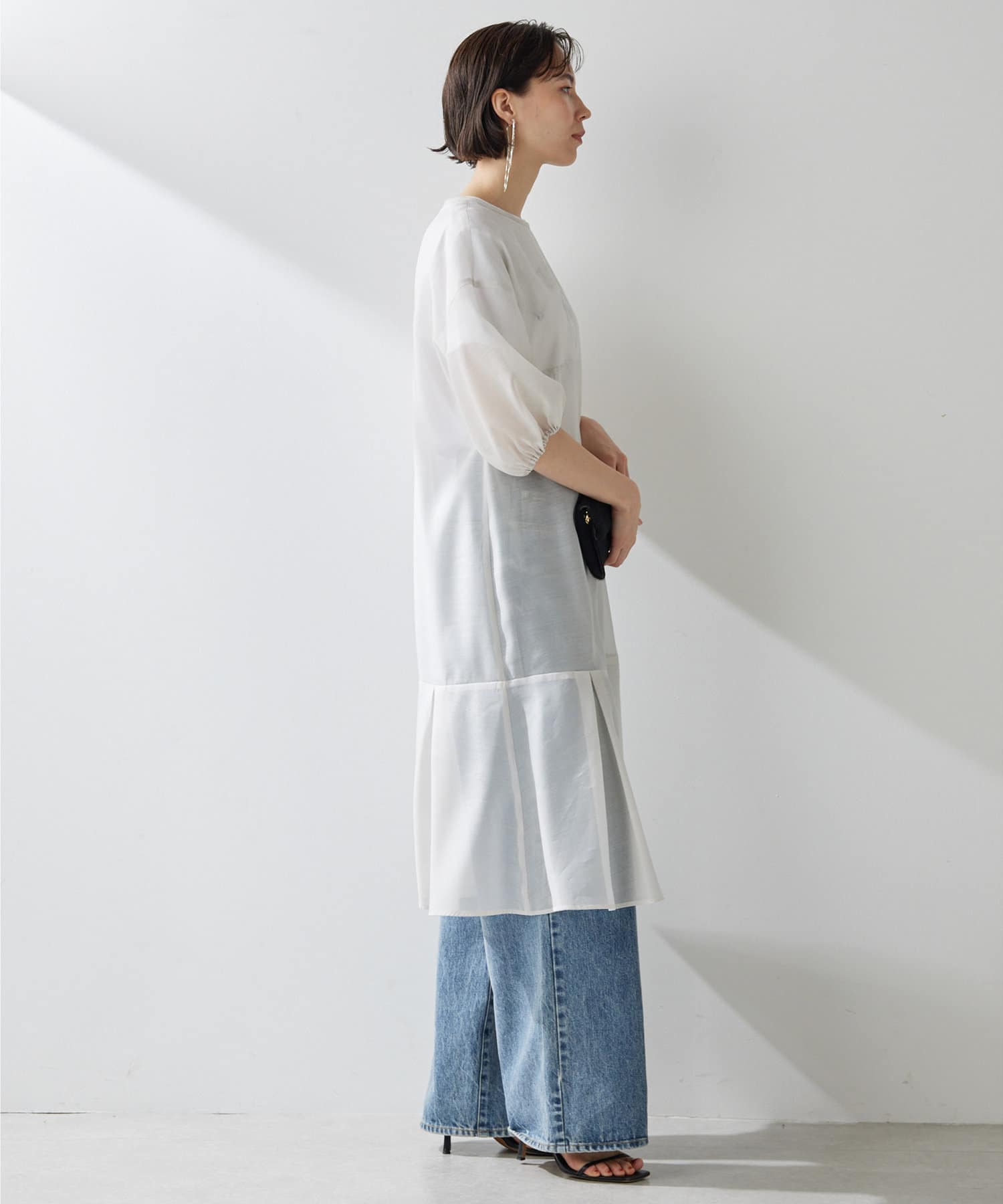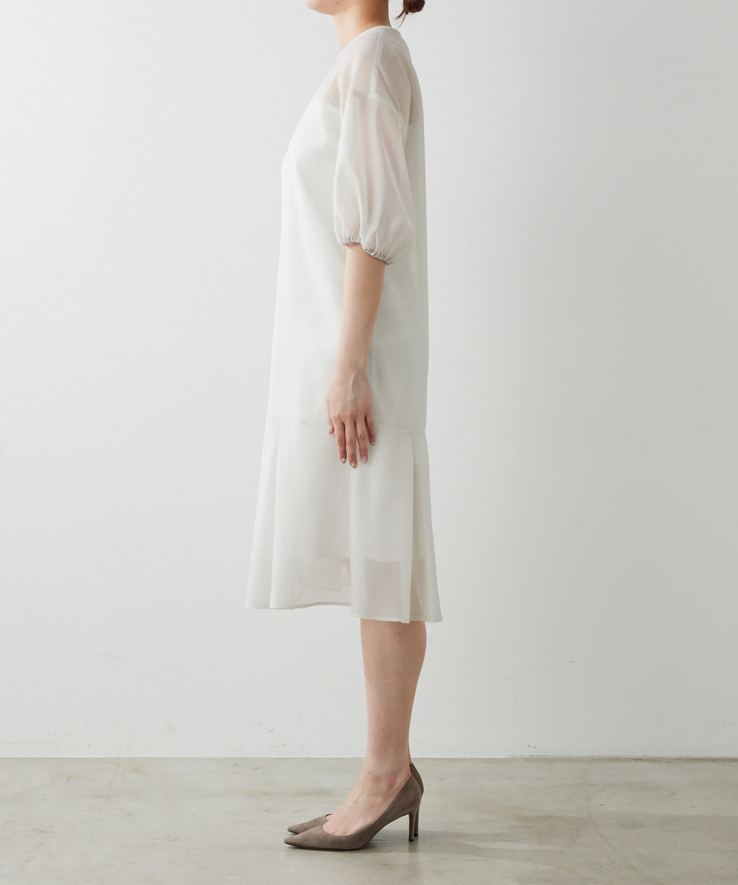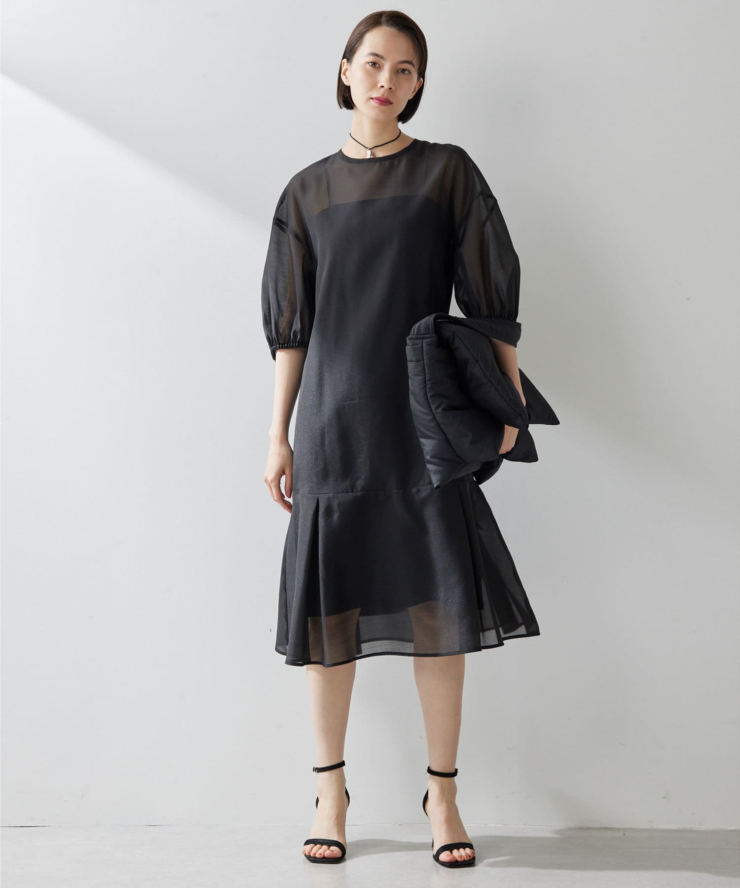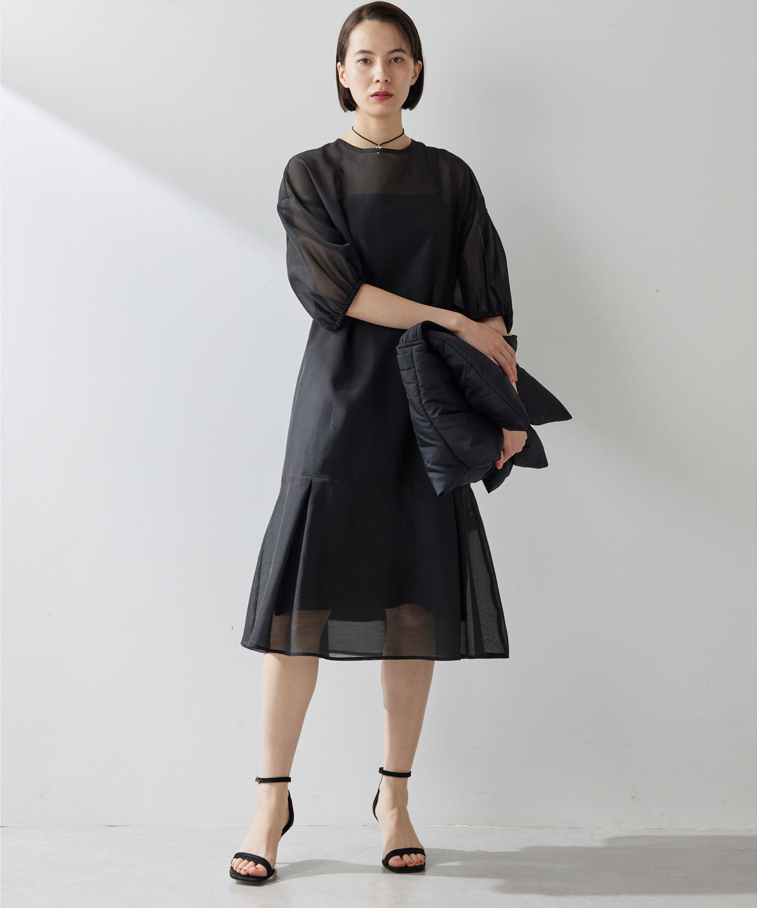 ■上品な透け感のオーガンジー生地で仕立てたシアーワンピース。